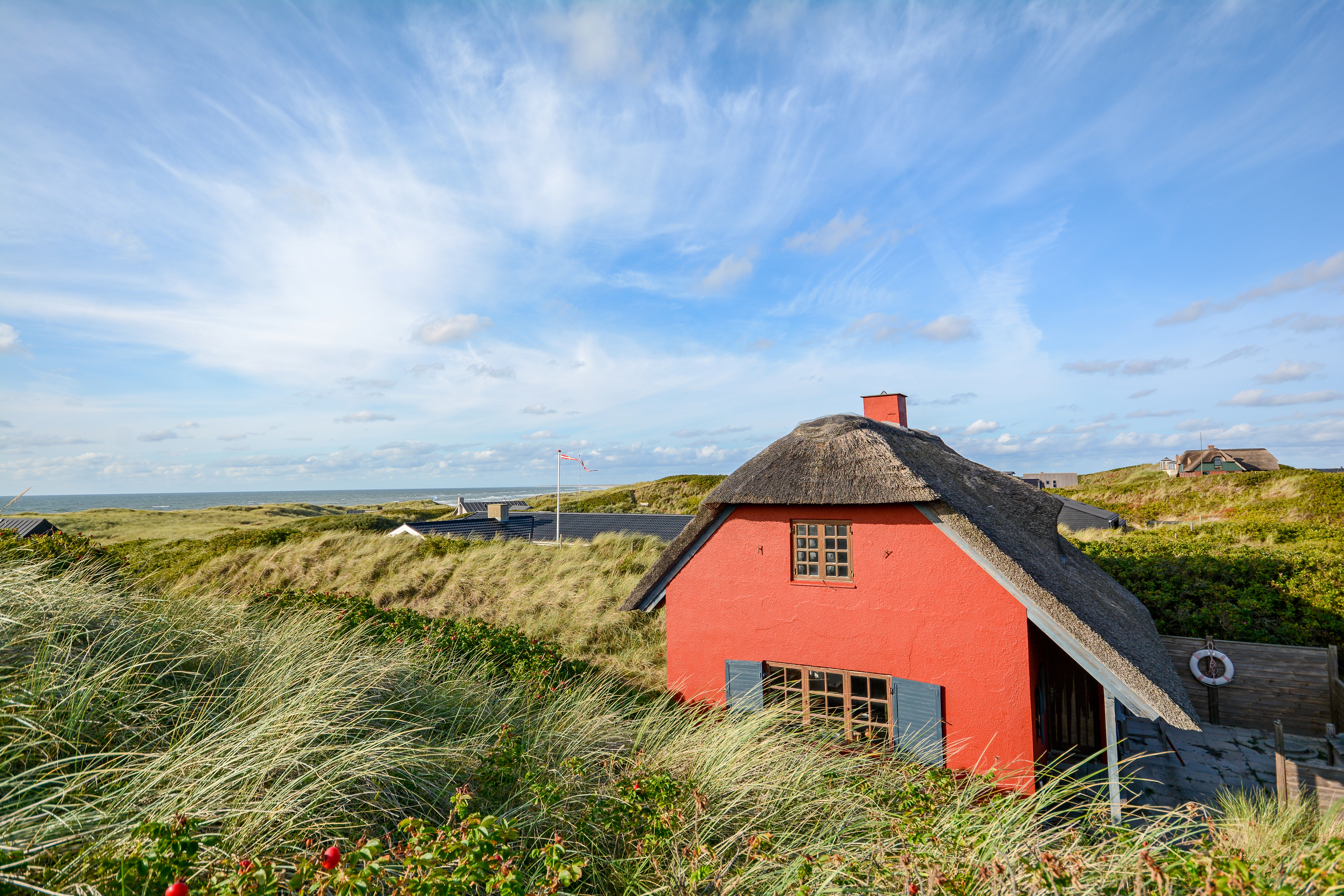 Ein Ferienhaus in Blavand direkt am Meer liegt unmittelbar an der Küste – oft nur wenige Schritte von den Dünen entfernt. Die Aussicht ist spektakulär: endlose Strände, das Rauschen der Wellen und traumhafte Sonnenuntergänge über der Nordsee.