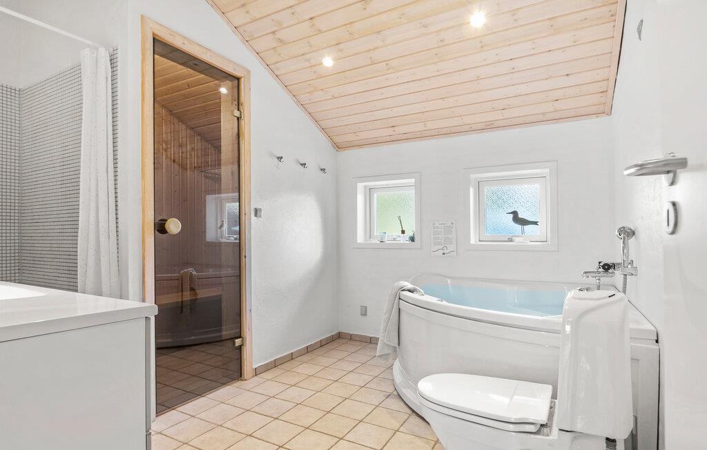 Idyllisches Ferienhaus am Ålbæk Strand mit Sauna, Whirlpool und skandinavischem Stil für entspannte Urlaubstage.