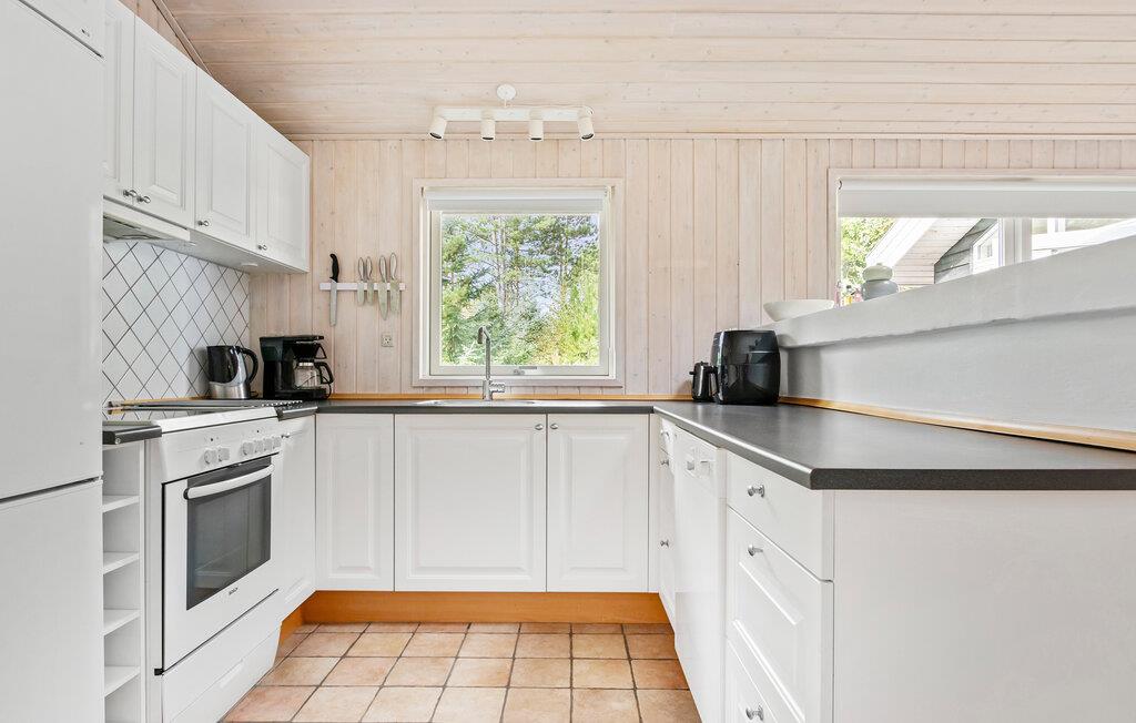 Lassen Sie sich von der einmaligen Atmosphäre am Ålbæk Strand verzaubern. Ihr ansehnlich gestaltetes Ferienhaus überzeugt durch seine helle, freundliche Atmosphäre und die harmonische Einrichtung im skandinavischen Stil. Beginnen Sie Ihren Tag mit einem entspannten Frühstück am Esstisch mit Blick auf den Garten und nehmen Sie dann eine Tasse Kaffee mit hinaus auf die großzügige Terrasse, die von grüner Natur umgeben ist. Genießen Sie dabei die frische Luft und die friedliche Umgebung. Entspannen Sie sich im gemütlichen Wohnzimmer, das mit bequemen Sofas, großen Fenstern und einem Kaminofen ausgestattet ist. Und nutzen Sie die gut ausgestattete Küche, um Ihre Lieblingsgerichte zu zaubern.
