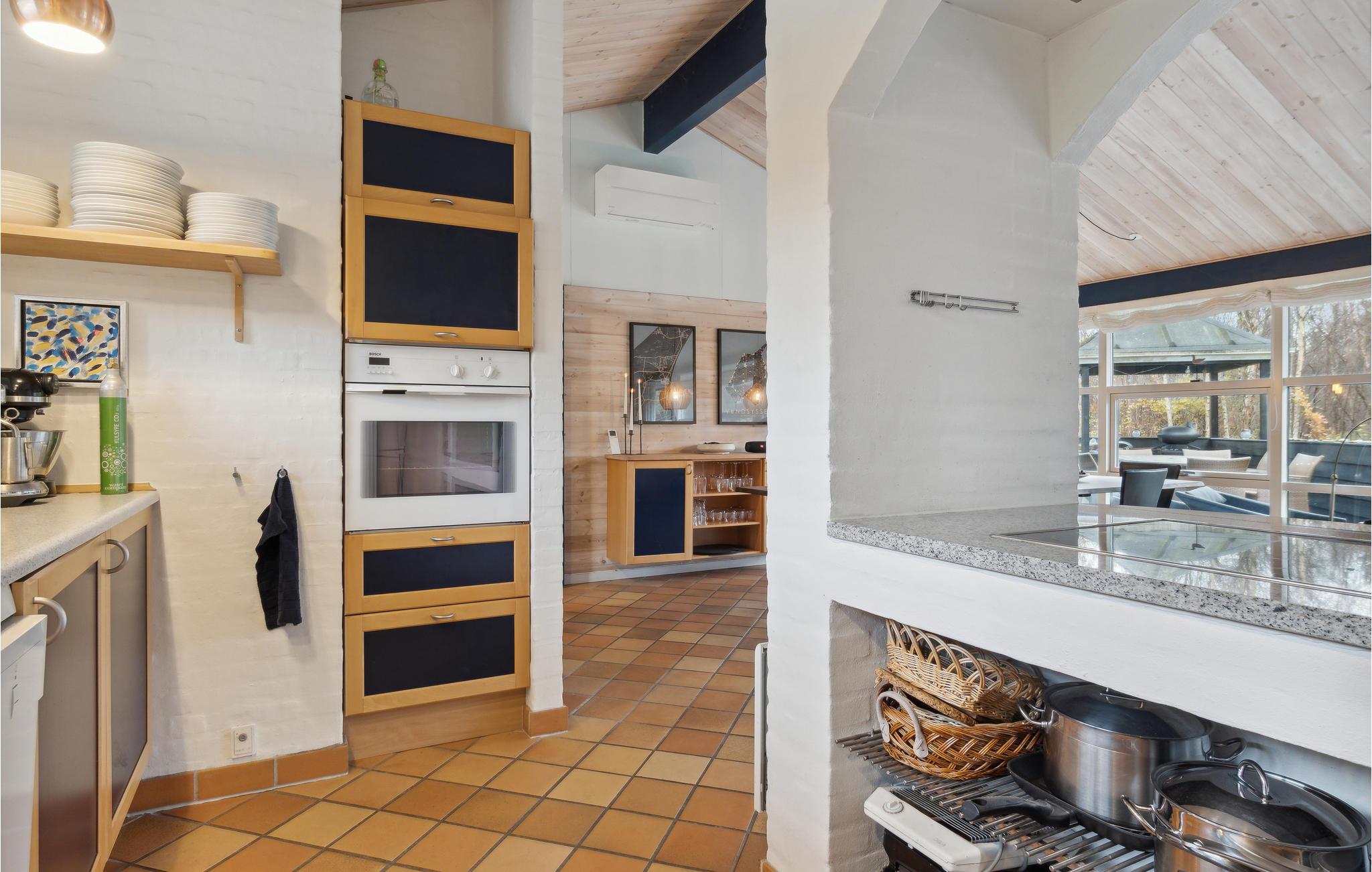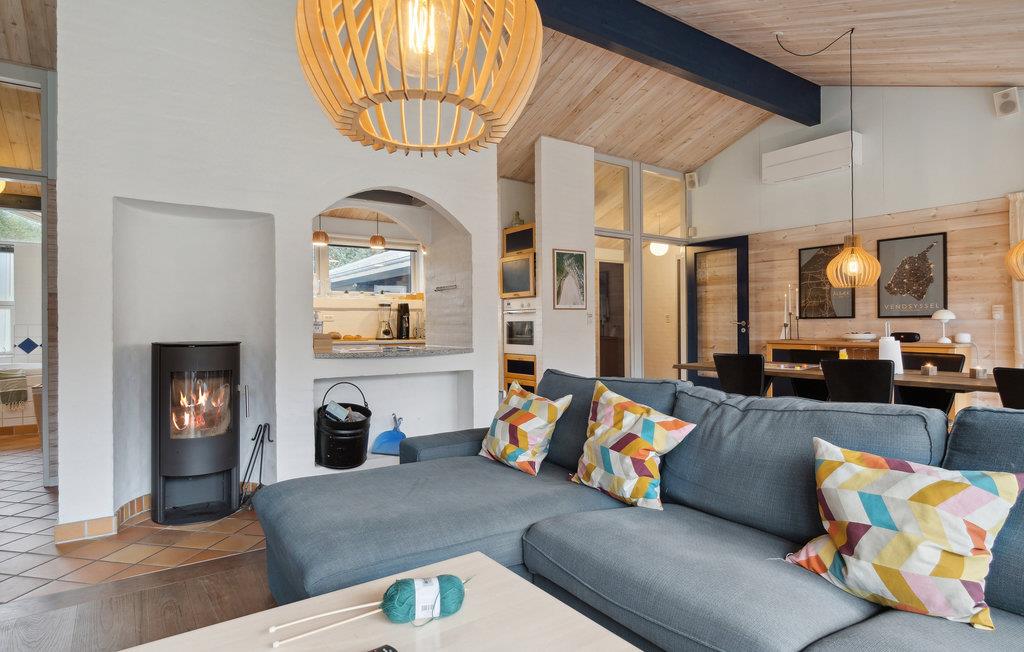 Willkommen in diesem schönen Haus, das Sie in kurzer Entfernung zum Meer in ruhiger Lage empfängt. Die geschmackvolle Einrichtung, helle Räume und die schöne Holzverkleidung machen es zum richtigen Ort, um mit der Familie zu entspannen. Ob beim gemeinsamen Kochen und Essen oder beim Plaudern auf dem gemütlichen Sofa, hier können Sie die gemeinsame Zeit in vollen Zügen genießen. Sorgen Sie mit einem Feuer im Kaminofen für eine besonders behagliche Stimmung und genießen Sie schöne Ausblicke durch die große Fensterfront.