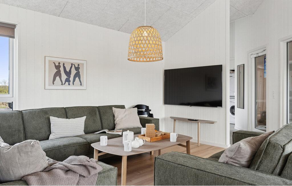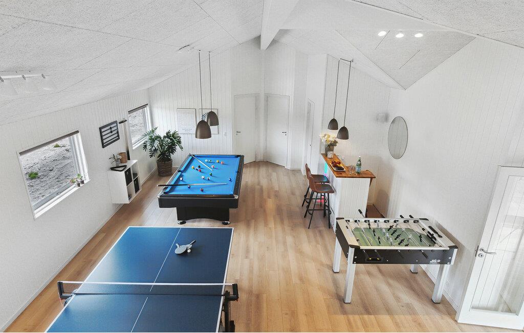 Willkommen in diesem komfortablen und geräumigen Haus, das Sie in kurzer Entfernung zum Strand empfängt und alles für eine Auszeit in ansprechendem Ambiente bietet. Der Pool verspricht Badespaß für Groß und Klein unabhängig vom Wetter. Freuen Sie sich auf gemütliche Abende, wenn Sie von Ihren Unternehmungen zurückkehren, entspannen Sie in der Sauna, kochen Sie gemeinsam, machen Sie es sich nach dem Abendessen am Kaminofen gemütlich und sehen Sie mit dem hauseigenen Projektor ein Fußballspiel auf der großen Leinwand.