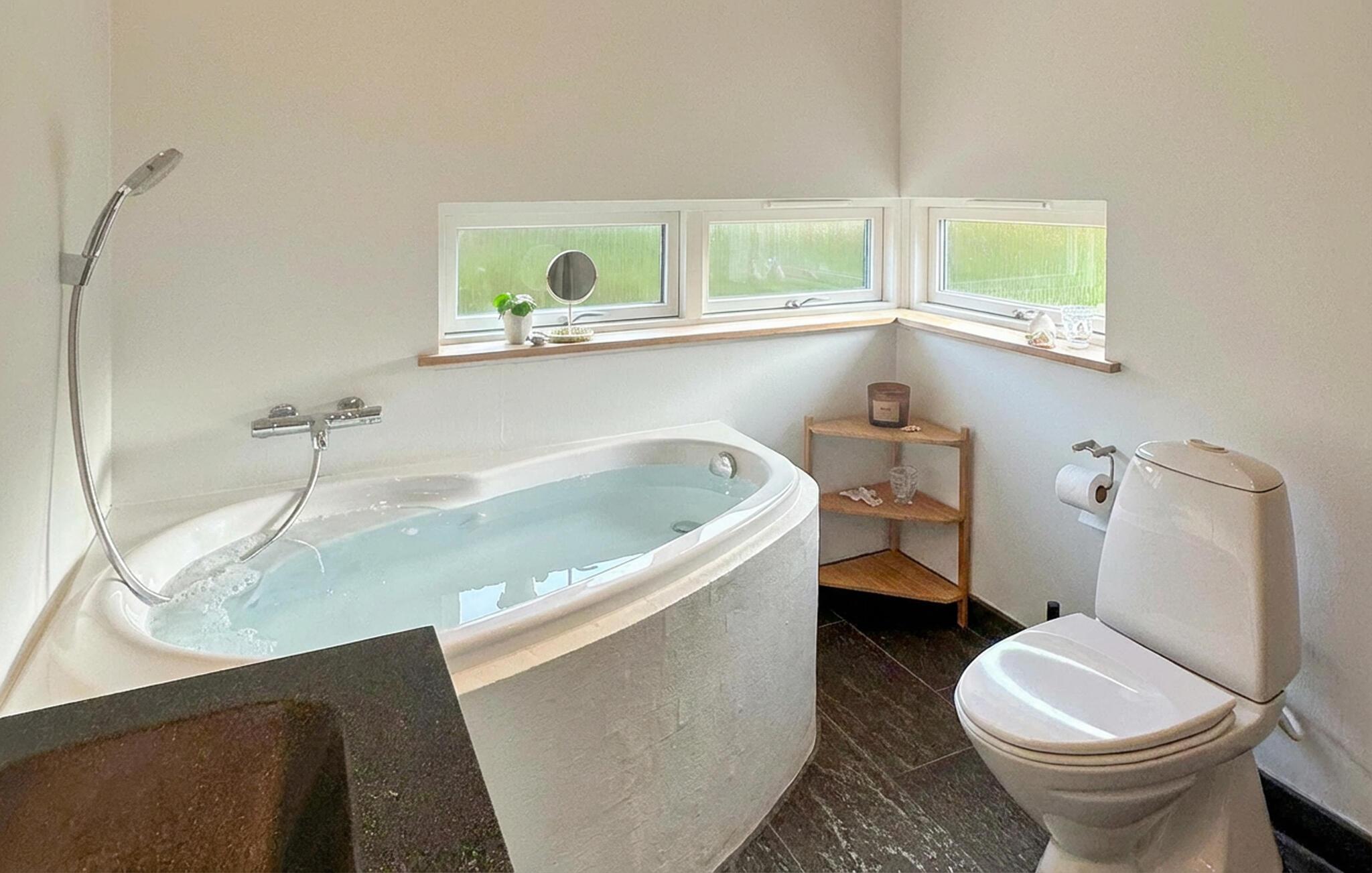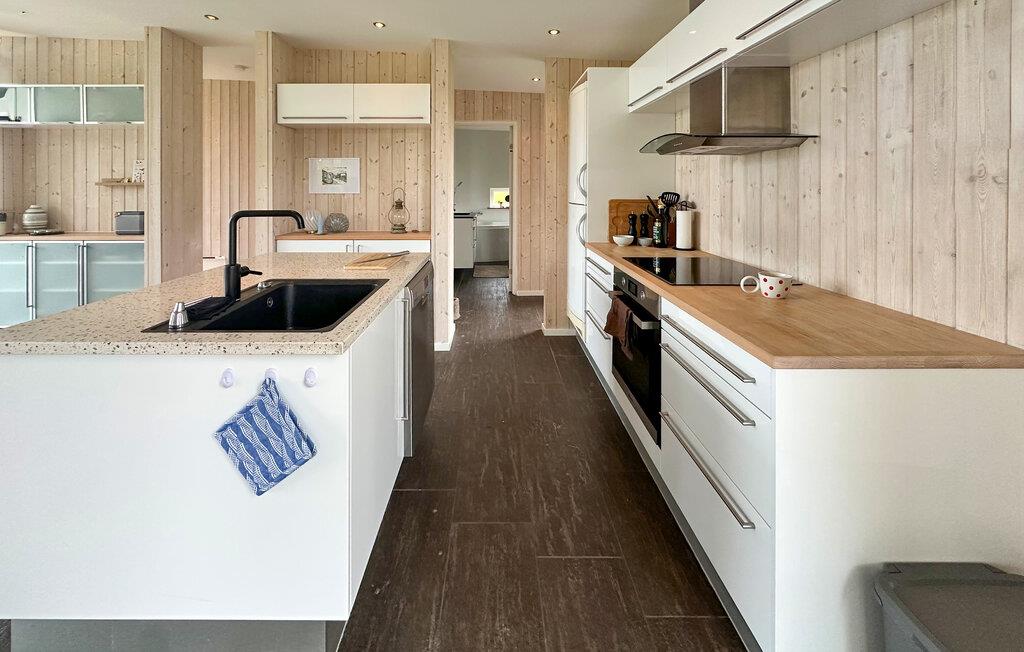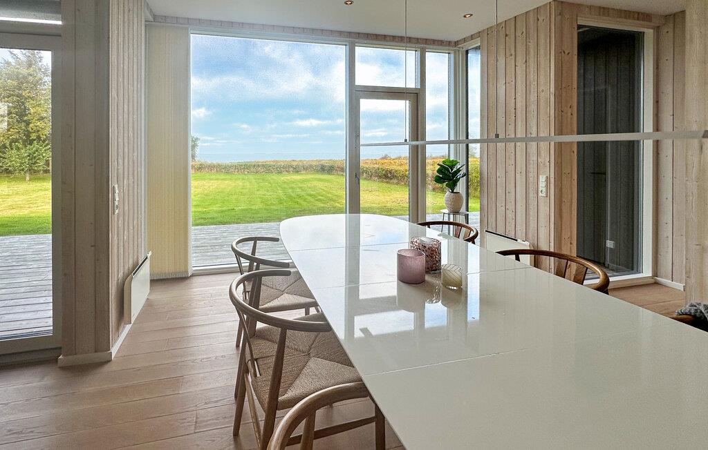In diesem schönen und stilvollen Ferienhaus in der Nähe von Spöttrup können Sie sich auf einen herrlichen Blick auf den Fjord freuen. Genießen Sie die schöne Einrichtung der Schlafzimmer, in denen Sie die nötige Ruhe für erholsame Nächte finden werden. Die hellen Räume, vor allem das offene Wohnzimmer, zeichnen sich durch große Fenster aus, in denen Sie sich rundum wohlfühlen können, und der ambitionierte Hobbykoch kann sich in der voll ausgestatteten Küche austoben. Während die einen in der Badewanne entspannen, können andere auf dem Sofa ein gutes Buch lesen und sich abends vor dem Kamin aufwärmen.