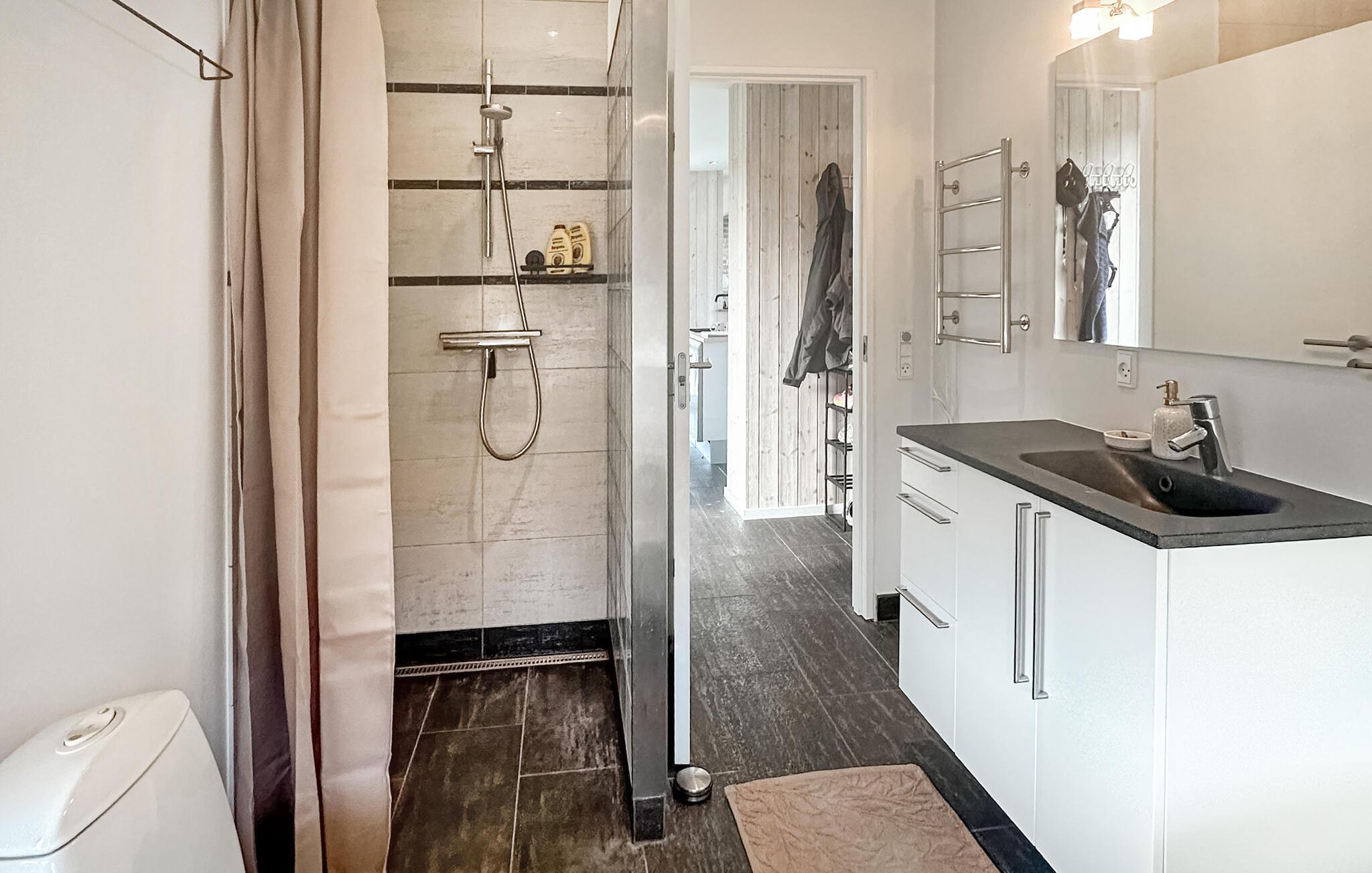 Vom Haus aus haben Sie direkten Zugang zum Strand. In der Nähe gibt es Stege und Molen, so dass Sie leicht ins tiefere Wasser gehen oder Ihre Angelrute in den Fjord auswerfen können. Sie können sich am Strand entspannen, während die Kinder im Sand spielen. Es gibt ein breites Angebot an Wassersportaktivitäten wie SUP-Boarding, Wind- und Kitesurfen. Die Gegend ist auch ideal für Wanderungen und Radtouren, bei denen Sie die Küste und die Fjordlandschaft erleben können.