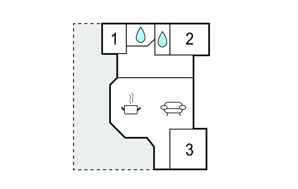 Badezimmer (nr. 1) - WC. Warmes und kaltes Wasser. Dusche