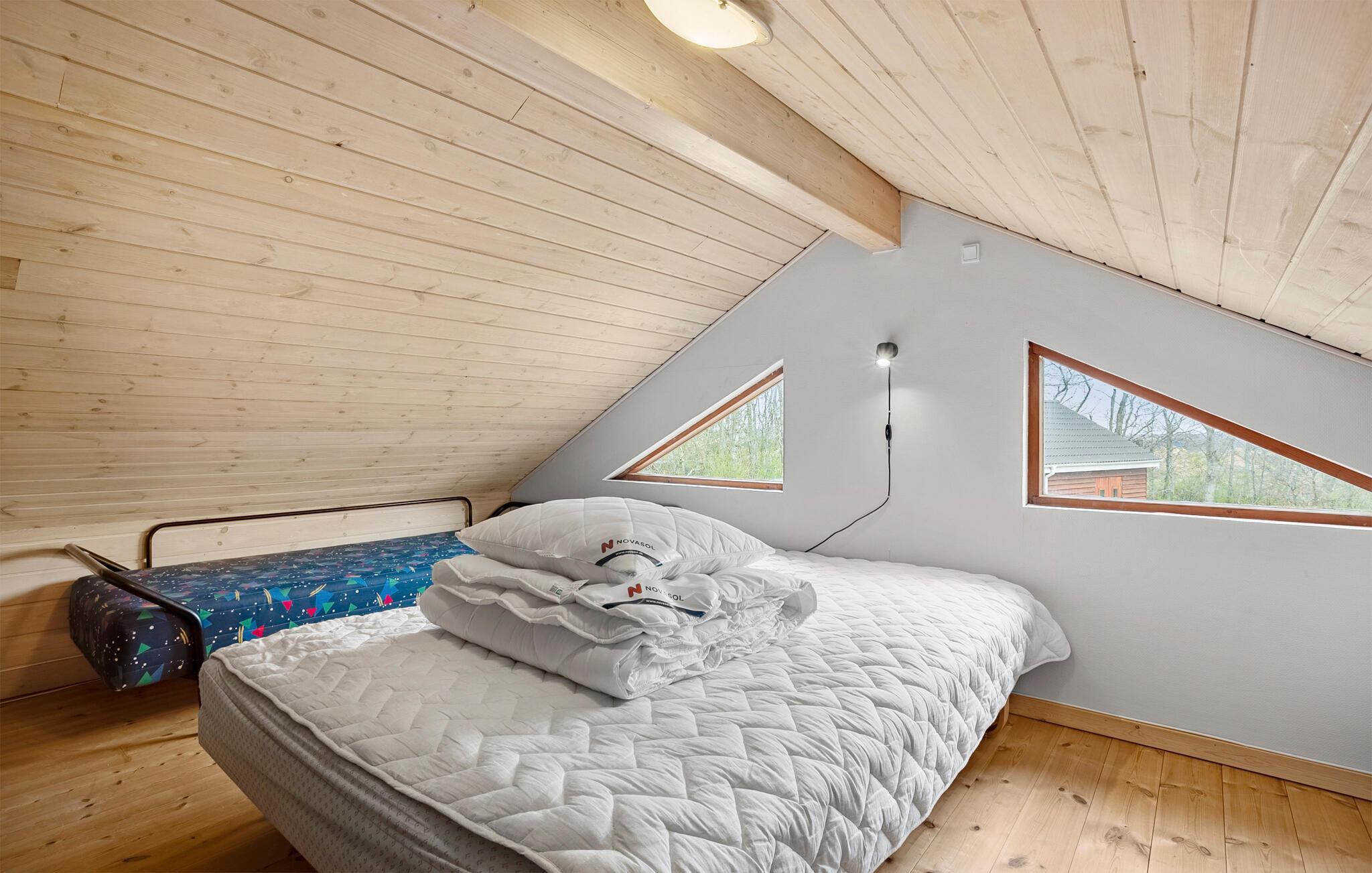 Offener Schlafboden - 2 Schlafmöglichkeiten. (Einzelbett(en)). 2 Schlafmöglichkeiten. (Doppelbett(en)).