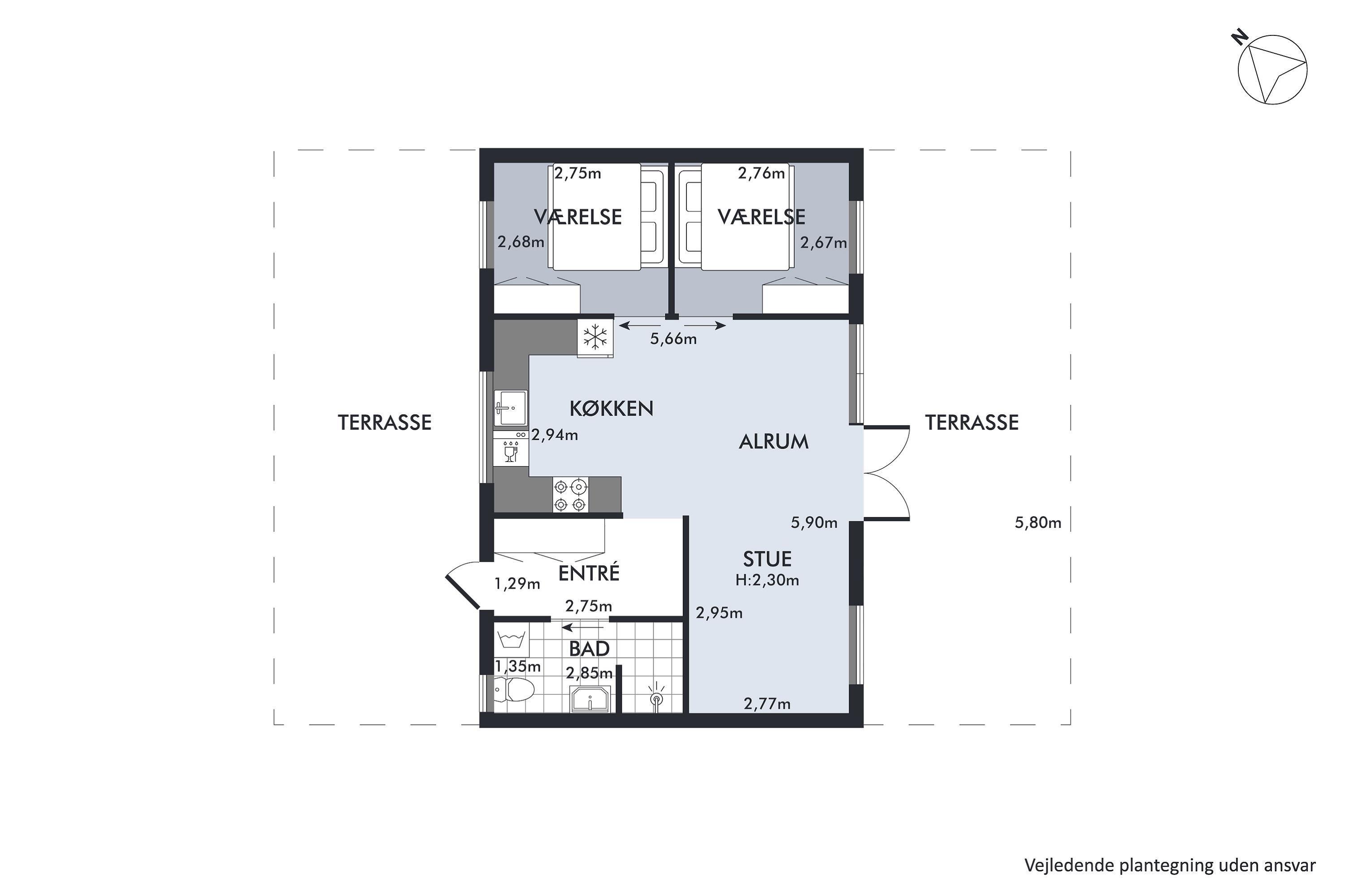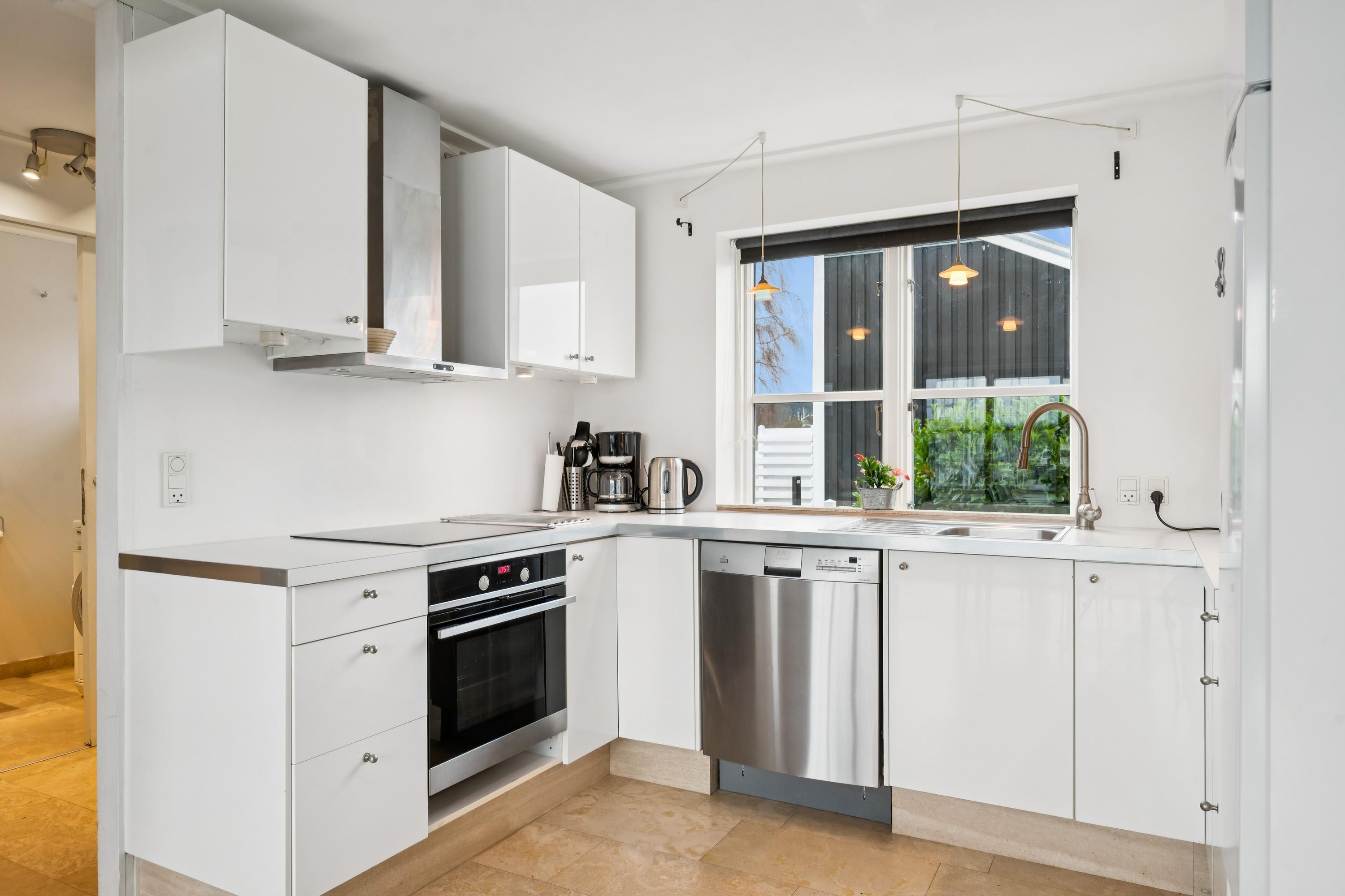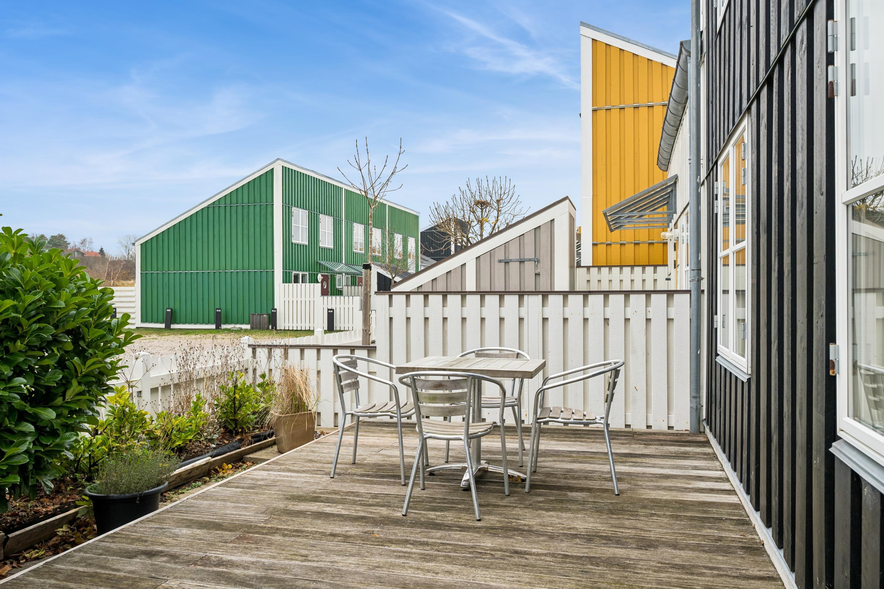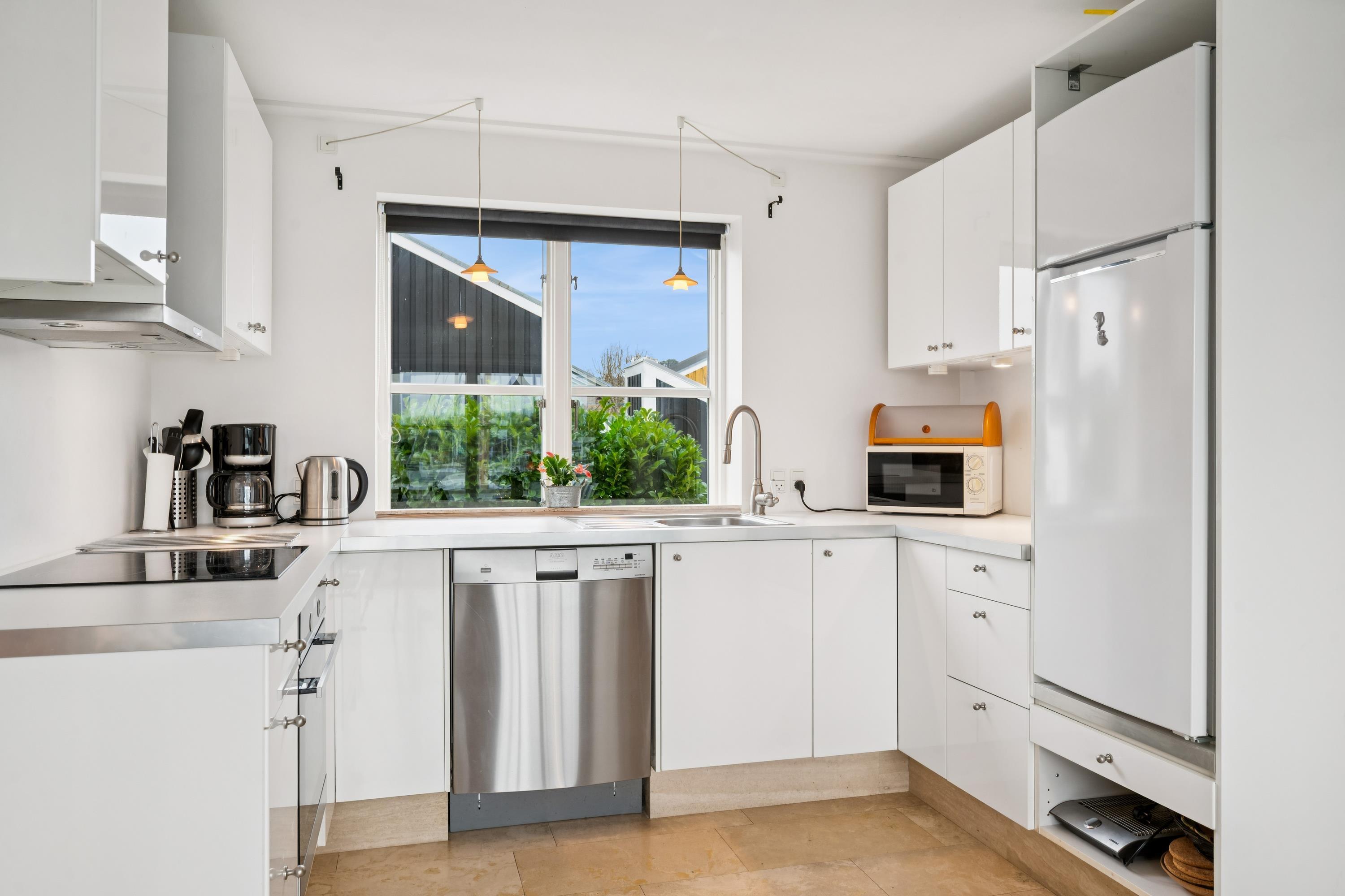 Willkommen in dieser gemütlichen Erdgeschoss-Ferienwohnung in Øer Maritime Feriendorf. Die Wohnung verfügt über ein helles Wohnzimmer mit Wärmepumpe und Zugang zu einer großen Terrasse mit Gartenmöbeln. Direkt angrenzend befindet sich die funktionale Küche mit u. a. Geschirrspüler. Zwei gut ausgestattete Schlafzimmer mit Doppelbetten sowie ein modernes Badezimmer mit Dusche und Waschmaschine runden das Ferienhaus ab. Am Eingang der Wohnung befindet sich außerdem eine weitere Terrasse mit Gartenmöbeln.