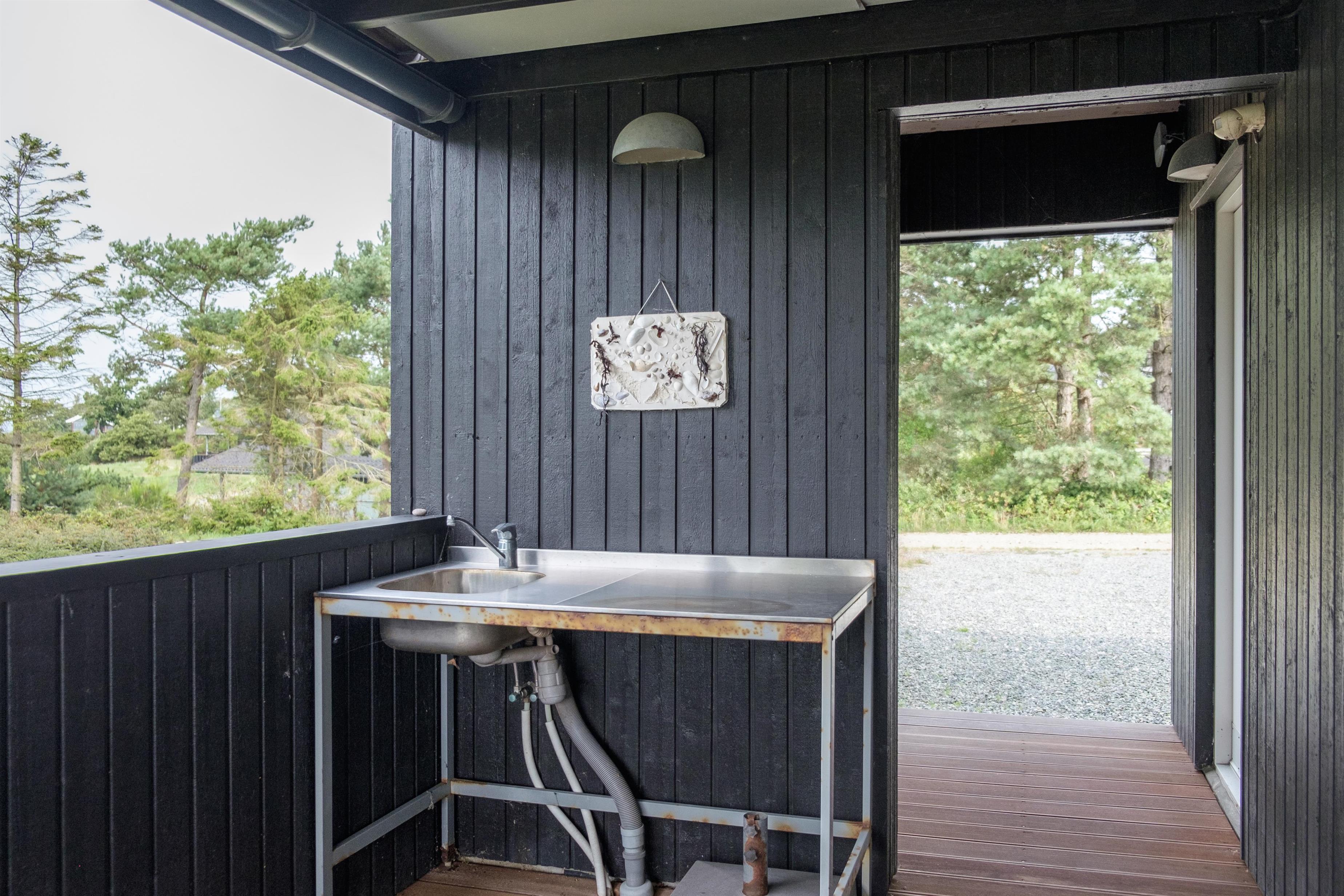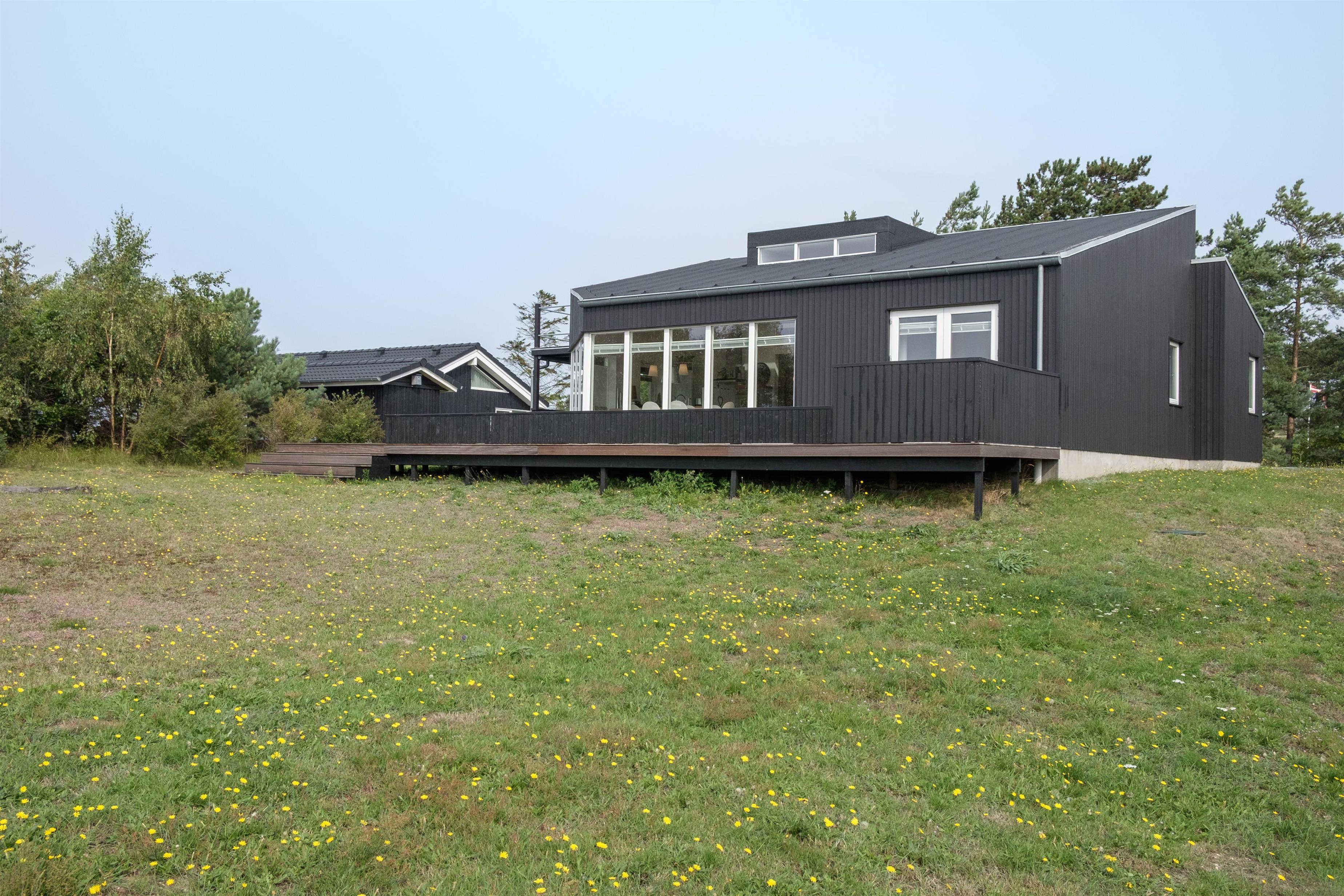 Schönes und helles Ferienhaus auf einem hoch gelegenen Naturgrundstück mit Blick auf die hügelige Landschaft südlich von Ebeltoft und die Aarhus Bucht. Große, teilweise überdachte Holzterrasse mit Meeresblick, die mit Gartenmöbeln, Liegestühlen, Sonnenschirm, Grill sowie kleiner Außenküche/Fischausnehmplatz ausgestattet ist.
