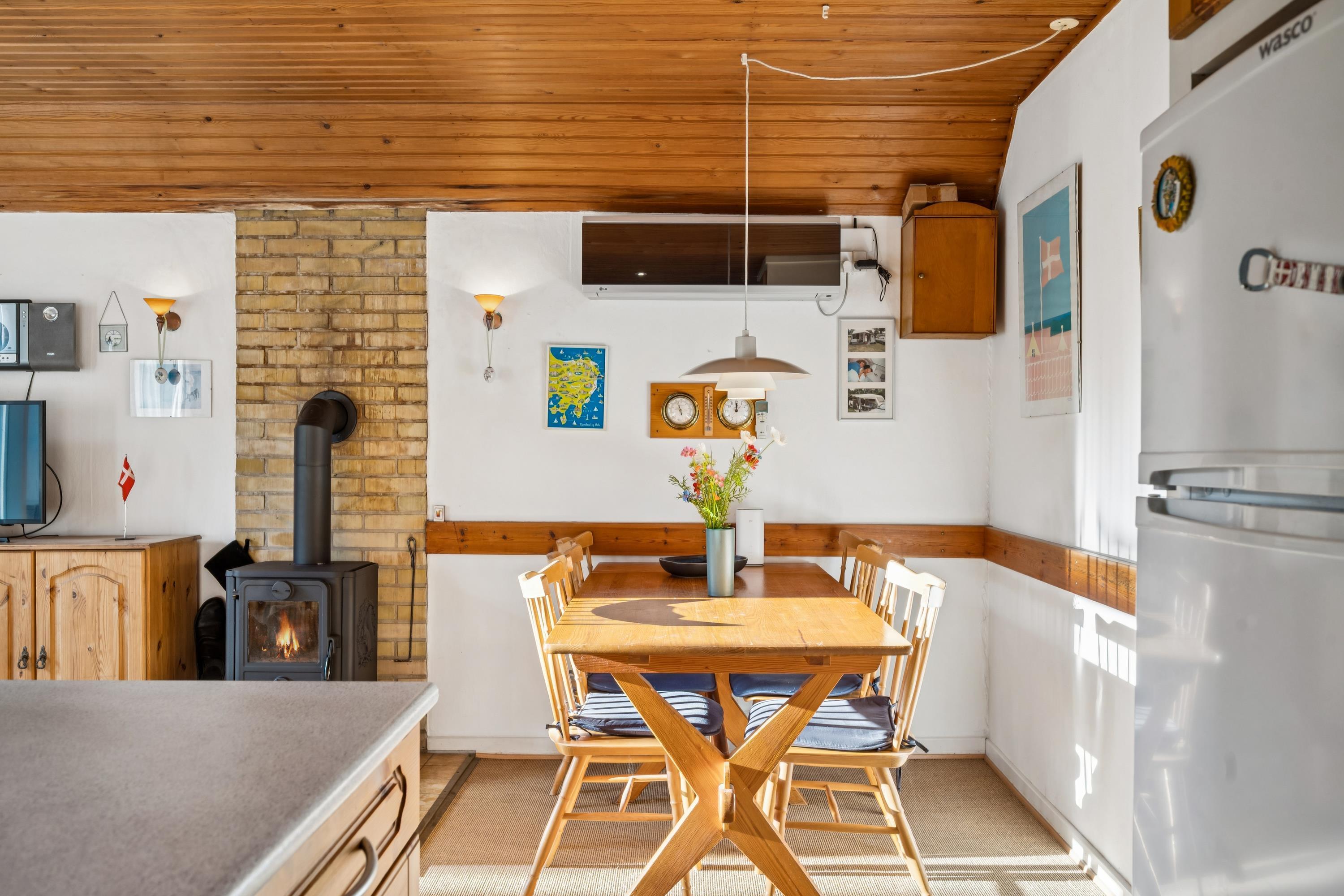 Im Ferienhaus gibt es ein gemütliches Wohnzimmer mit Kaminofen und Wärmepumpe, die das ganze Ferienhaus schnell erwärmen kann. Angrenzend befindet sich die kleine Küche mit originaler Küchentapete, in der das Spülen noch von Hand erfolgt. Das Schlafzimmer verfügt über ein komfortables Doppelbett, und das neuere Badezimmer ist mit Dusche, Fußbodenheizung, Waschmaschine sowie Babybadewanne und Wickelkissen ausgestattet.