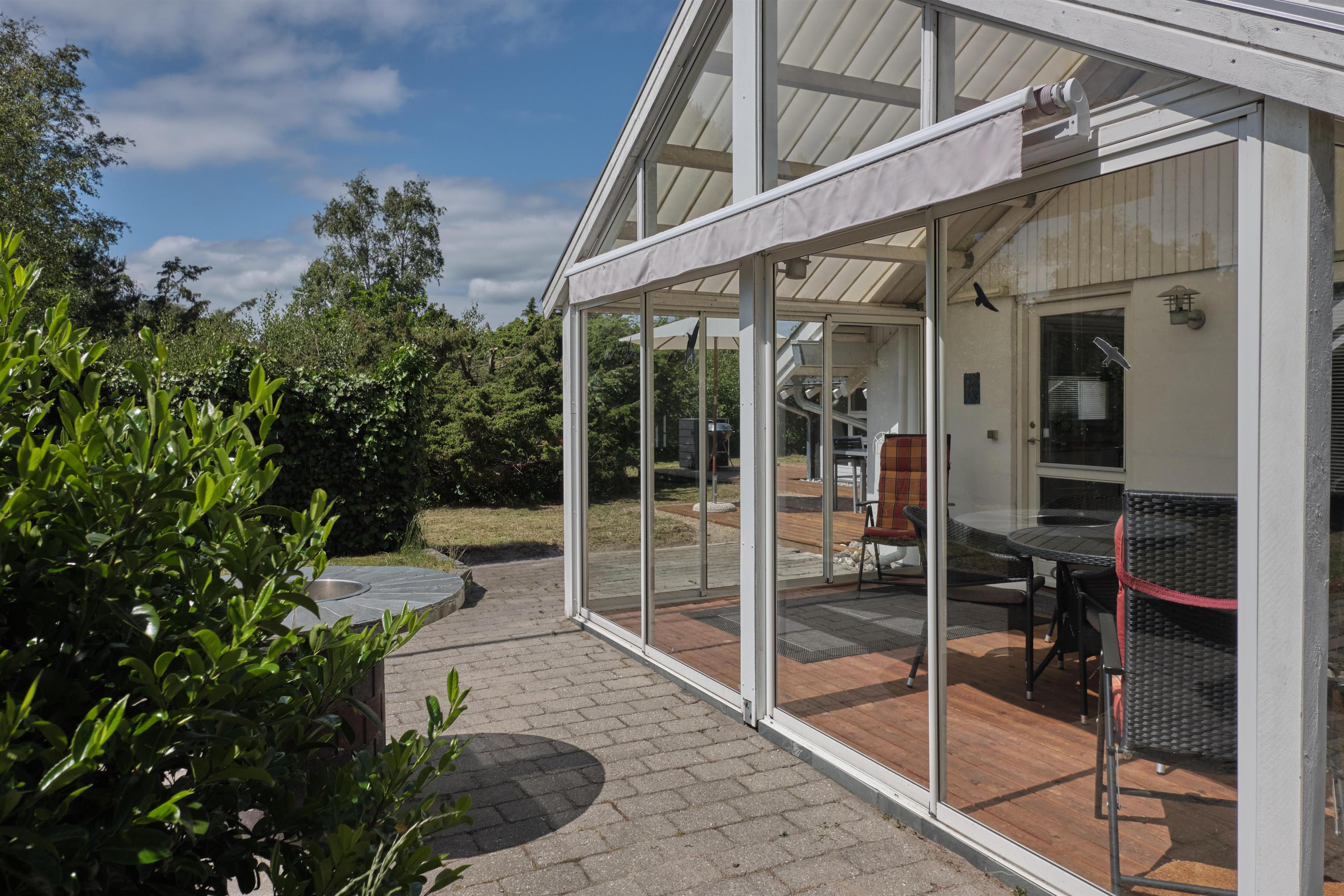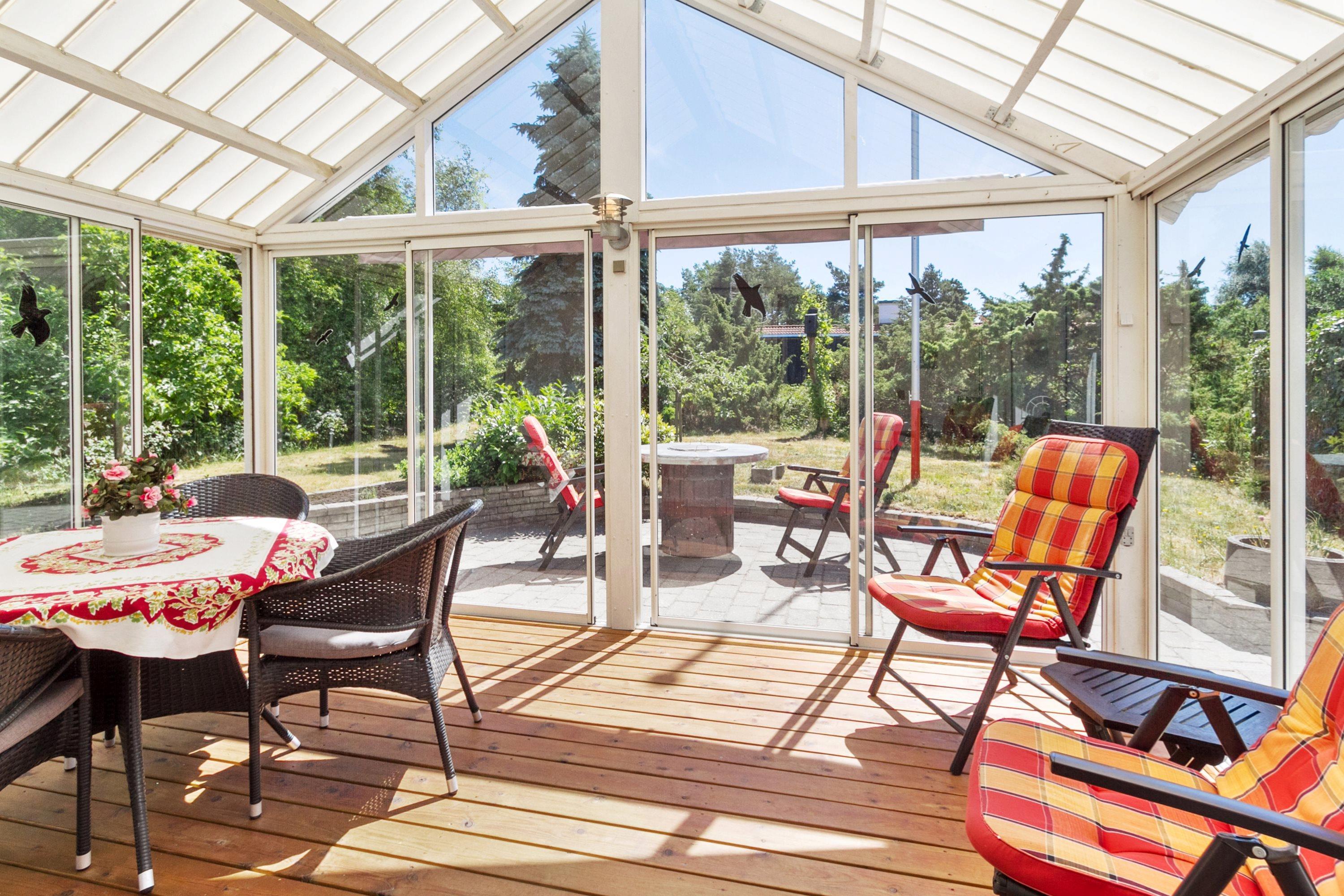 Komfortables Ferienhaus nahe Øer Strand mit Wintergarten, Kaminofen und eingezäuntem Garten für entspannte Urlaubstage.