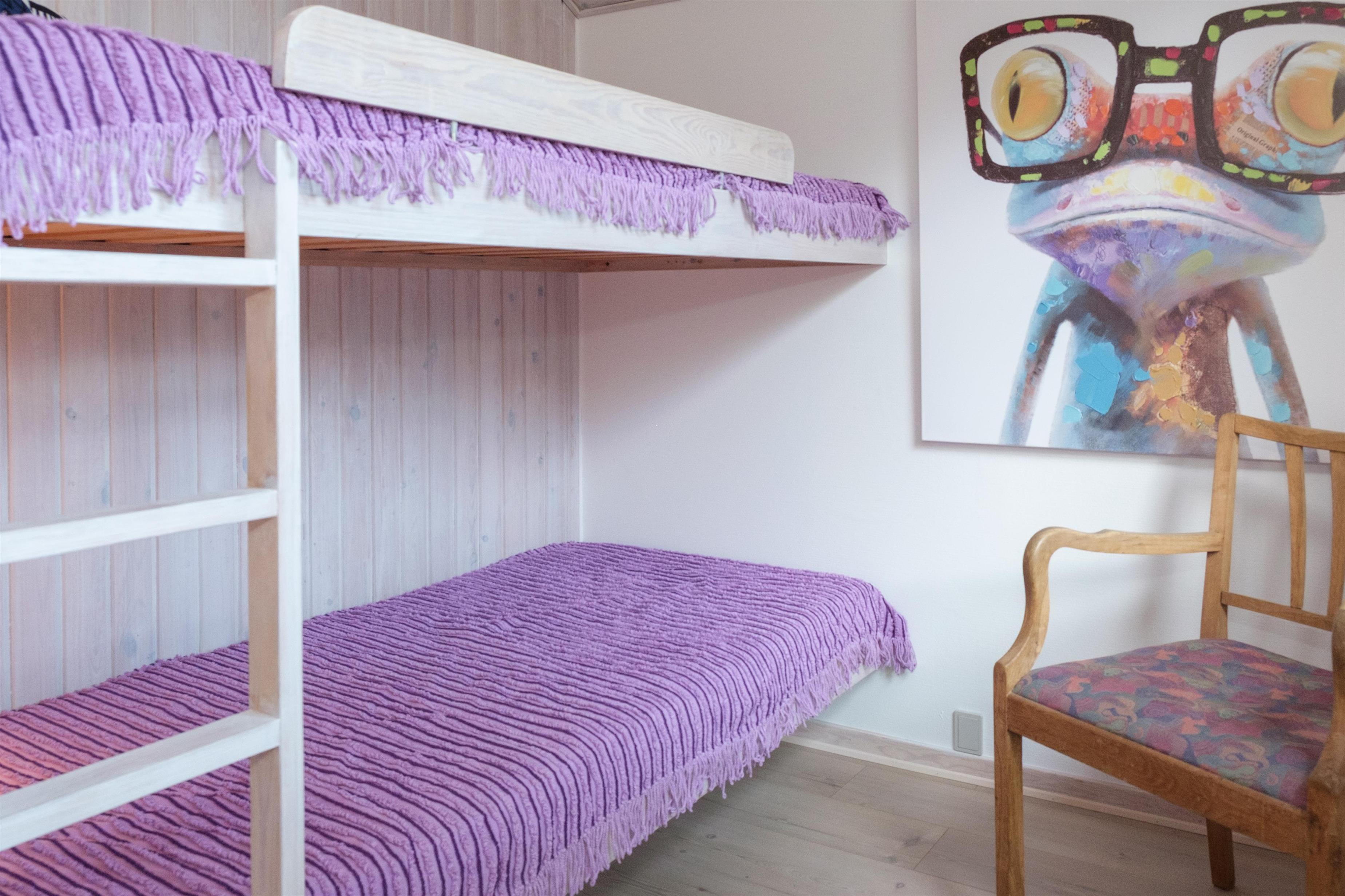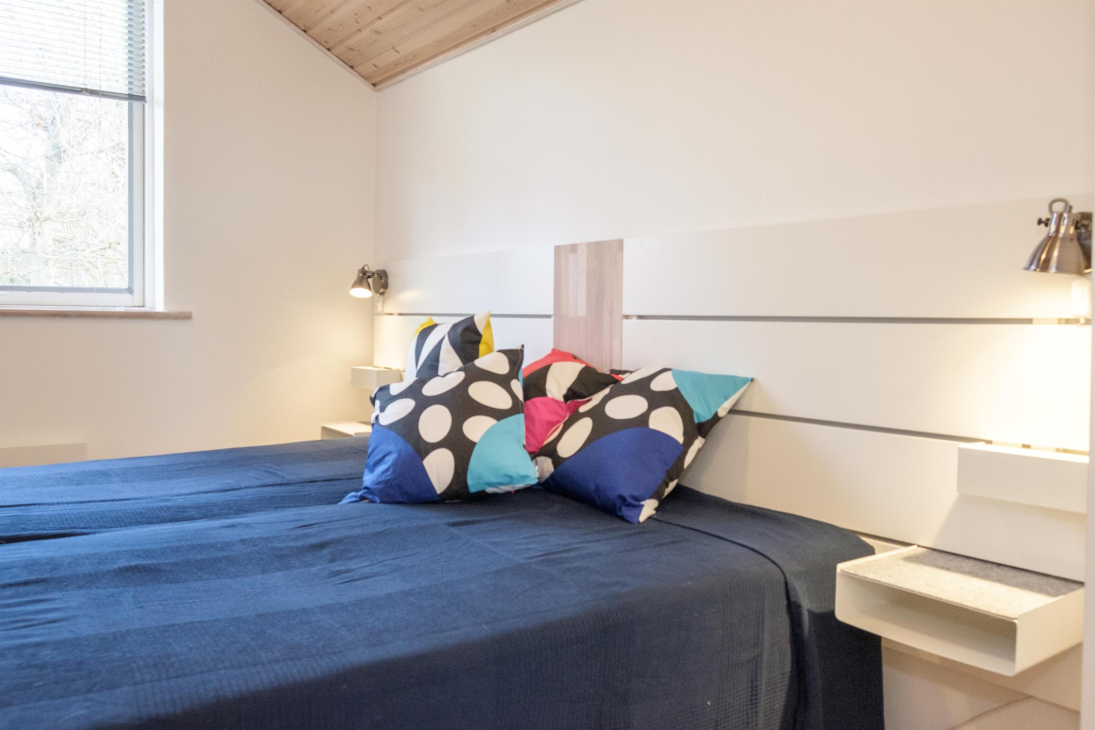 Das Haus präsentiert sich hell und einladend mit offenem Dachfirst, Oberlichtern und großen Glaspartien, die für jede Menge Lichteinfall sorgen. Herzstück des Hauses ist das große Wohn-/Esszimmer mit zentral platziertem Kaminofen mit gemauertem Schornstein. Es bietet reichlich Platz für einen Essbereich für 6 Personen, eine Fernsehecke mit dänischen (inkl. TV2) und deutschen Programmen sowie eine gemütliche Leseecke. In offener Verbindung dazu liegt die gut ausgestattete, moderne Küche mit Kühl-/Gefrierkombination, Glaskeramik-Kochfeld, Backofen, Geschirrspüler und Mikrowelle. Das Haus umfasst ein großes Schlafzimmer mit Doppelbett und Schrankplatz, ein Zimmer mit zwei Einzelbetten und ein kleineres Zimmer mit Etagenbett. Schönes und helles Badezimmer mit Dusche und Fußbodenheizung. Große Waschküche mit Waschbecken, Waschmaschine und Trockner. Auf dem großen, eingezäunten Grundstück kann der Hund frei umherlaufen. Internetzugang. BITTE BEACHTEN: Die Garage steht den Mietern nicht zur Verfügung!