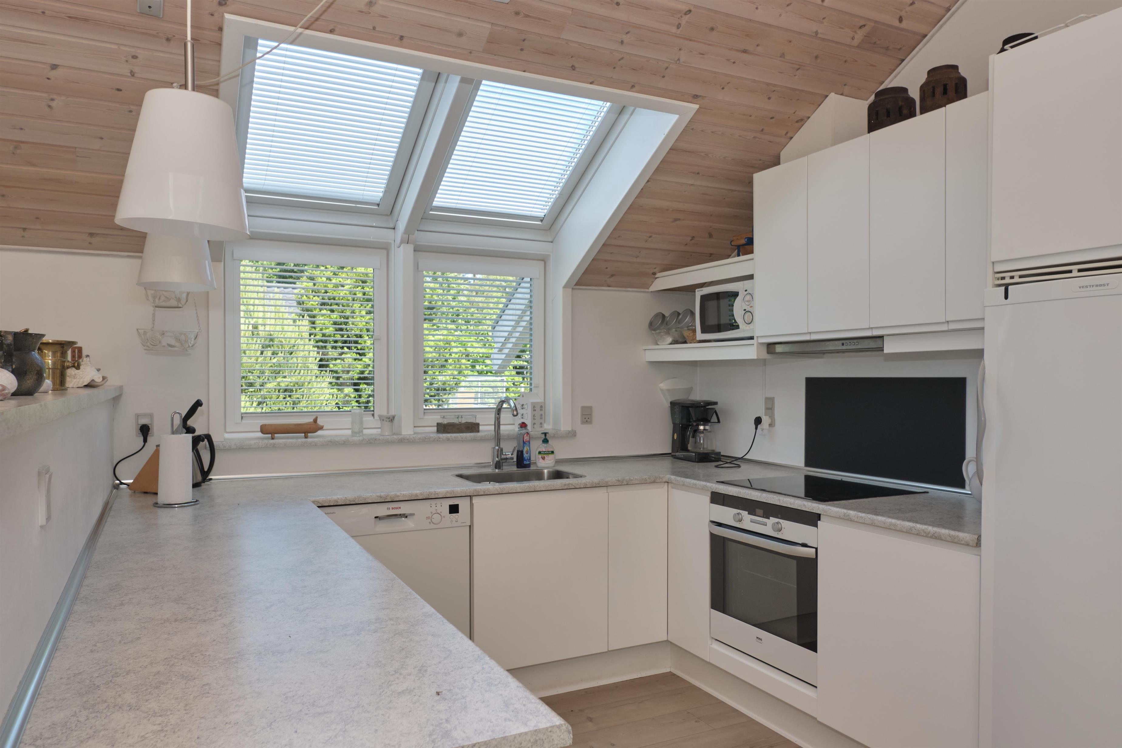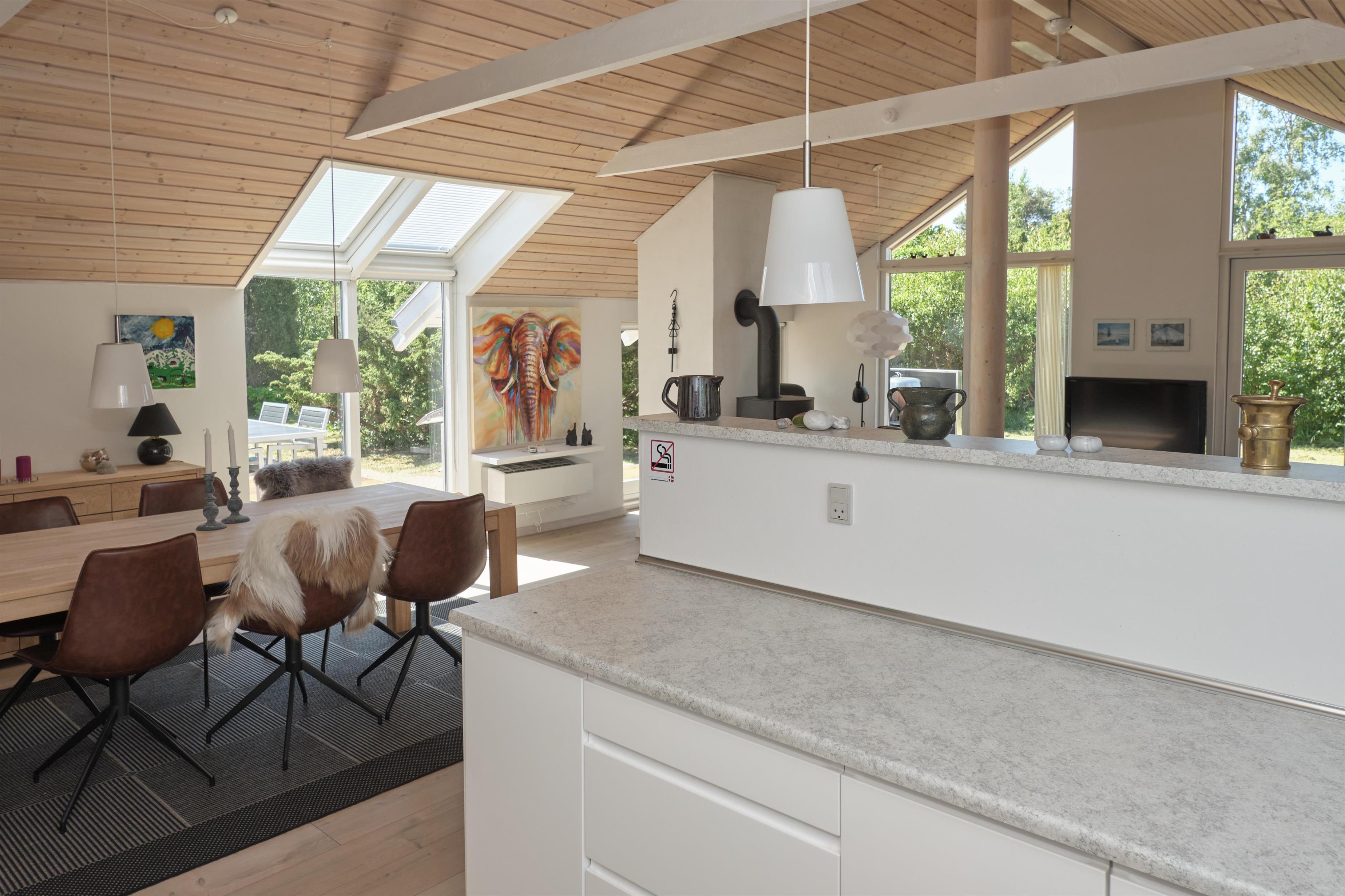Geräumiges und komplett renoviertes Ferienhaus auf einem gepflegten Naturgrundstück am Ende einer Sackgasse, nur 300 m vom kinderfreundlichen Øer Strand entfernt. Schöne, nach Süden und Westen gewandte Terrassen mit Gartenmöbeln, Liegestühlen, Sonnenschirm und Grill. An der Südseite des Hauses wurde ein toller, bis zum Dachfirst hin offener Wintergarten angebaut, in dem man das ganze Jahr über „draußen“ sitzen kann.
