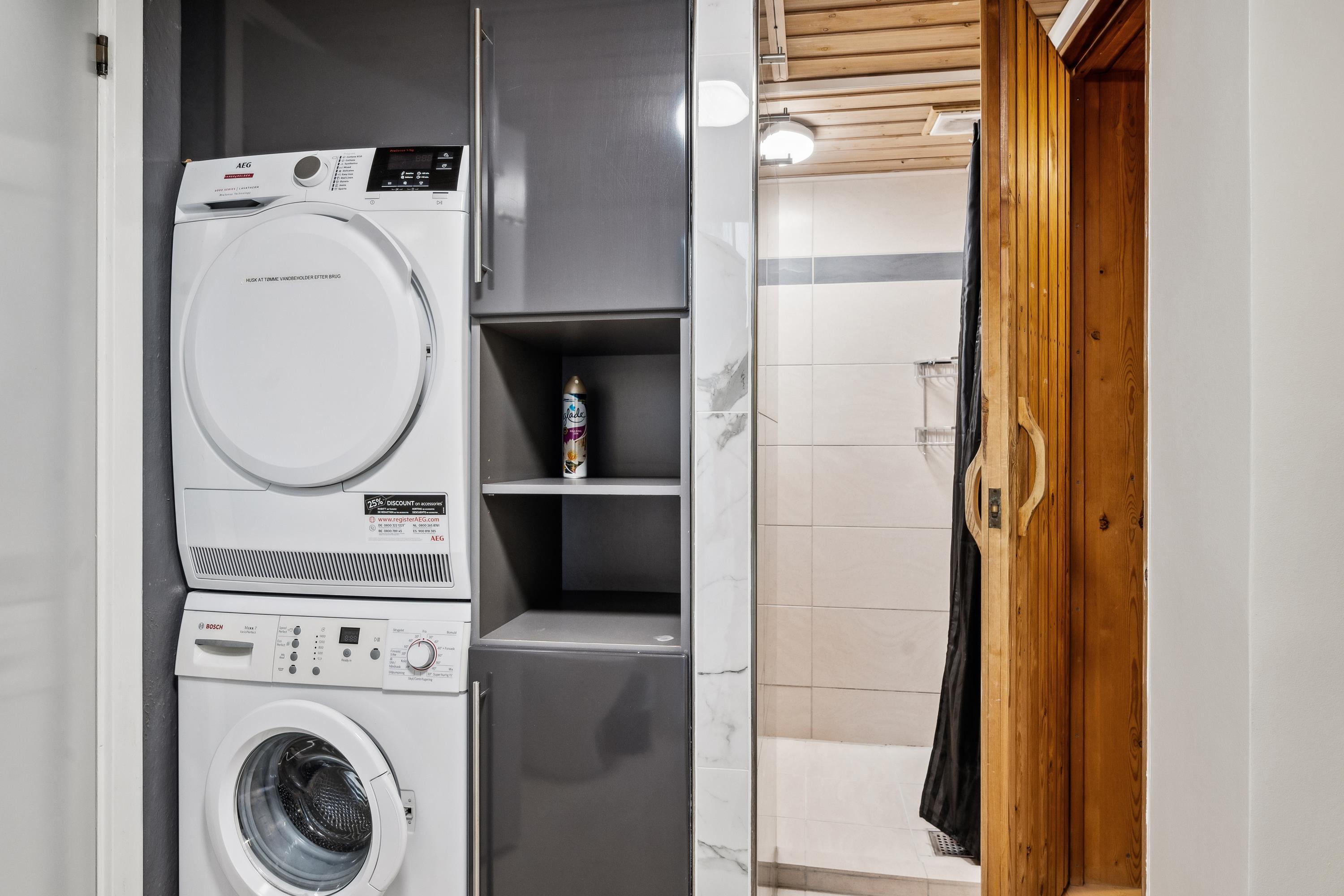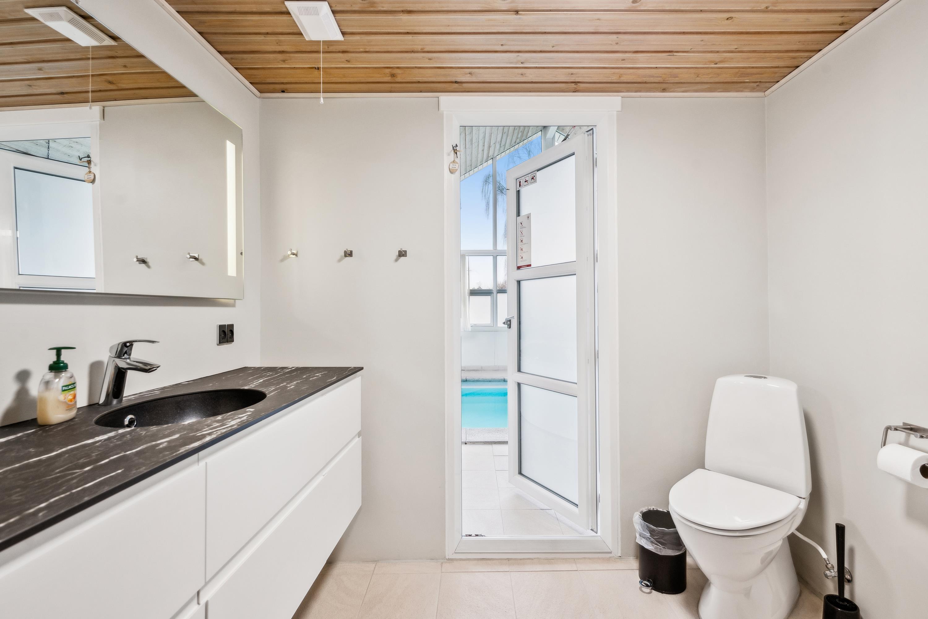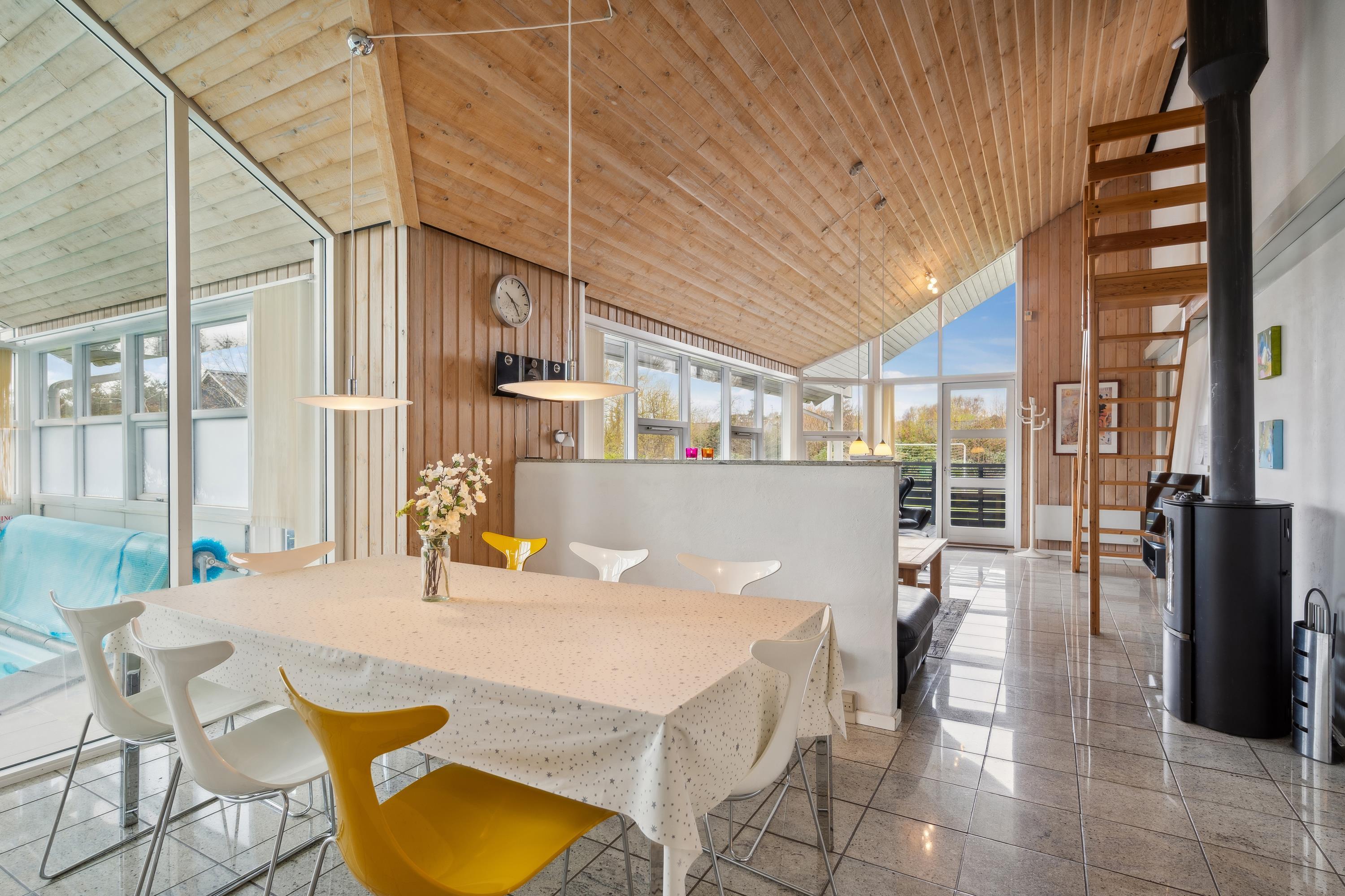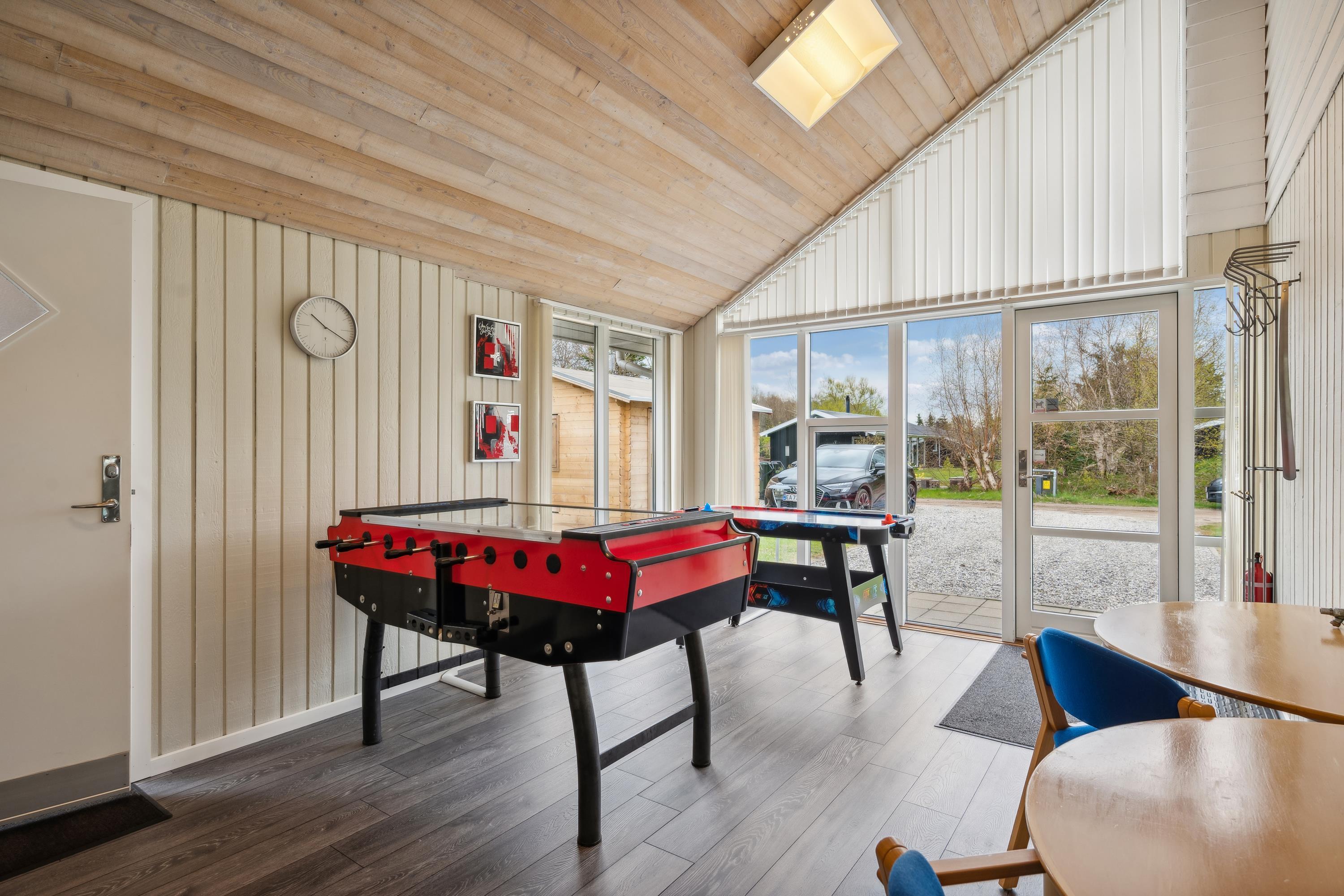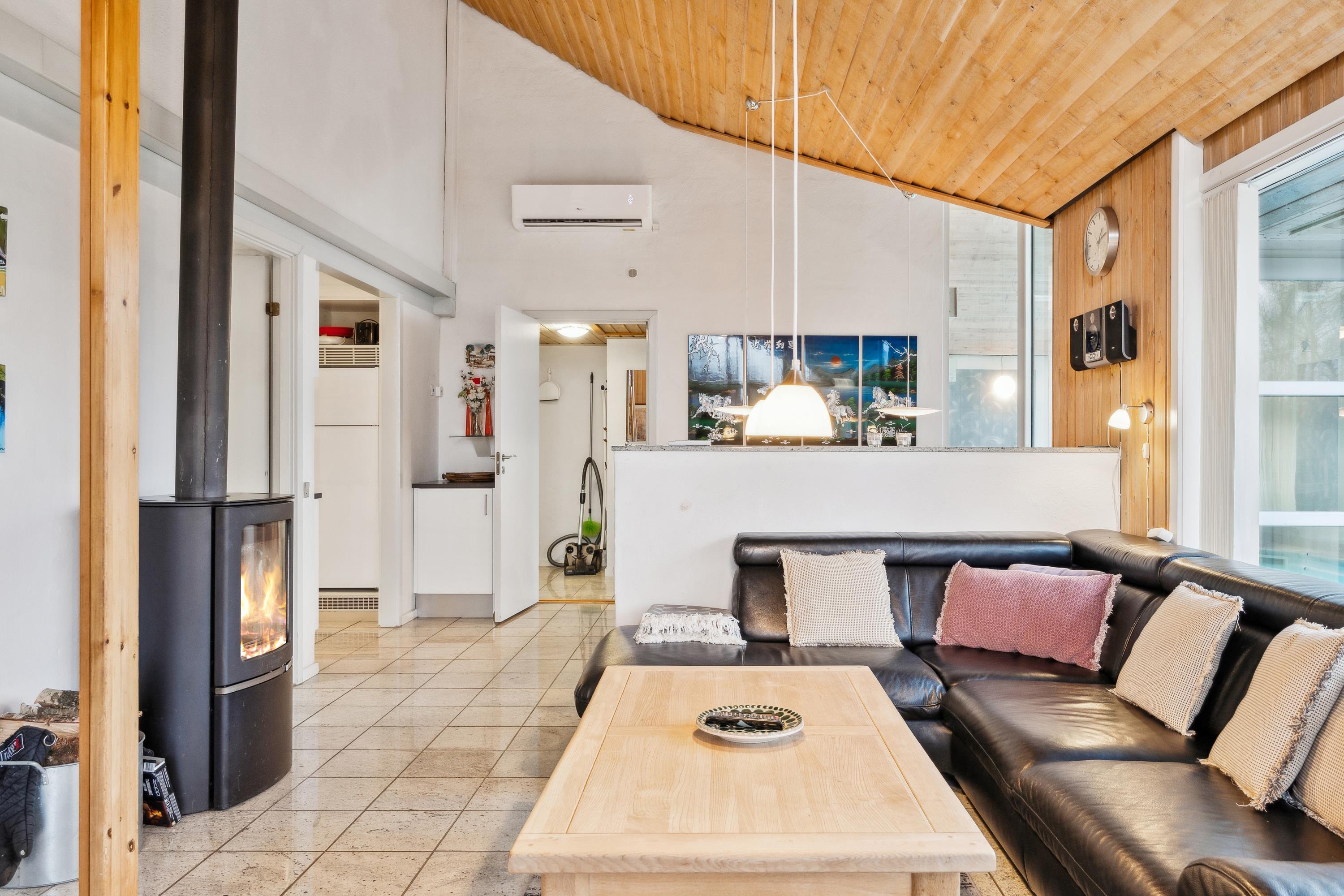 Nahe Ebeltoft befindet sich dieses schöne und gepflegte Ferienhaus mit Pool, gelegen auf einem herrlichen Grundstück, nur 500 Meter vom Strand bei Øer entfernt. Hier gibt es ein großes und helles Wohnzimmer, gemütlich eingerichtet mit hochwertigen Möbeln, einer Wärmepumpe und einem Kamin. Vom Wohnzimmer aus haben Sie Zugang zu einer schönen Terrasse mit guten Gartenmöbeln. Angrenzend an das Wohnzimmer befindet sich der Küchenbereich mit einem großzügigen Essplatz, an dem alle Platz finden. Die Schlafplätze des Ferienhauses verteilen sich auf drei schöne Schlafzimmer, alle mit Doppelbetten. Eine gute Treppe im Wohnzimmer führt zum offenen Dachboden, wo sich die letzten zwei Schlafplätze befinden, die sich besonders für Kinder eignen. Zudem gibt es auf dem Dachboden einen Raum zum Spielen und Entspannen. Das Badezimmer ist mit Fußbodenheizung ausgestattet und bietet Zugang zur hauseigenen Sauna. Zusätzlich gibt es ein Gäste-WC. Ein toller Aktivitätsraum mit u.a. Airhockey und Tischfußball sorgt für Unterhaltung. Die schöne Poolabteilung verfügt auch über einen Whirlpool. Für die kleinen Feriengäste stehen ein Hochstuhl und ein Kinderbett zur Verfügung. Das Ferienhaus liegt auf einem wunderschönen Grundstück mit einer großen Rasenfläche, ideal für Spiel und Spaß im Freien. Auch für die kleinen Gäste ist gesorgt: Es gibt einen Sandkasten, eine Rutsche und ein Fußballtor. Ein fantastisches Ferienhaus, das alle Wünsche für einen erholsamen Urlaub erfüllt.