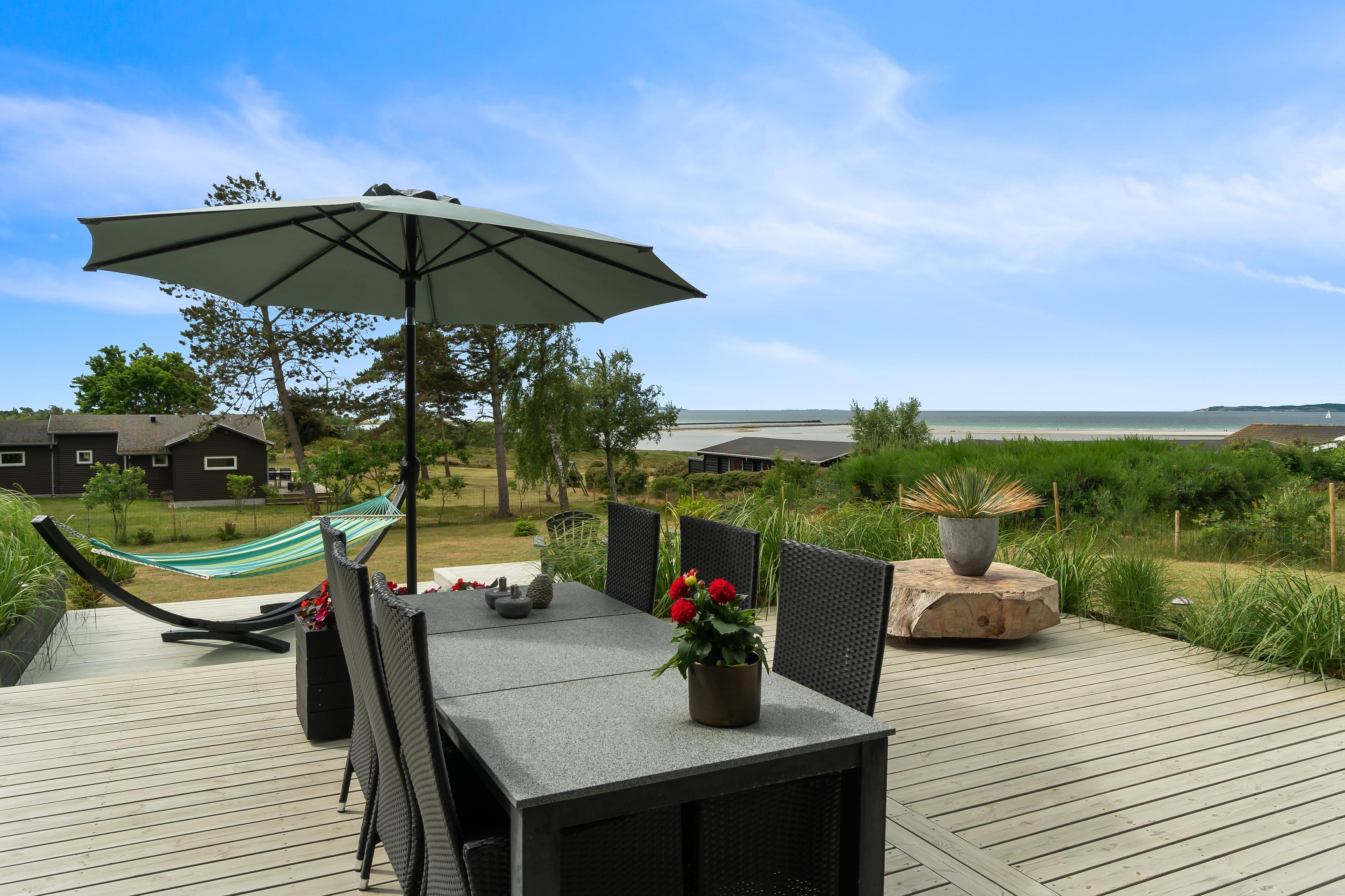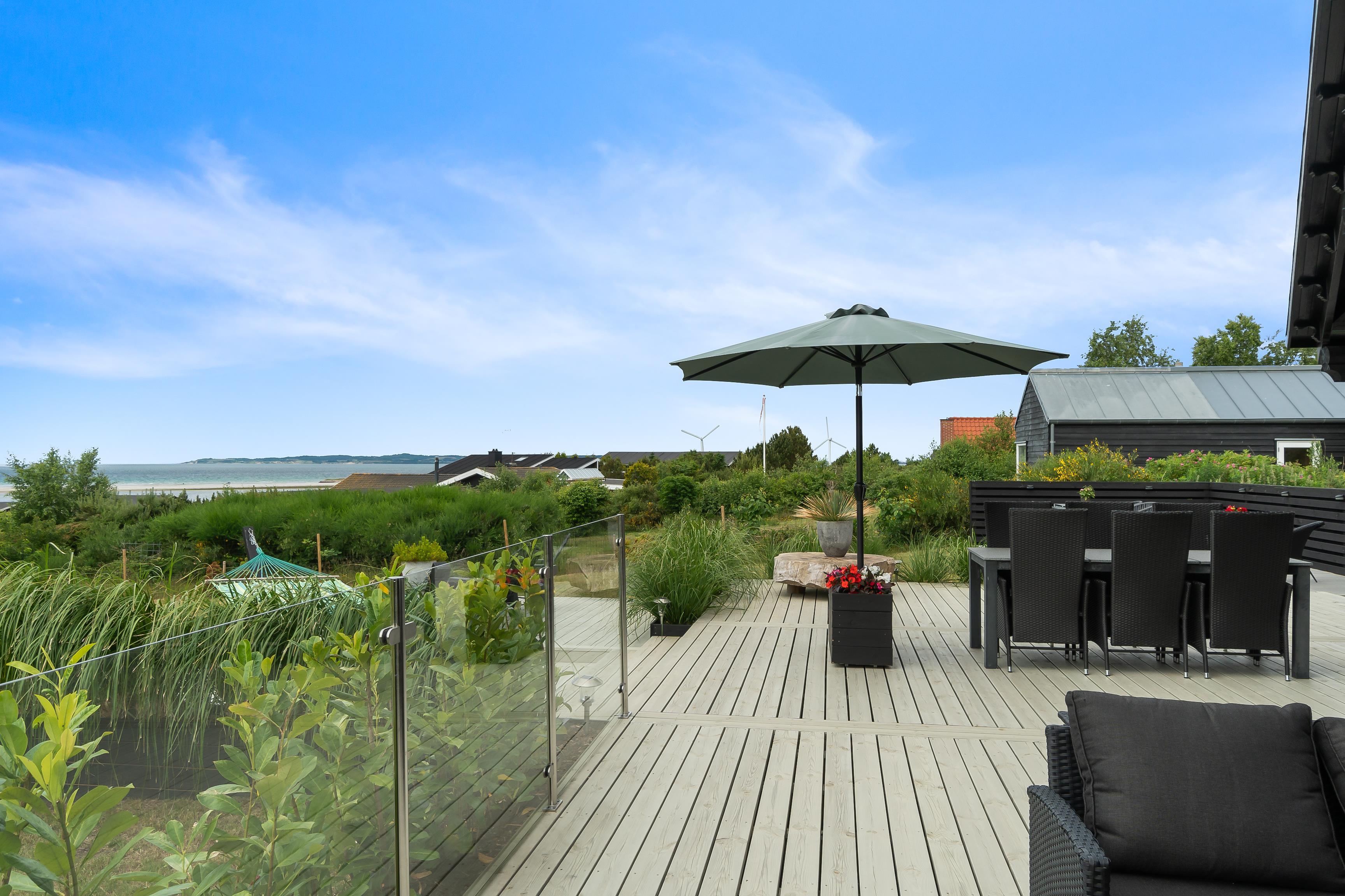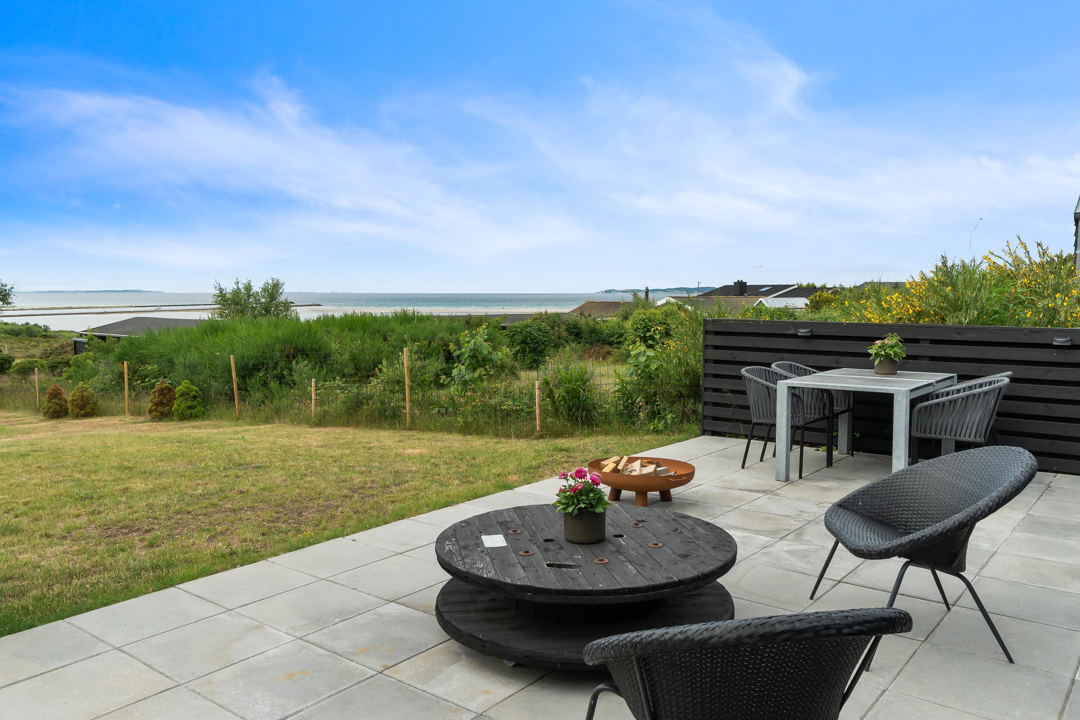 Das Haus liegt auf einem schönen Grundstück mit herrlichem Meeresblick und Platz zum Spielen und Beisammensein. Große Terrassen mit guten Gartenmöbeln und Grill.