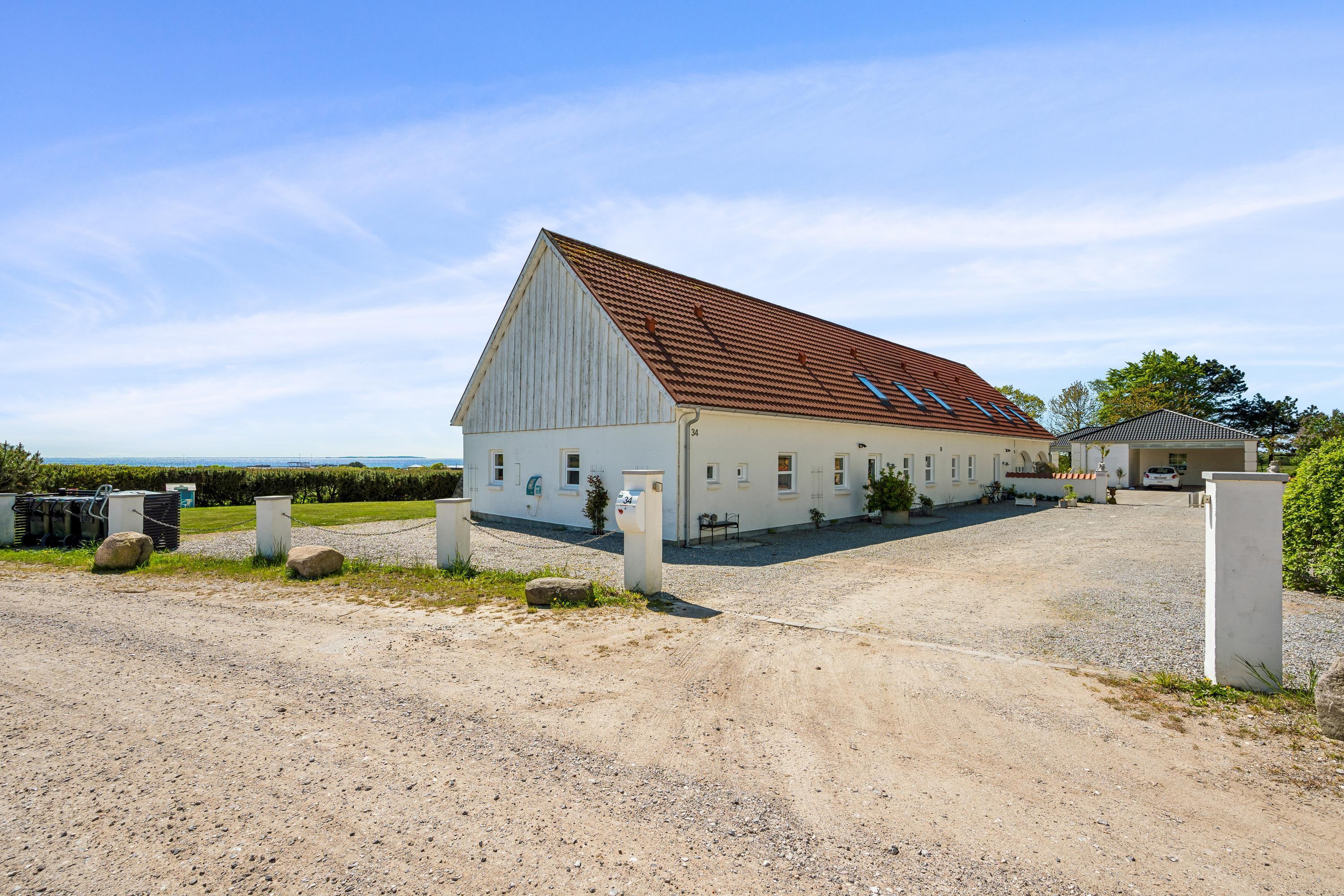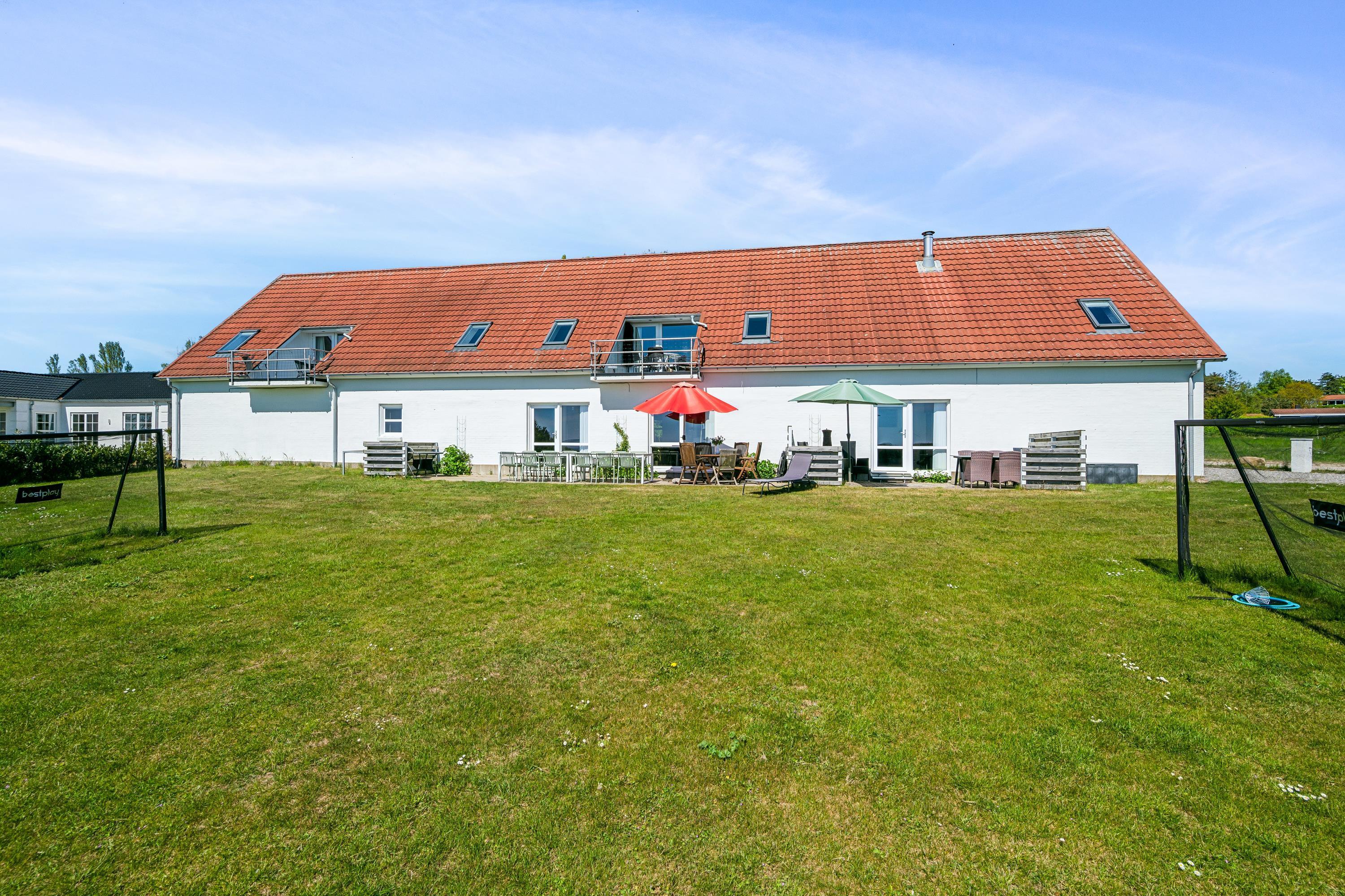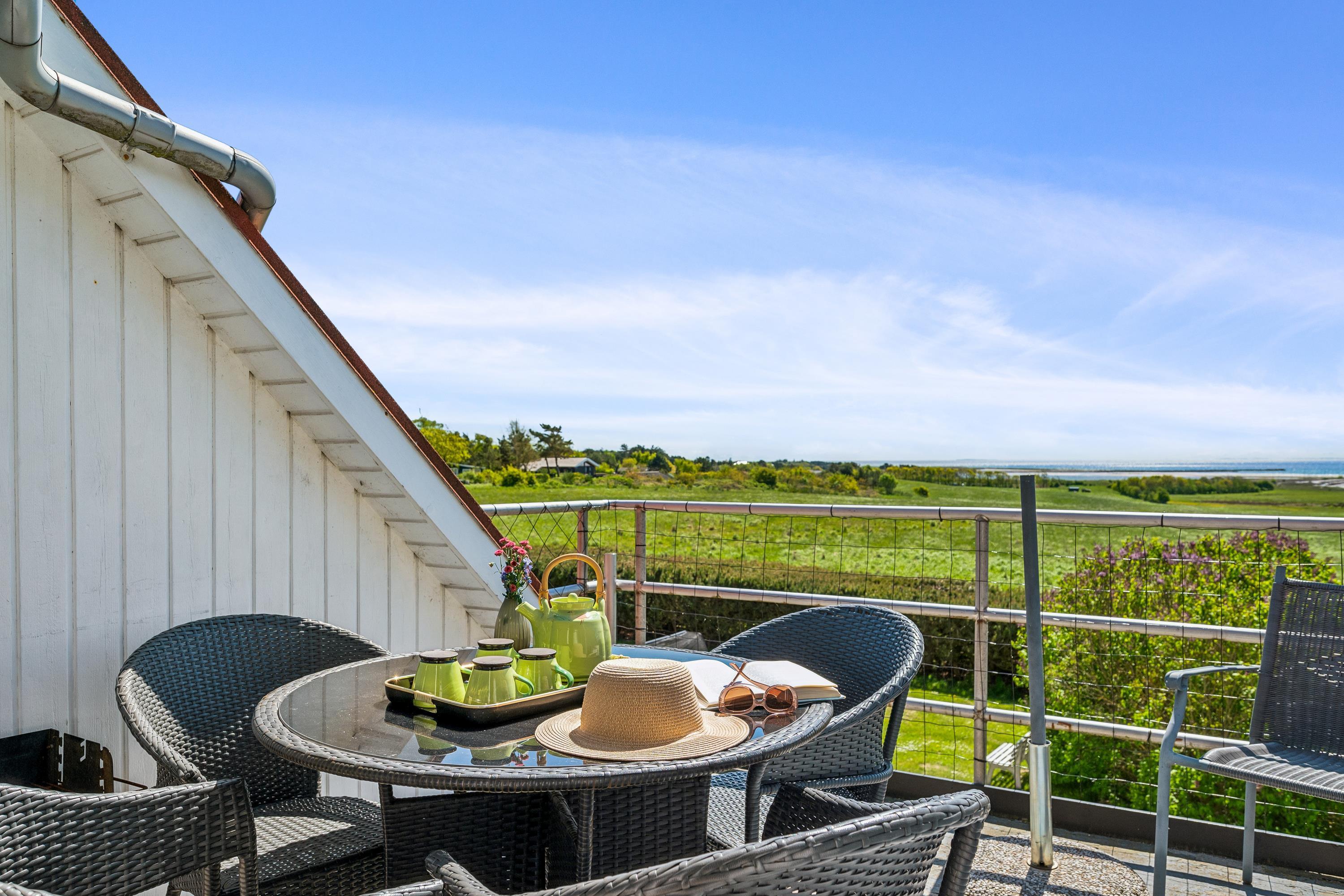 Einladende, helle und gepflegte Ferienwohnung auf einem hoch gelegenen, offenen Naturgrundstück mit Panoramablick auf das Kattegat und die hügelige Landschaft südlich von Ebeltoft. Die Wohnung liegt im ersten Stock und hat einen nach Südwesten gewandten Balkon mit Gartenmöbeln und Grill. Auf dem großen Grundstück, das mit drei anderen Ferienwohnungen geteilt wird, befinden sich eine Feuerstelle sowie eine Schaukel und ein Sandkasten für die Kinder.