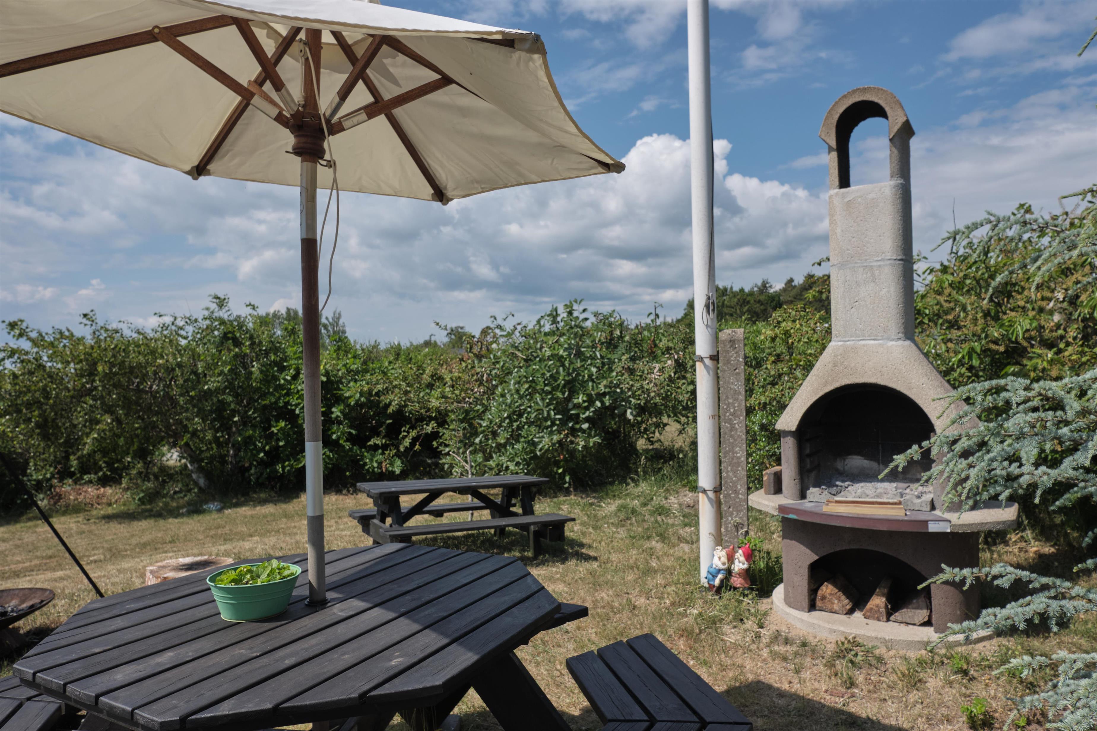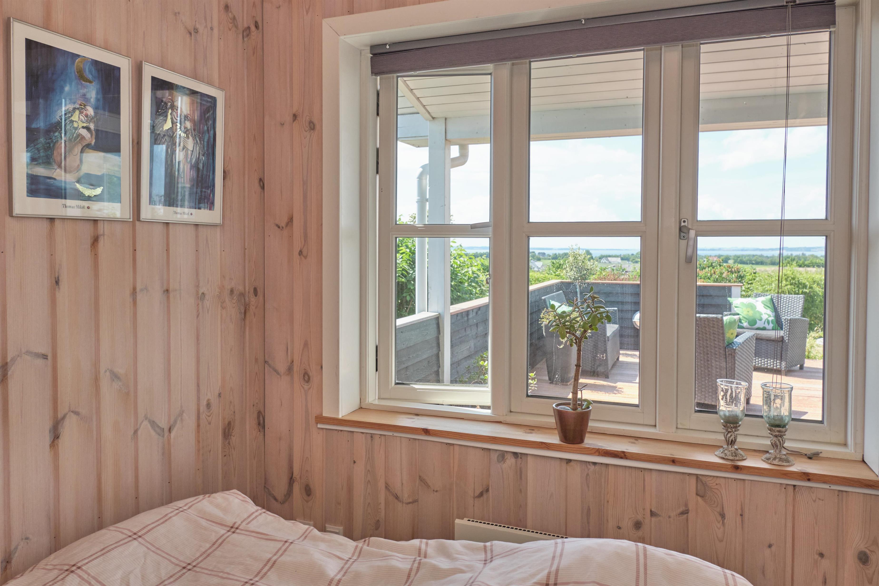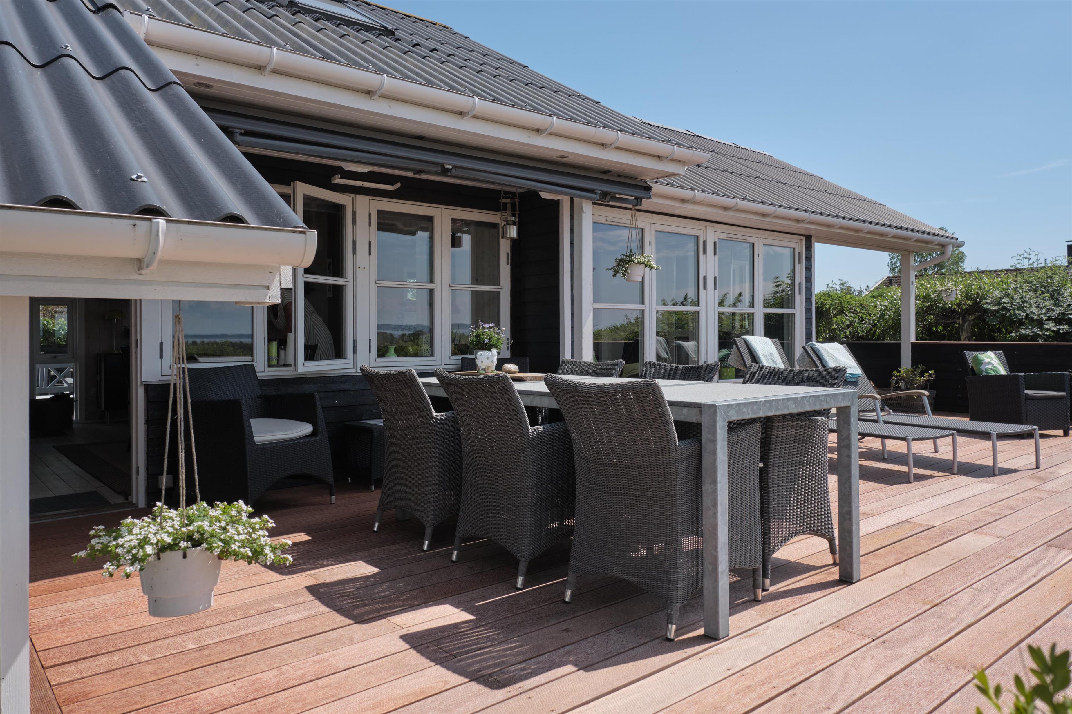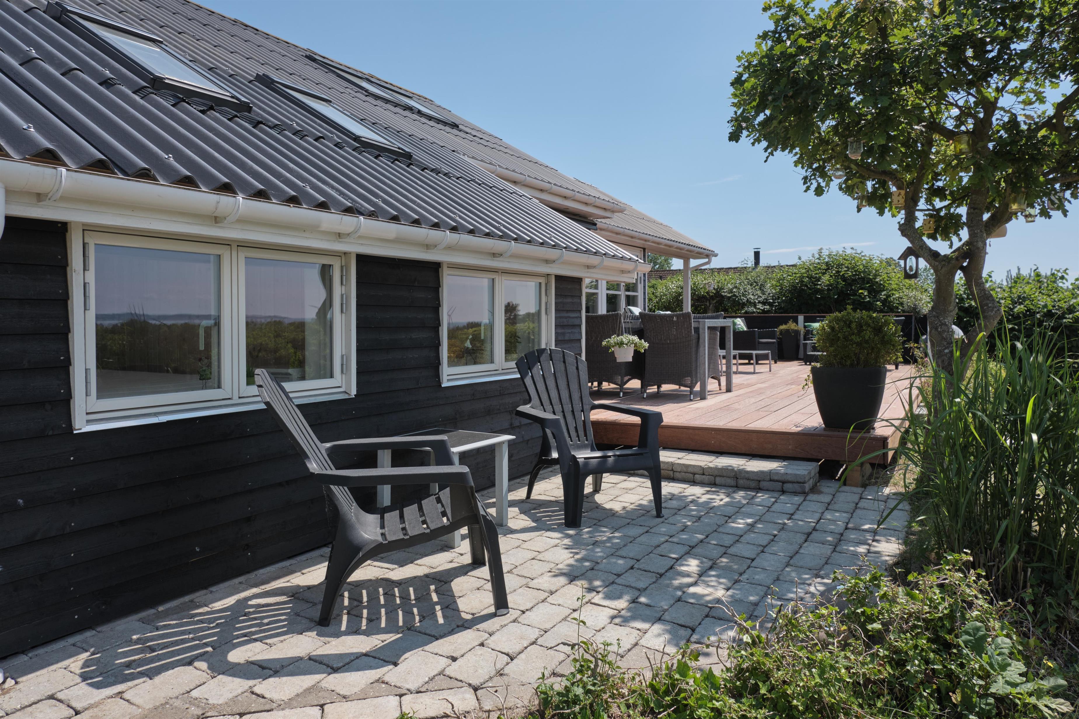 Klassisches und komplett renoviertes Ferienhaus von 1965 auf einem abschüssigen Naturgrundstück mit herrlicher Aussicht auf das Kattegat und die Landschaft bei Øer. Mehrere schöne Terrassen, teilweise überdacht, mit gutem Windschutz, davon eine mit Außenkamin. Ein gut eingerichtetes und äußerst gemütliches Haus.