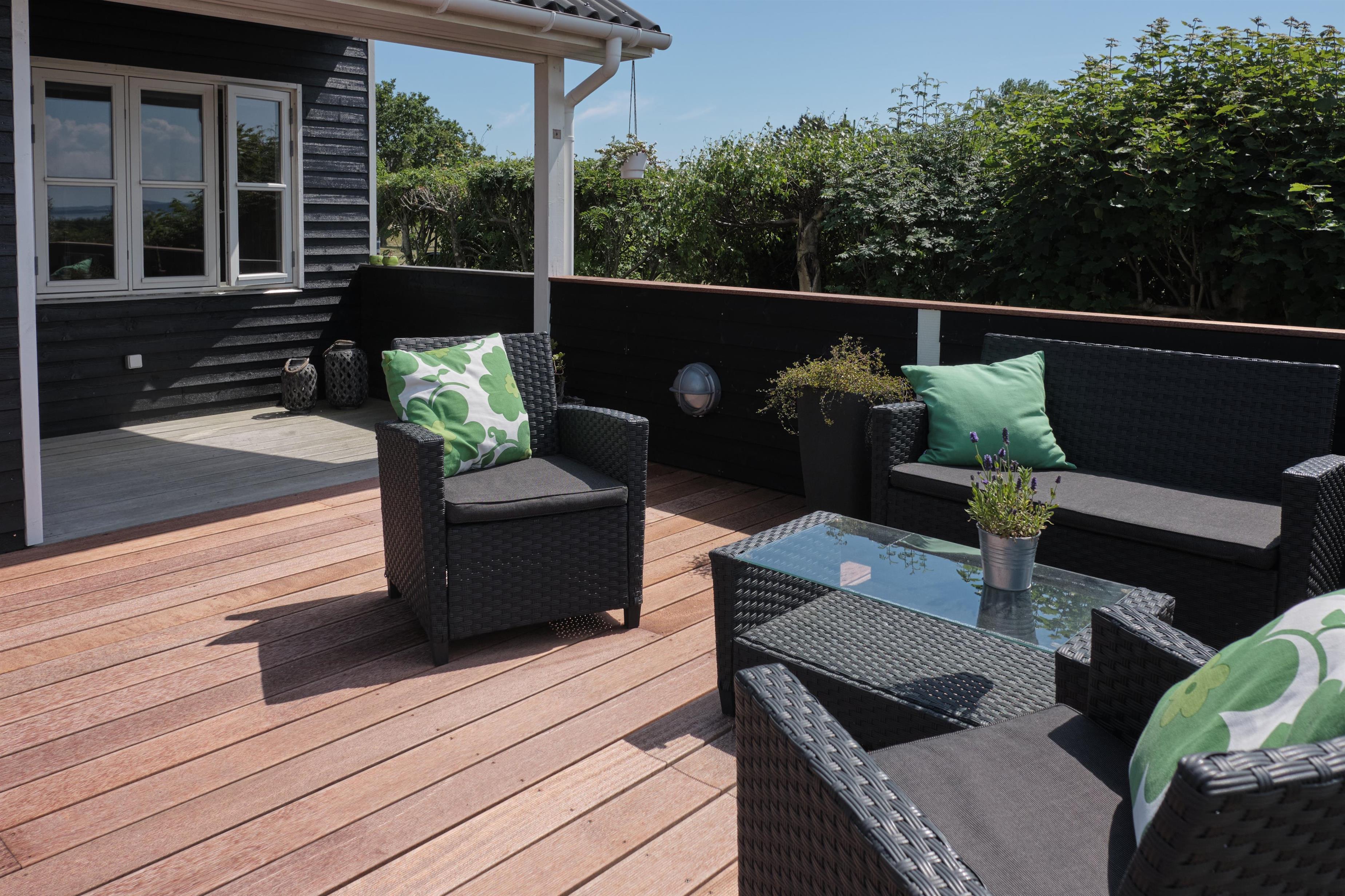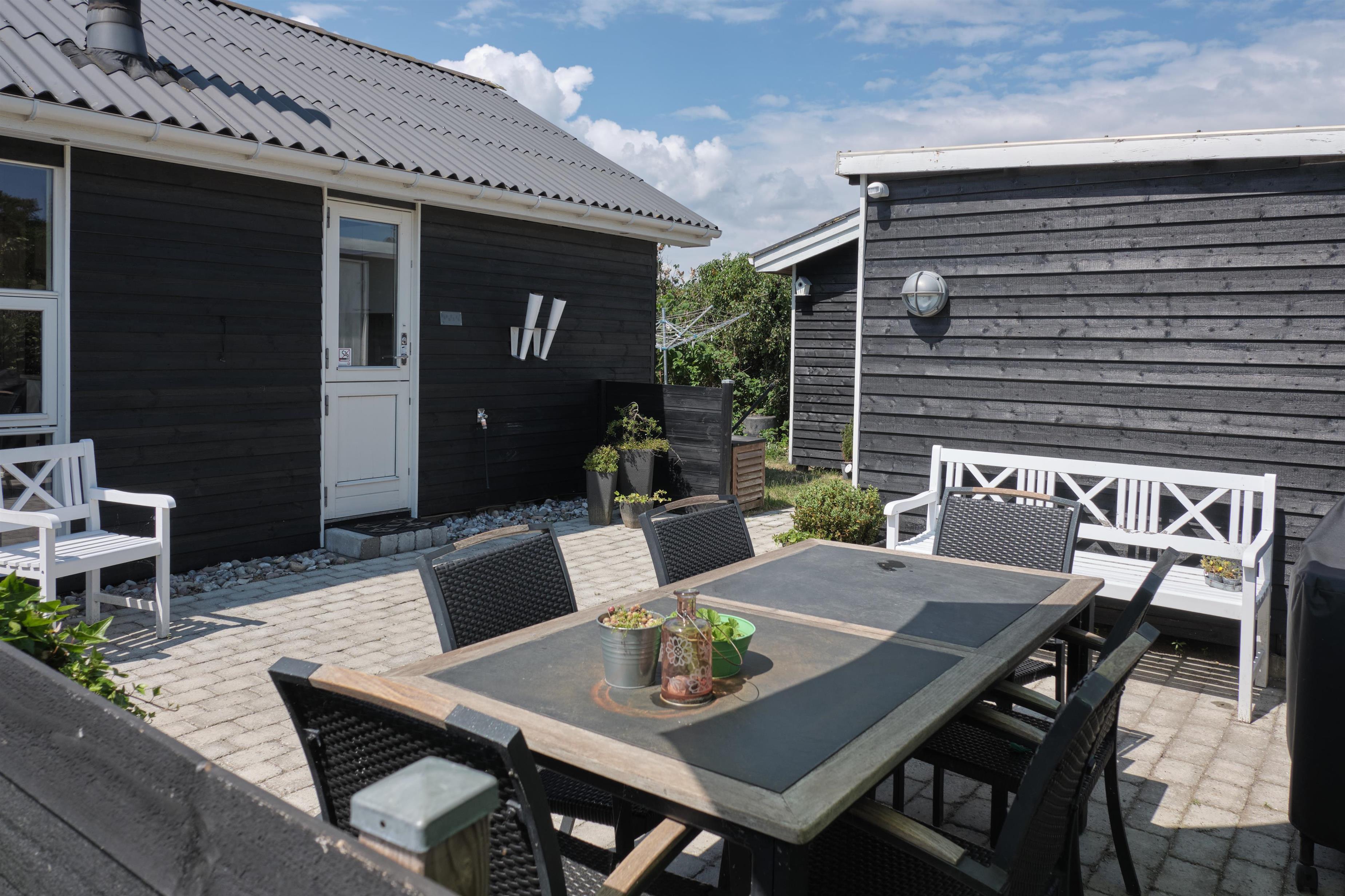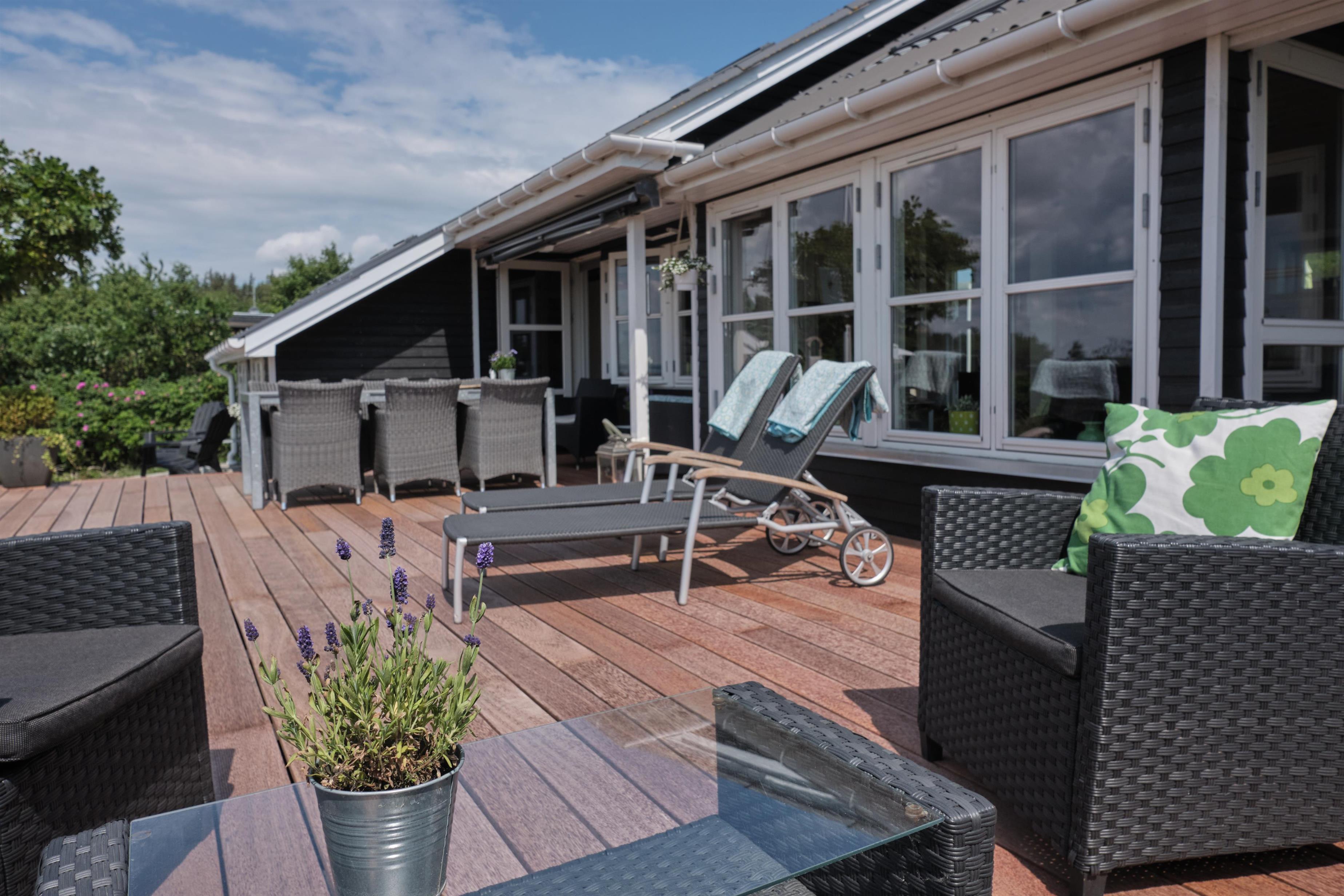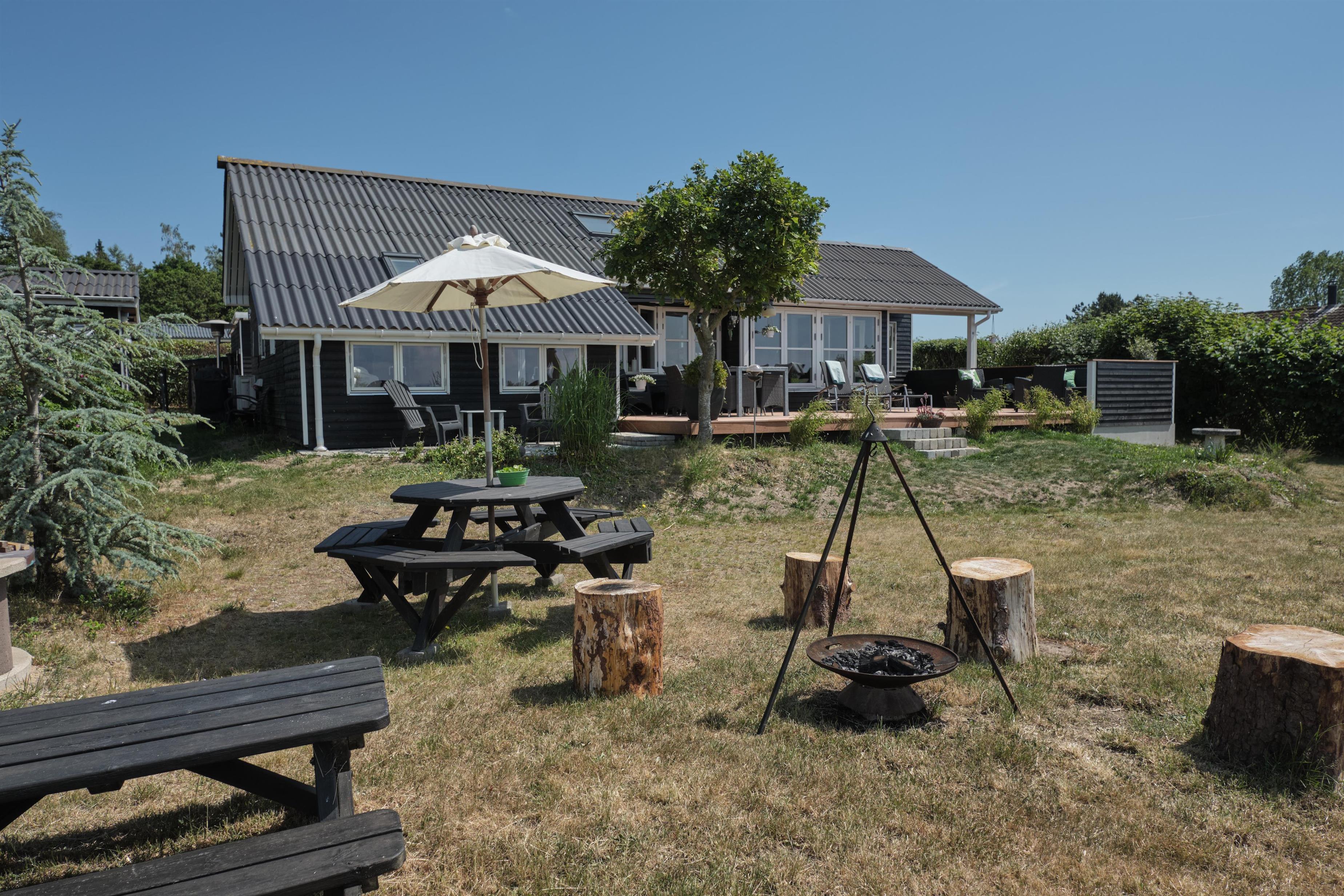 Ein 27 m2 großer Anbau (von 2014) mit eigener Terrasse macht das Wohnzimmer besonders hell und geräumig. Hier gibt es einen Kaminofen, eine bequeme Sofaecke, mehrere gemütliche Ecken mit guten Sesseln sowie einen großen separaten Essbereich. Funktionelle Küche mit Glaskeramik-Kochfeld, Backofen, Kühl-/Gefrierkombination und Geschirrspüler. Die sechs Schlafplätze verteilen sich auf drei Zimmer mit Doppelbett. Funktionelles Badezimmer mit Dusche und Waschmaschine. Fernseher mit dänischen (inkl. TV2) und deutschen Programmen. Die Terrassen sind mit schönen Gartenmöbeln, Liegestühlen, Sonnenschirm, Grill und einem großen Außenkamin ausgestattet. Auf dem Grundstück befinden sich zudem ein großes Tisch-Bank-Set mit Sonnenschirm sowie ein Fußballtor für die Sportbegeisterten.