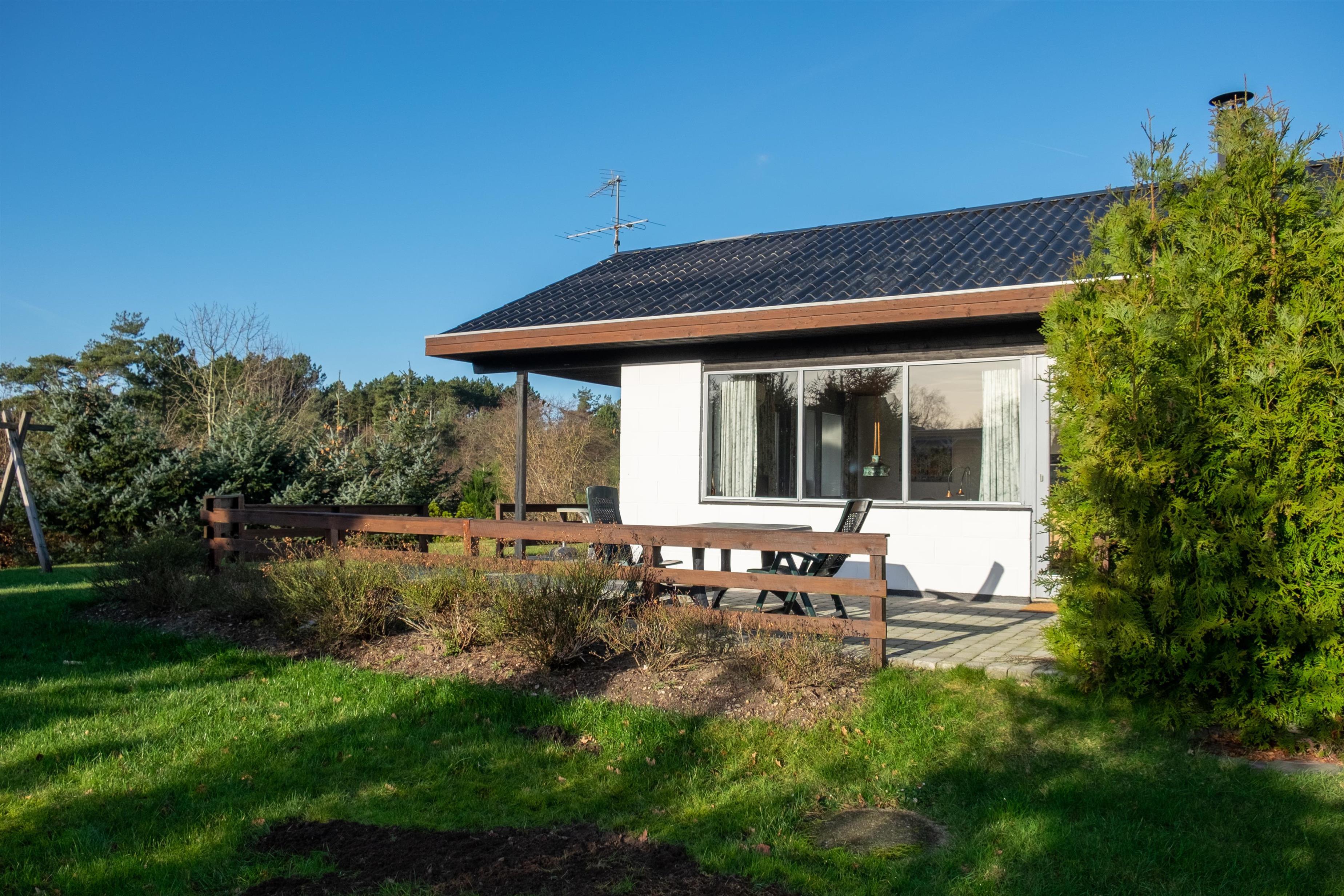 Im ruhigen Ferienhausgebiet Lærkelunden nördlich von Øer liegt dieses ältere, aber gepflegte und laufend modernisierte Ferienhaus auf einem schönen, bewachsenen Naturgrundstück. Ein gut eingerichtetes und gemütliches Haus. Große, nach Süden und Westen gewandte, teilweise überdachte Fliesenterrasse mit Zugang vom Wohnzimmer, Gartenmöbeln, Liegestühlen, Sonnenschirm und Grill. Auf dem Grundstück befindet sich auch eine Schaukel für die kleinsten Gäste.