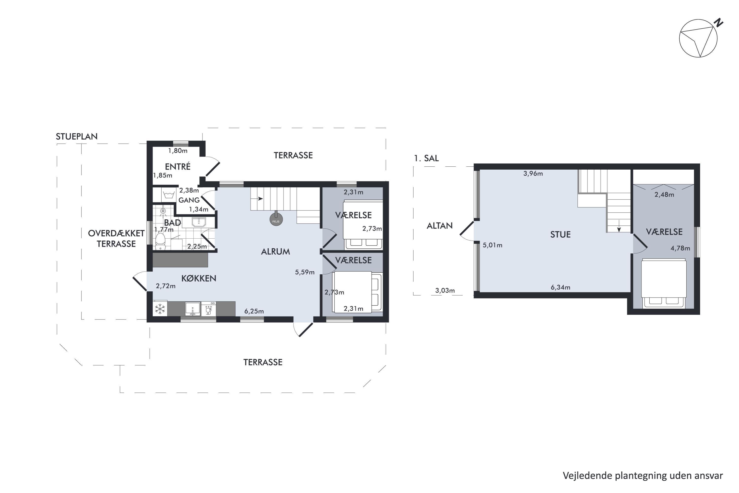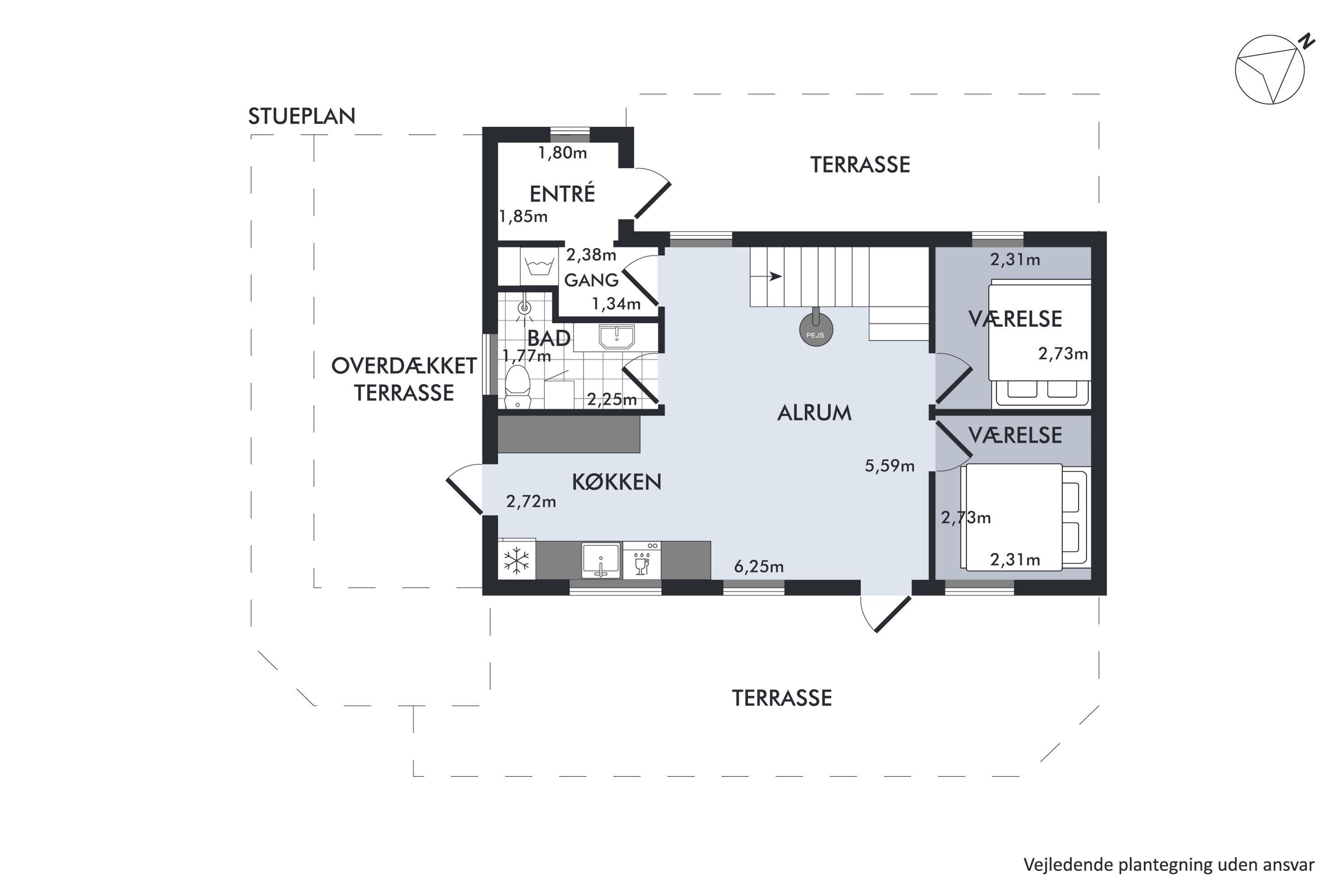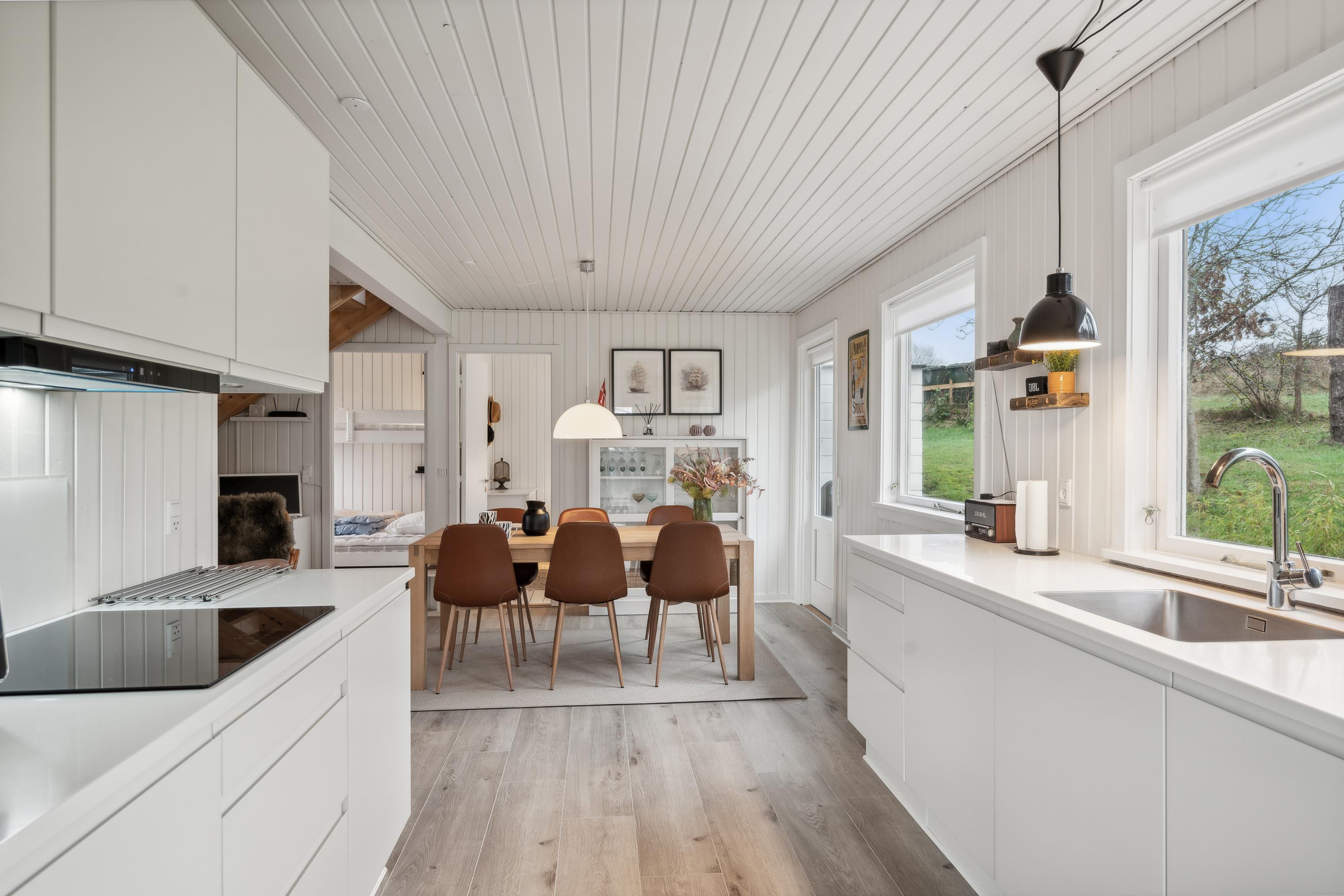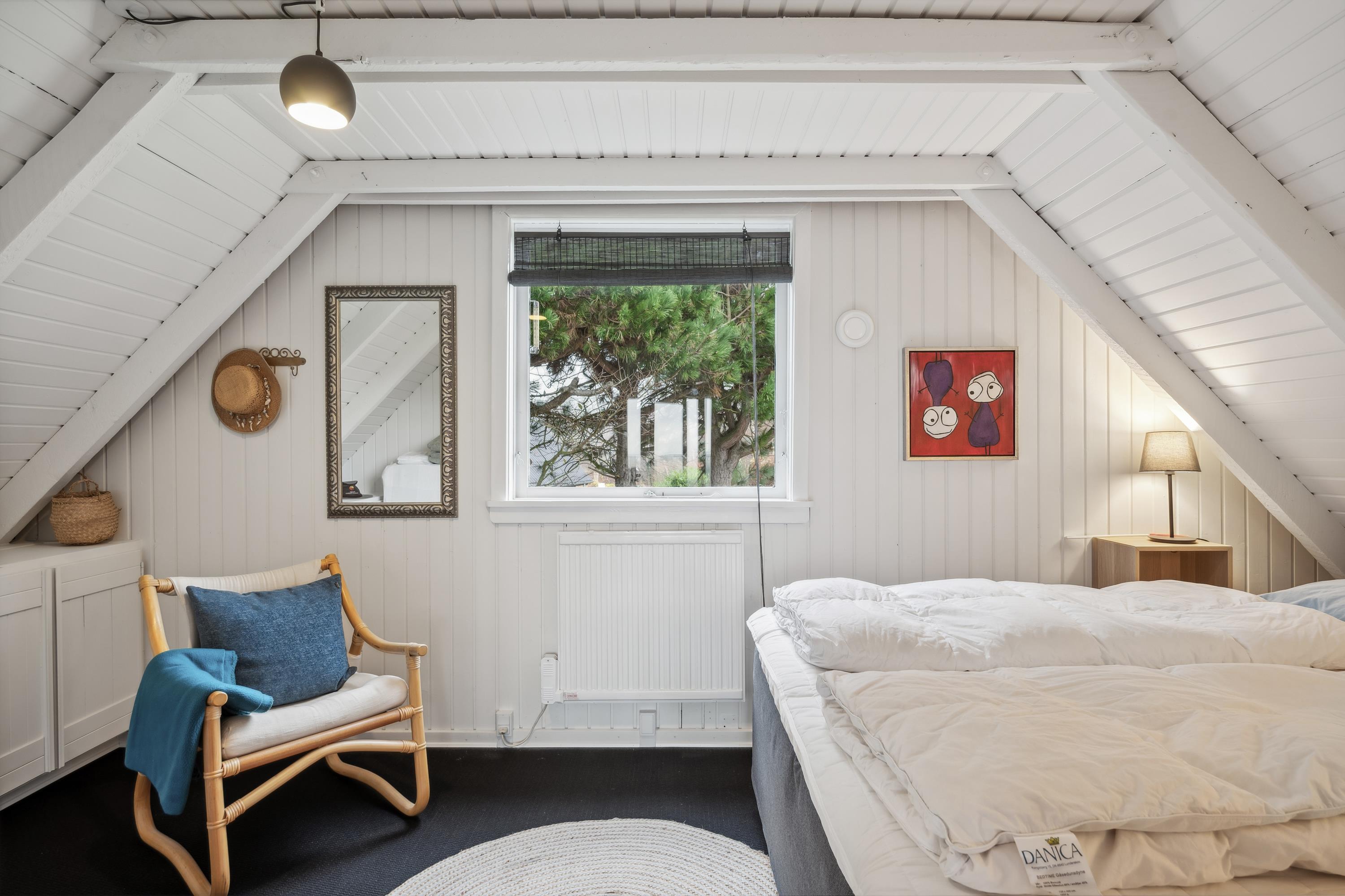 Nur 5 Minuten Fahrt von Ebeltoft entfernt finden Sie dieses schöne und gepflegte Ferienhaus auf zwei Etagen. Beim Betreten des Feirenhauses gelangen Sie in den Eingangsbereich mit Platz für Schuhe und Jacken sowie die Waschmaschine des Hauses. Die moderne Küche, ausgestattet u.a. mit einem Geschirrspüler, bietet direkten Zugang zu einer herrlichen, überdachten Terrasse mit Gartenmöbeln. Angrenzend an das Wohnzimmer befindet sich der gemütliche Essbereich, von dem aus eine weitere Terrasse zugänglich ist – ebenfalls mit Gartenmöbeln und Grill. Zwei komfortable Schlafzimmer mit Doppelbetten und ein schönes Badezimmer mit Dusche sind ebenfalls vorhanden. Vom Essbereich führt eine gute Treppe in die obere Etage, wo sich ein gemütliches und geschmackvoll eingerichtetes Wohnzimmer befindet. Von hier aus gelangen Sie auf eine herrliche Terrasse mit einem atemberaubenden Blick auf das Wasser. Auf der ersten Etage finden Sie zudem das letzte Schlafzimmer mit einem Doppelbett. Das Ferienhaus liegt auf einem schönen Grundstück mit großer Rasenfläche, ideal für Spiel und Outdoor-Aktivitäten.