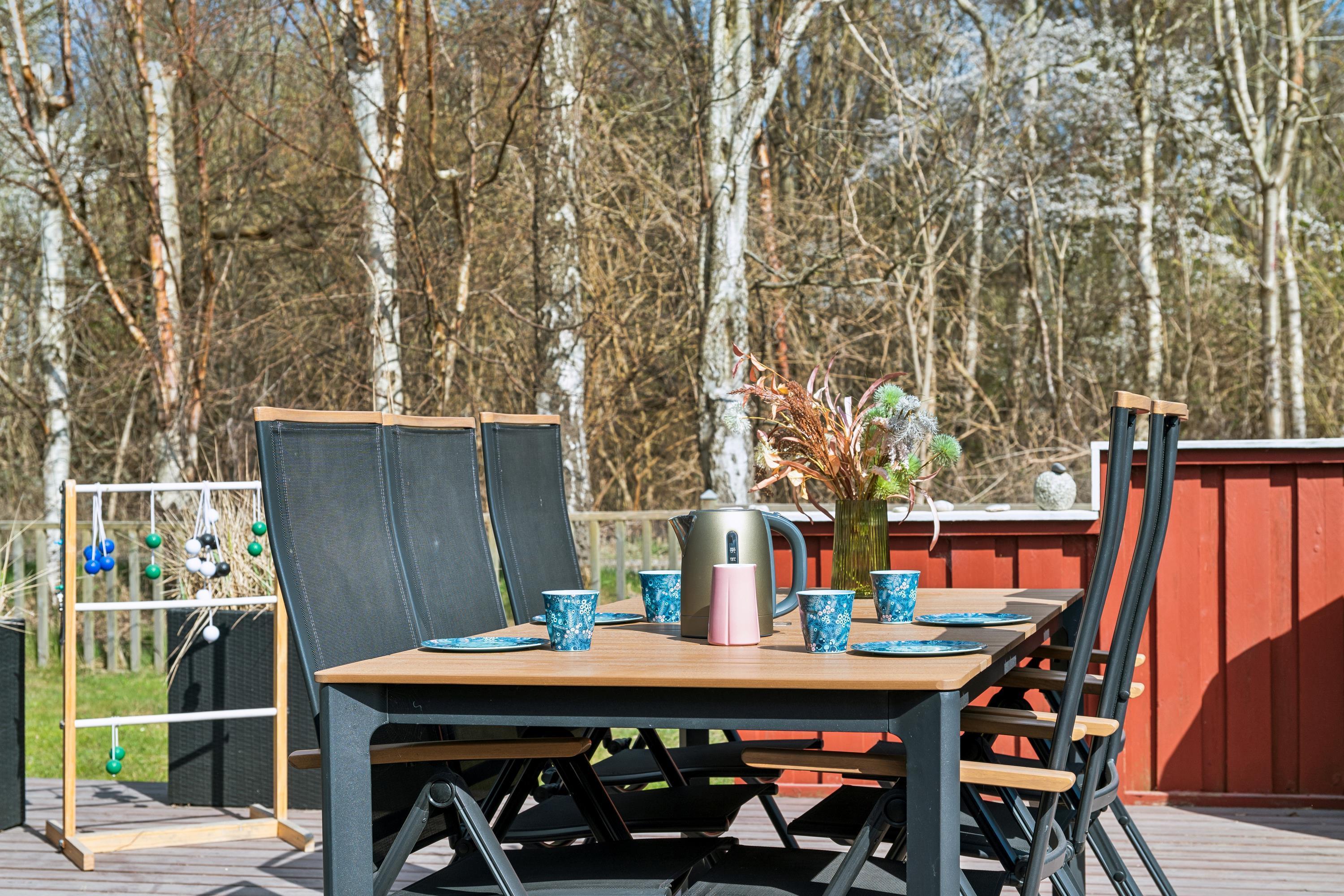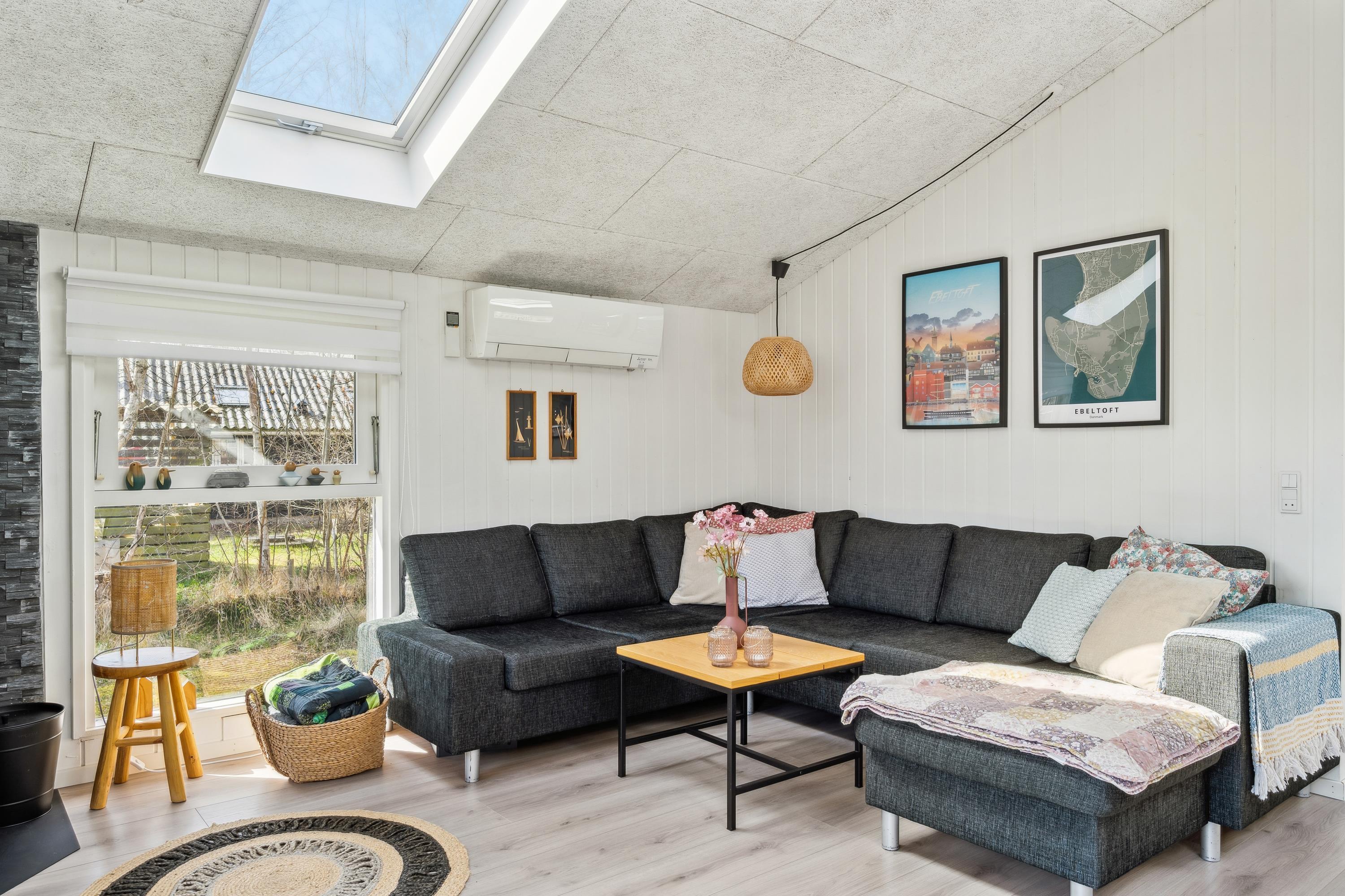 Schon wenn Sie die Tür öffnet und den Eingangsbereich betritten, spüren Sie die echte Ferienhausstimmung, die dieses Ferienhaus ausstrahlt. Das Wohnzimmer ist geschmackvoll eingerichtet mit gemütlichen Möbeln sowie einer Wärmepumpe und einem Holzofen. Vom Wohnzimmer aus gelangen Sie auf eine schöne überdachte Terrasse mit Loungemöbeln sowie auf eine große offene Terrasse mit Gartenmöbeln und Grill.