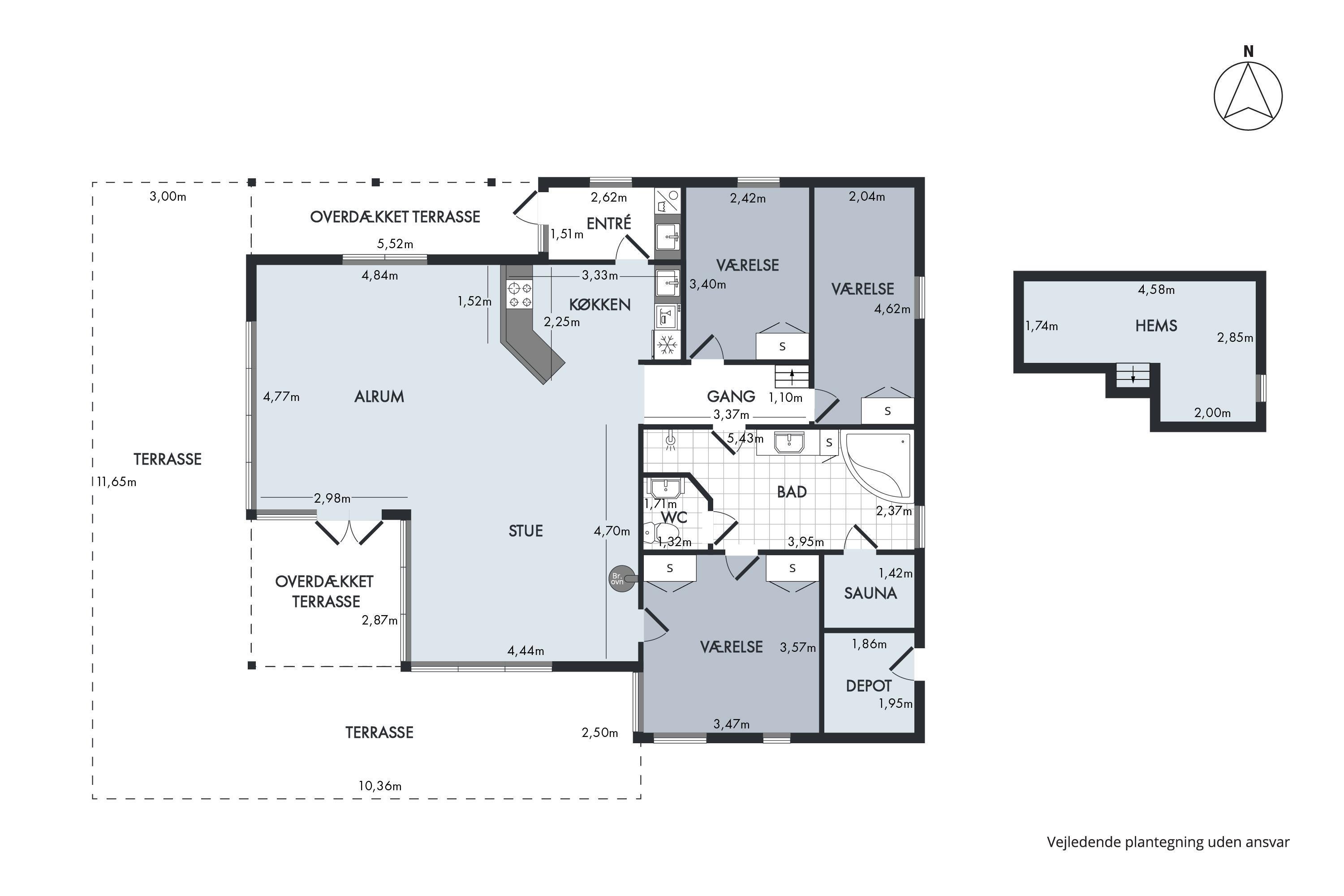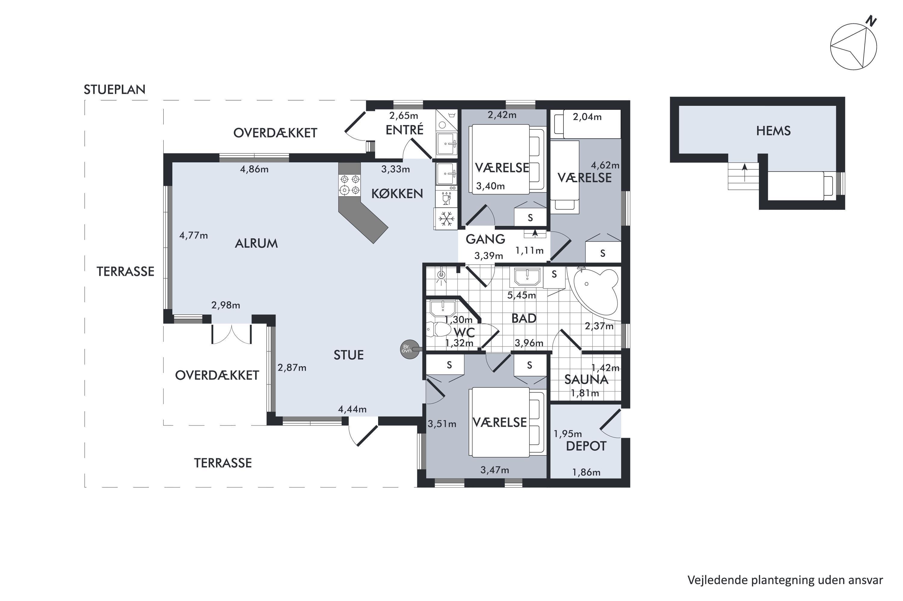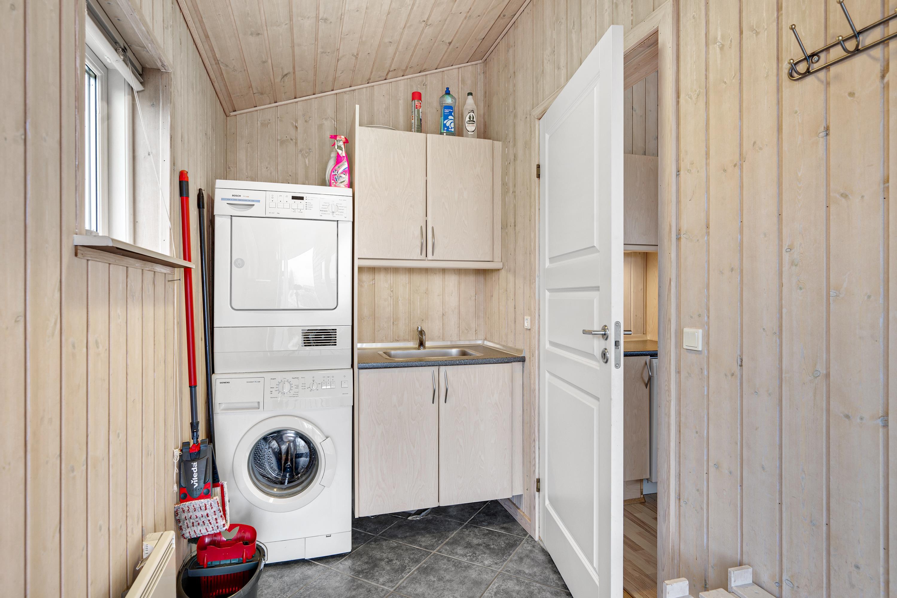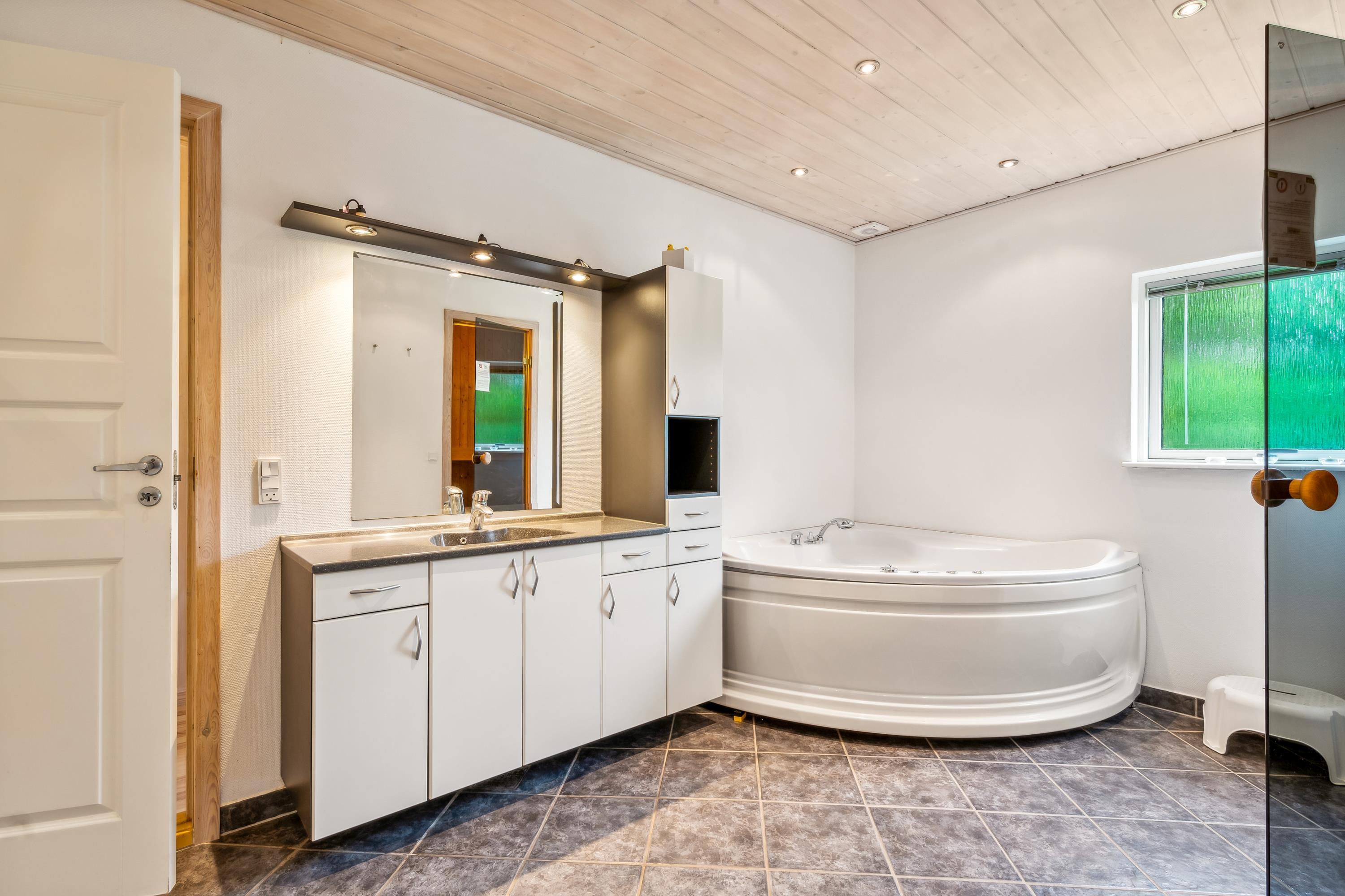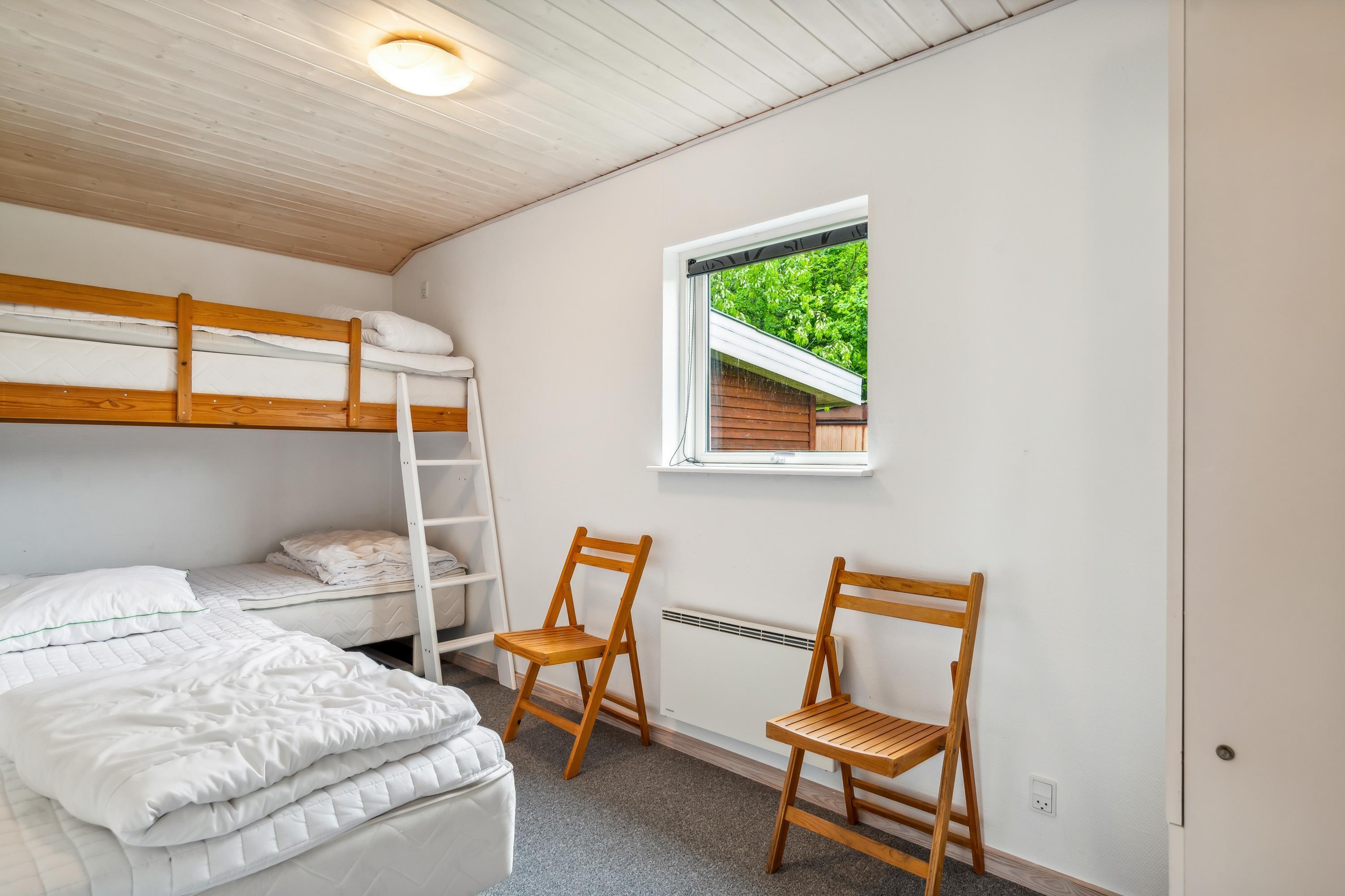 Das Haus präsentiert sich überall hell und freundlich mit bis zum Dachfirst offener Bauweise und gutem Lichteinfall. Großes Wohnzimmer mit Panoramafenstern, Zugang zur Terrasse, Kaminofen, bequemer Sitzecke, TV mit dänischen (inkl. TV2) sowie Essplatz für acht Personen. In offener Verbindung dazu liegt die neuere Küche mit Glaskeramik-Kochfeld, Backofen, Kühl-/Gefrierkombination, Geschirrspüler und Mikrowelle. Die acht Schlafplätze verteilen sich auf zwei große Zimmer mit Doppelbett, ein kleineres Zimmer mit Einzelbett und Etagenbett sowie einen großen Hängeboden mit Doppelbett und Einzelbett. Schickes Badezimmer mit Dusche, Whirlpool und Sauna. Fußbodenheizung in allen Nassräumen. In einem separaten Raum neben der Küche stehen eine Waschmaschine und ein Trockner. Internetzugang.
