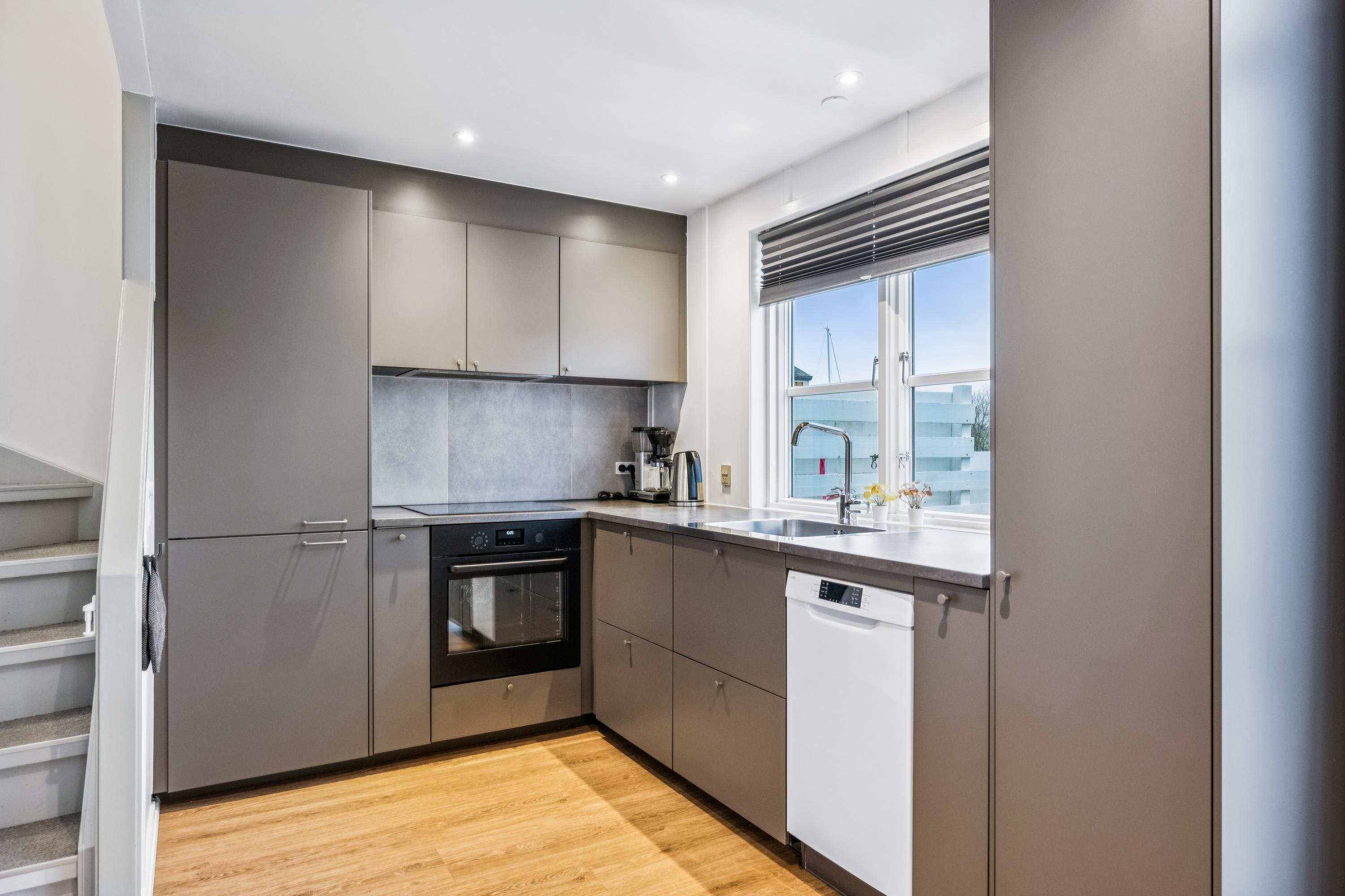 Willkommen in dieser schönen und gut eingerichteten Ferienwohnung in Øer Maritime Ferieby. Die Wohnung erstreckt sich über zwei Ebenen, wurde 2024 renoviert und verfügt über eine moderne neue Küche mit u. a. Geschirrspüler. In Verbindung mit der Küche befindet sich ein gemütlicher Essbereich mit direktem Zugang zu einer großen Terrasse mit hochwertigen Gartenmöbeln. Von hier aus genießen Sie einen herrlichen Blick auf das Wasser. Gemütlicher Wohnbereich mit Wärmepumpe. Modernes Badezimmer mit Dusche und Fußbodenheizung.