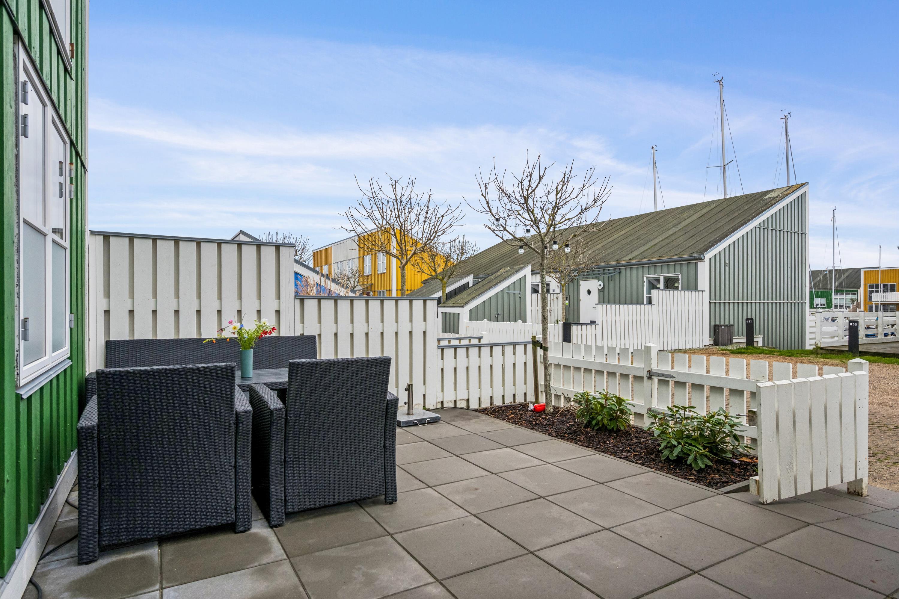 Moderne Ferienwohnung in Øer Maritime Ferieby mit Terrasse, Blick auf Wasser und vielfältigen Sportangeboten.