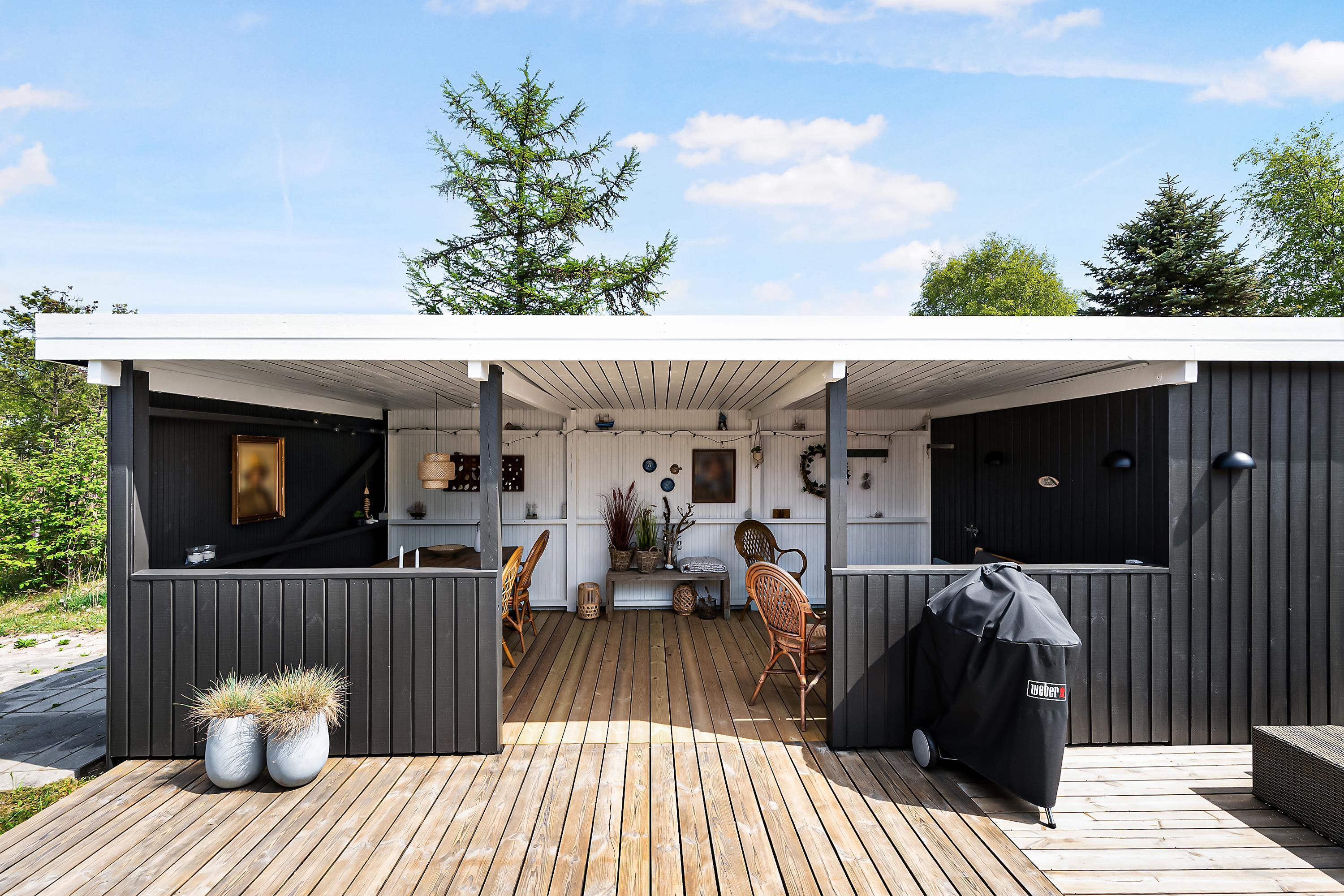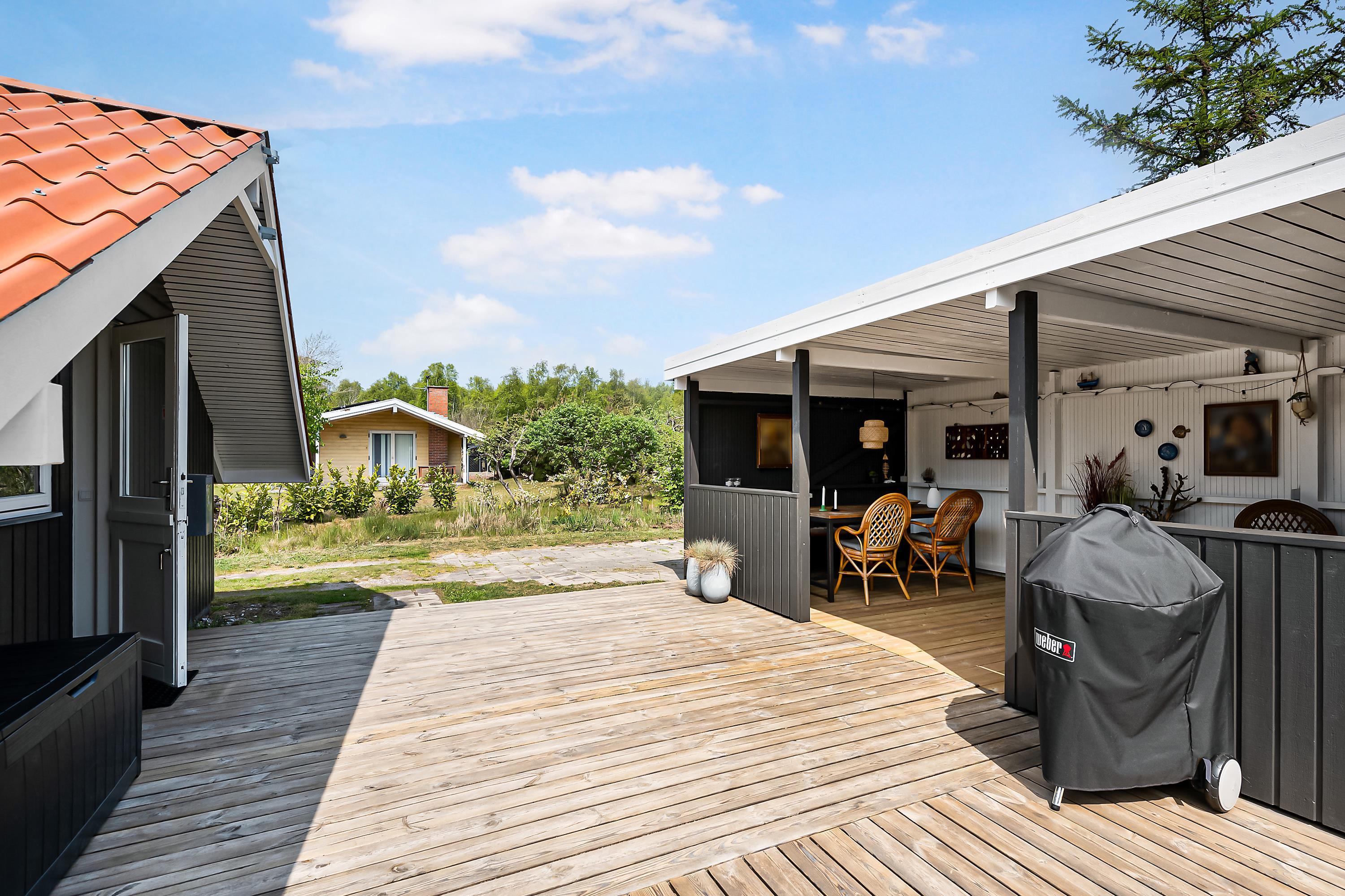 Renoviertes Ferienhaus auf einem ungestörten Naturgrundstück im schönen Ferienhausgebiet bei Øer Strand, nur 250 Meter von Dünen und einem kinderfreundlichen Strand entfernt. Ein traditionelles und sehr gemütliches Haus. Das Ferienhaus ist von einer großen, schönen, teilweise überdachten Holzterrasse mit Gartenmöbeln und Grill umgeben, auf der Sie von morgens bis abends die Sonne genießen können.