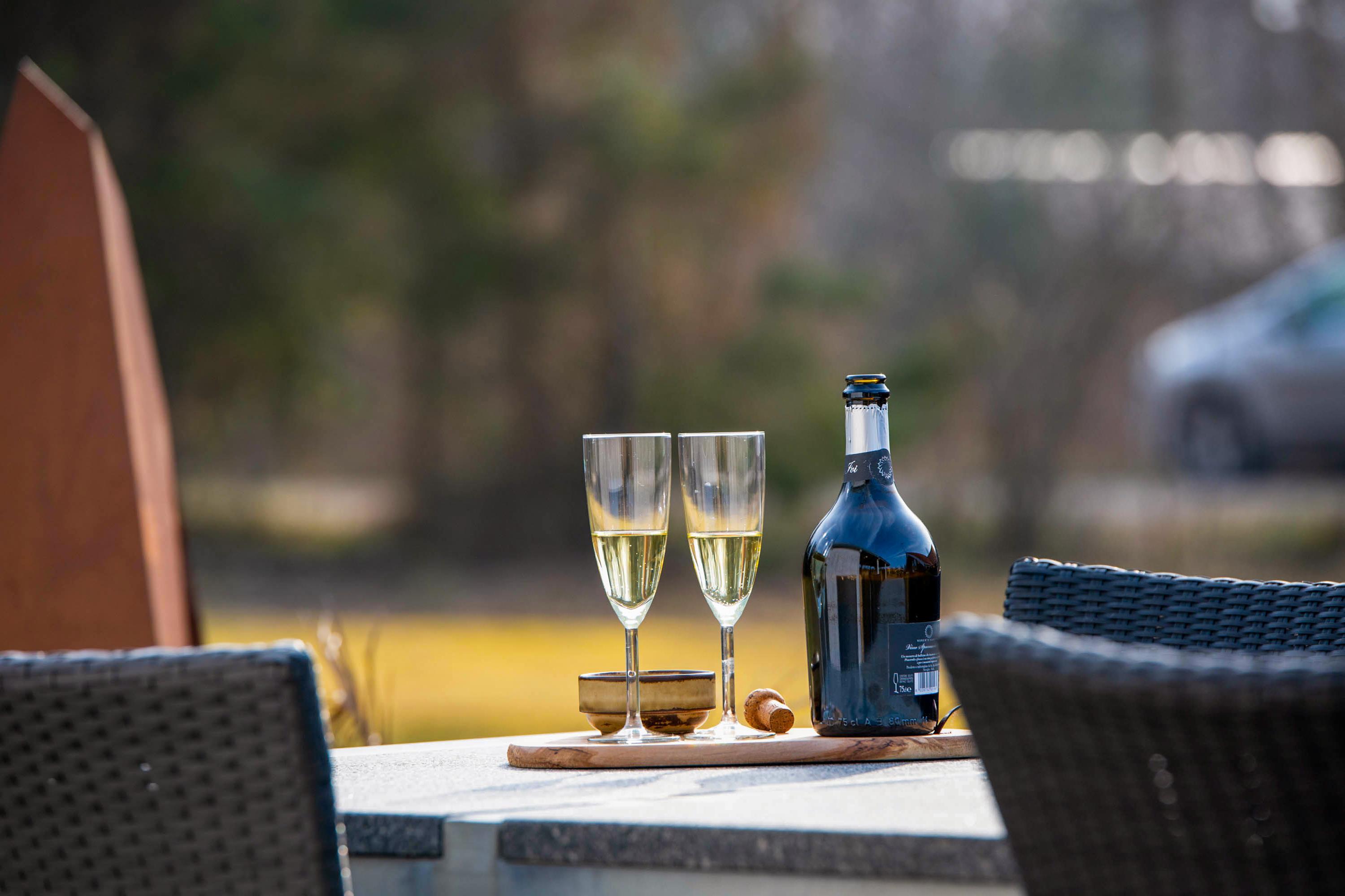 Der gemütliche neu gebaute Loungebereich lädt Sie ein, die Mahlzeiten des Tages oder einfach nur ein Glas zu genießen.