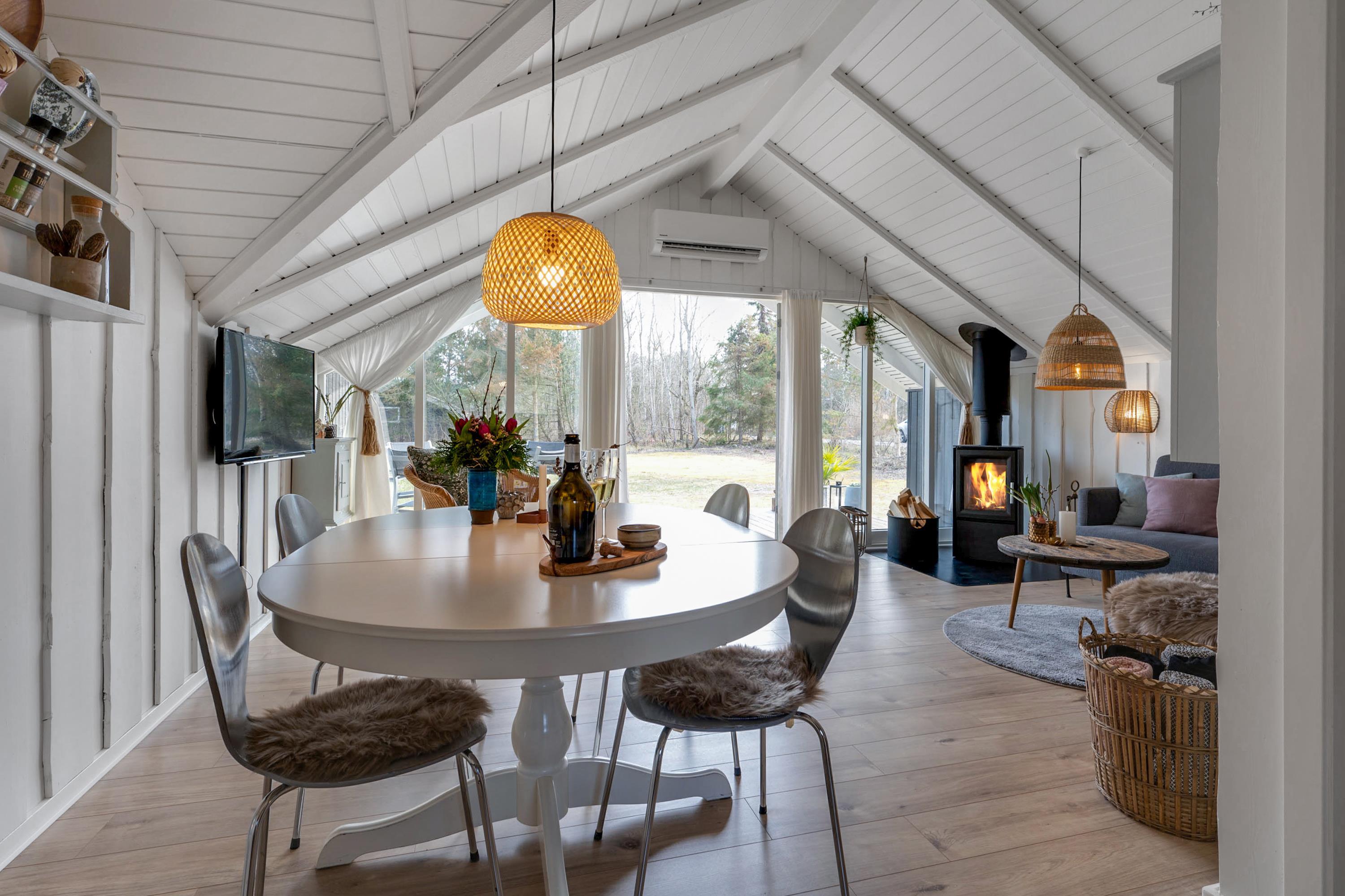 Gemütliches Ferienhaus nahe Øer Strand mit Terrasse, Kaminofen und WLAN, ideal für Natur- und Strandliebhaber.