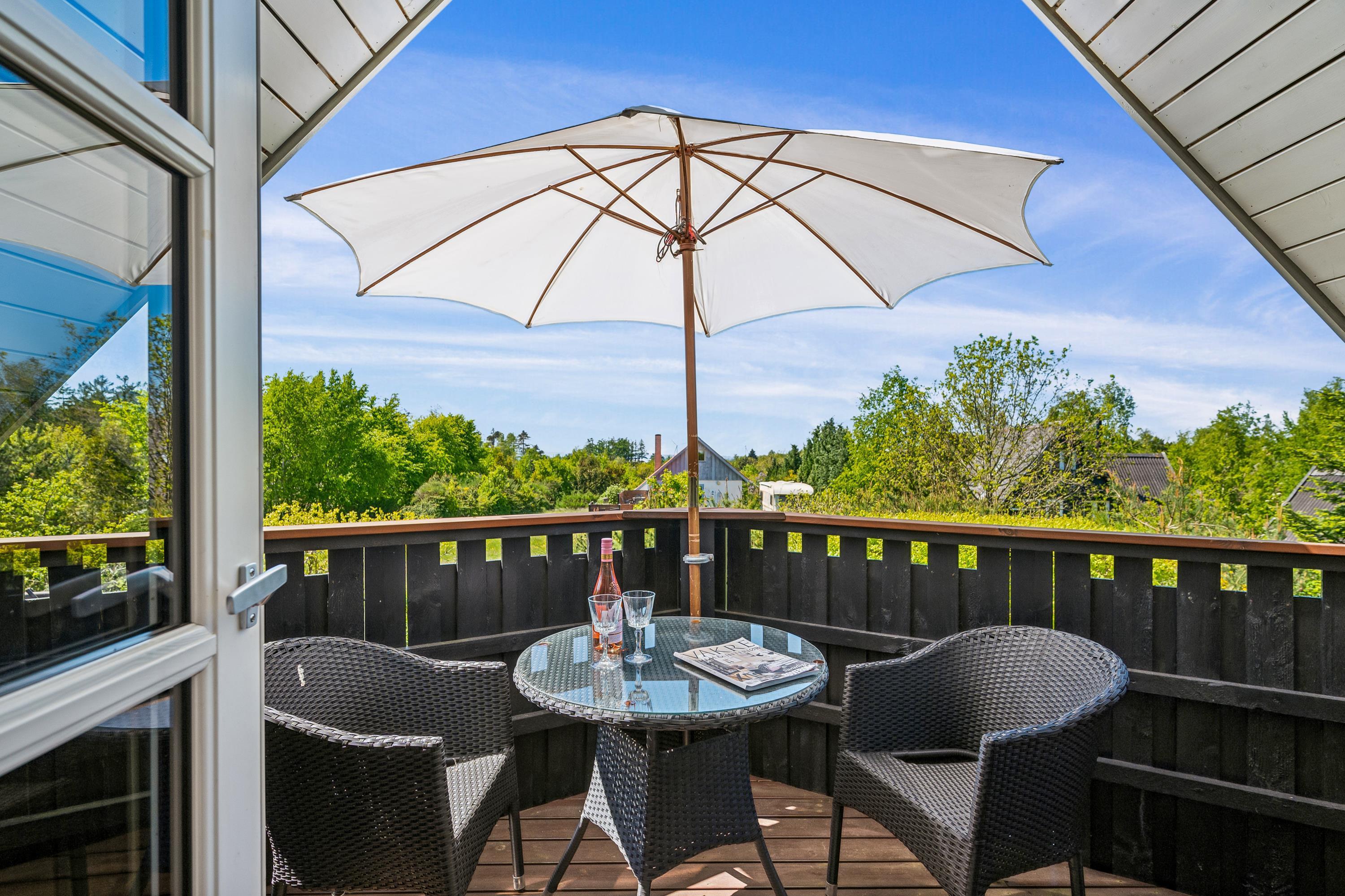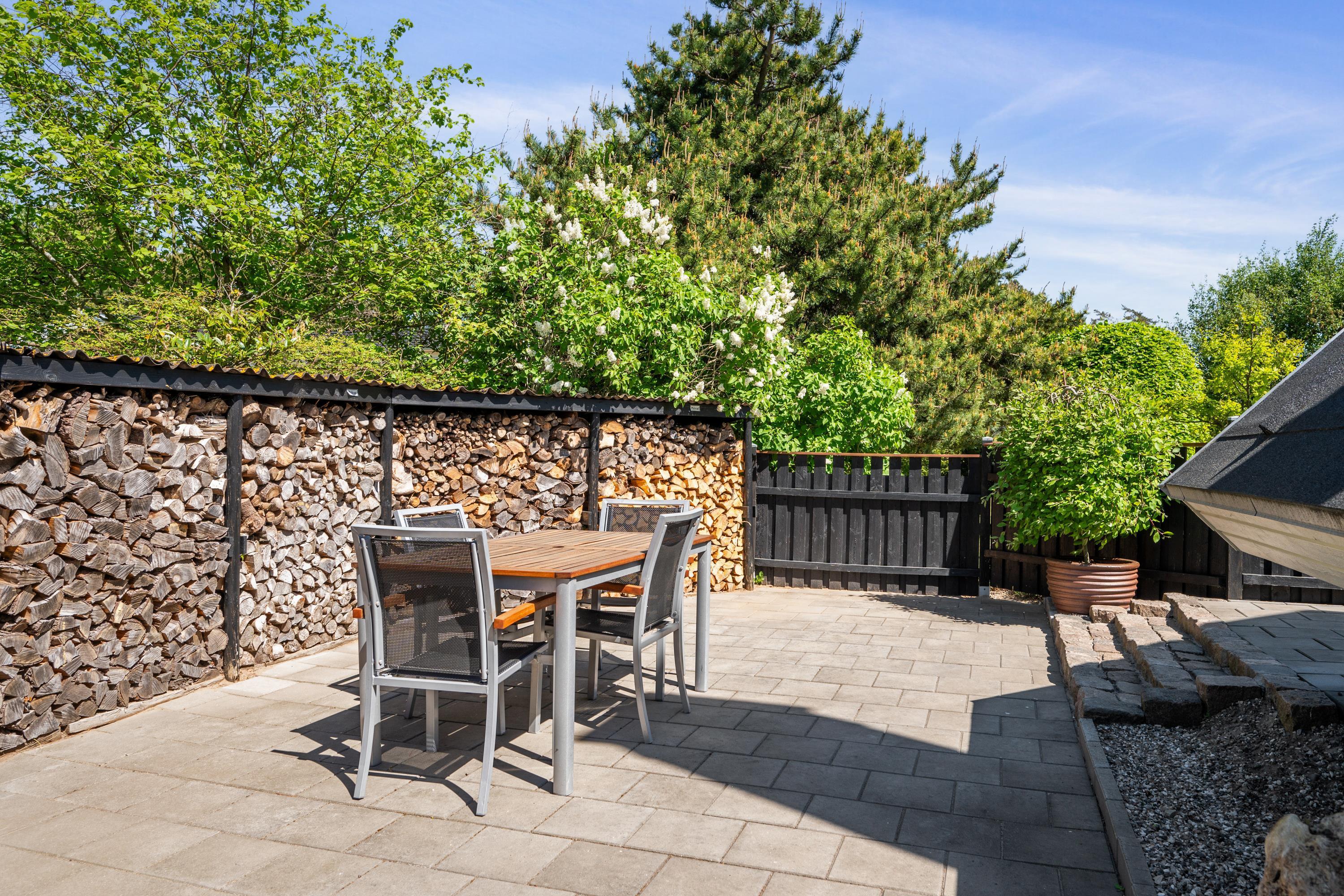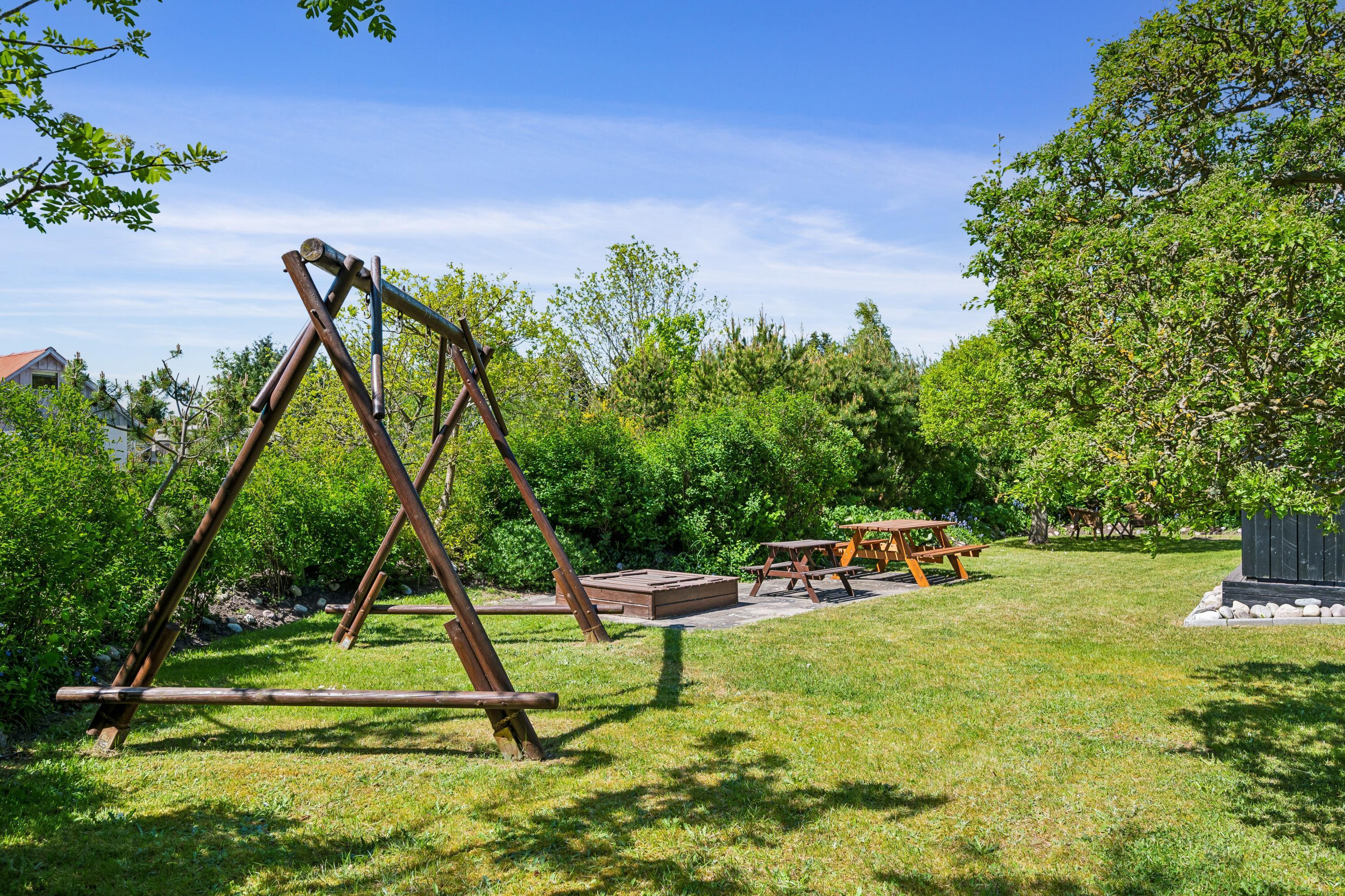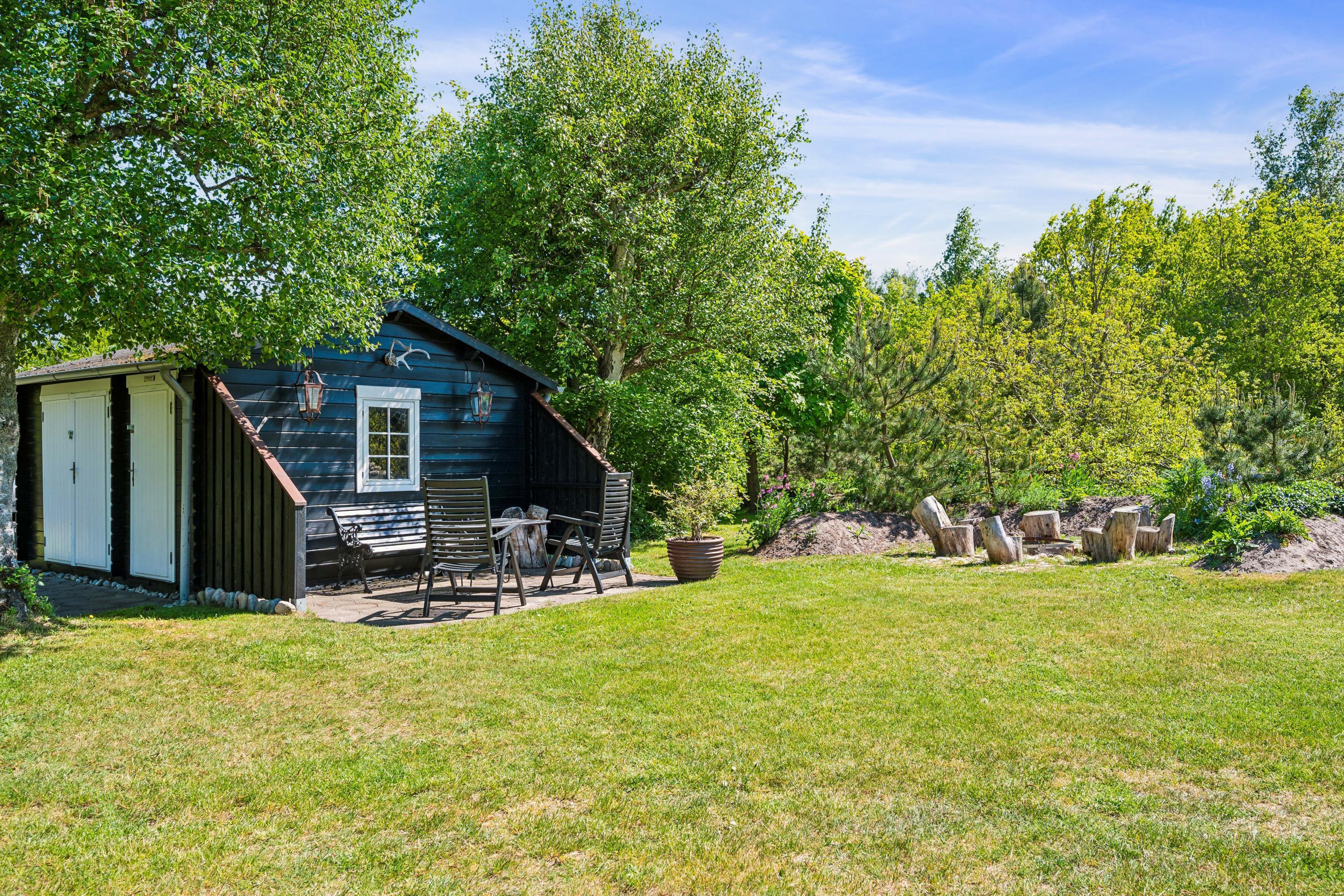 Nur zehn Autominuten von Ebeltoft entfernt finden Sie dieses sehr gemütliche und gepflegte Ferienhaus. Das Ferienhaus erstreckt sich über zwei Ebenen und in der unteren Etage finden Sie ein wirklich gemütliches Wohnzimmer, ausgestattet mit guten Möbeln, Holzofen und Wärmepumpe. Vom Wohnzimmer aus haben Sie direkten Zugang zu einer der Terrassen des Hauses mit guten Gartenmöbeln. In Verbindung mit dem Wohnzimmer finden Sie die kleinere, aber gut funktionierende Küche, unter anderem mit einer Spülmaschine. Gemütliches Zimmer mit zwei Einzelbetten und einem schönen Badezimmer mit Dusche. Vom Wohnzimmer führt eine Treppe in den ersten Stock. Dort finden Sie ein Schlafzimmer mit Doppelbett und ein Zimmer mit Einzelbett. Von hier aus gibt es Zugang zu einer kleinen Terrasse, von der Sie den schönsten Blick auf die Landschaft haben. Im Außenbereich finden Sie mehrere schöne Terrassen mit Gartenmöbeln, Liegestühlen und Sonnenschirmen. Das Ferienhaus liegt auf einem wirklich schönen und gepflegten Grundstück, wo es für die kleinen Urlauber einen Sandkasten und eine Schaukel gibt. Hier gibt es auch ein schönes Lagerfeuer, sodass Sie sich an einem warmen Sommerabend um das Feuer versammeln und Drehbrot zubereiten können.