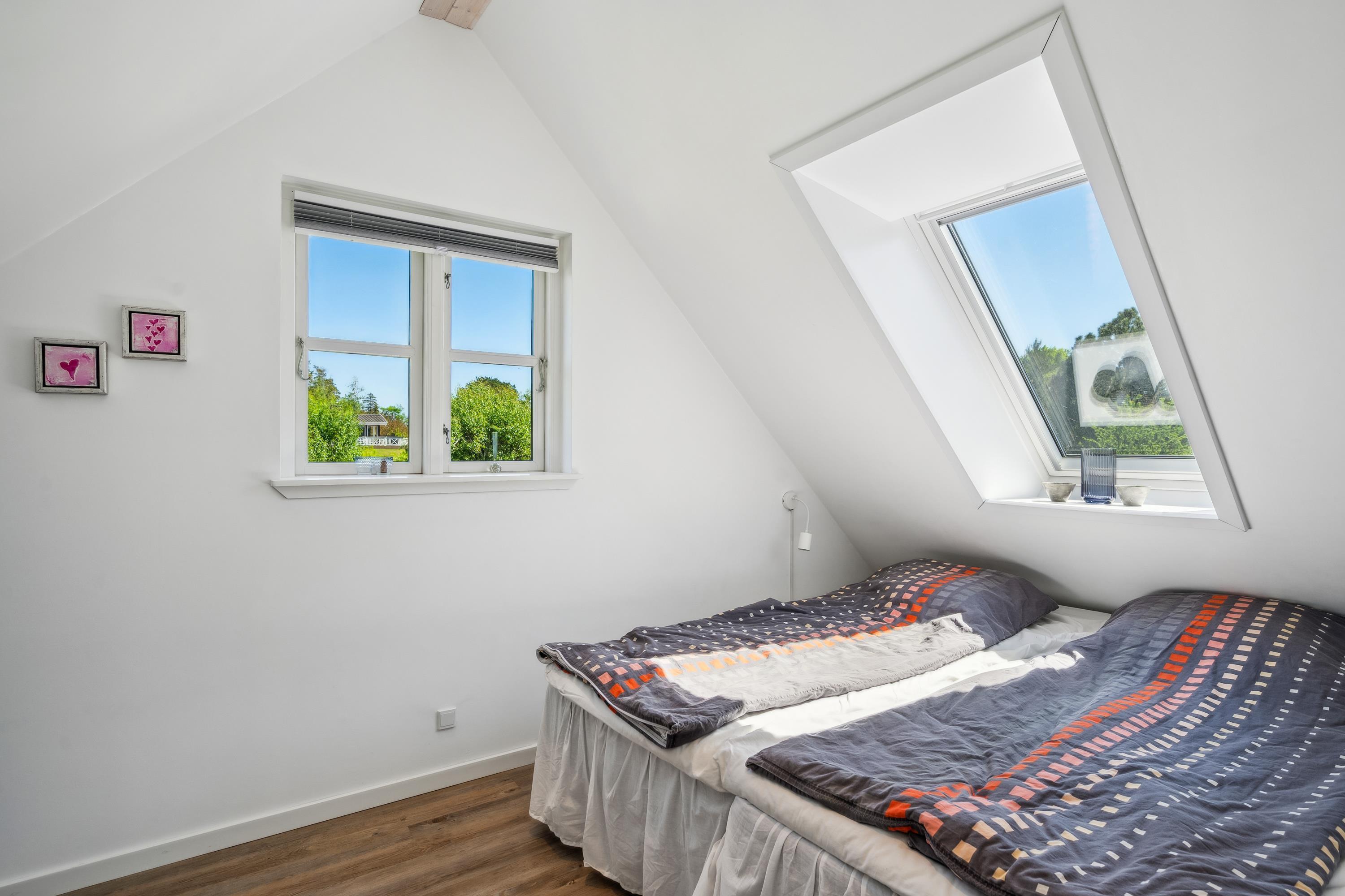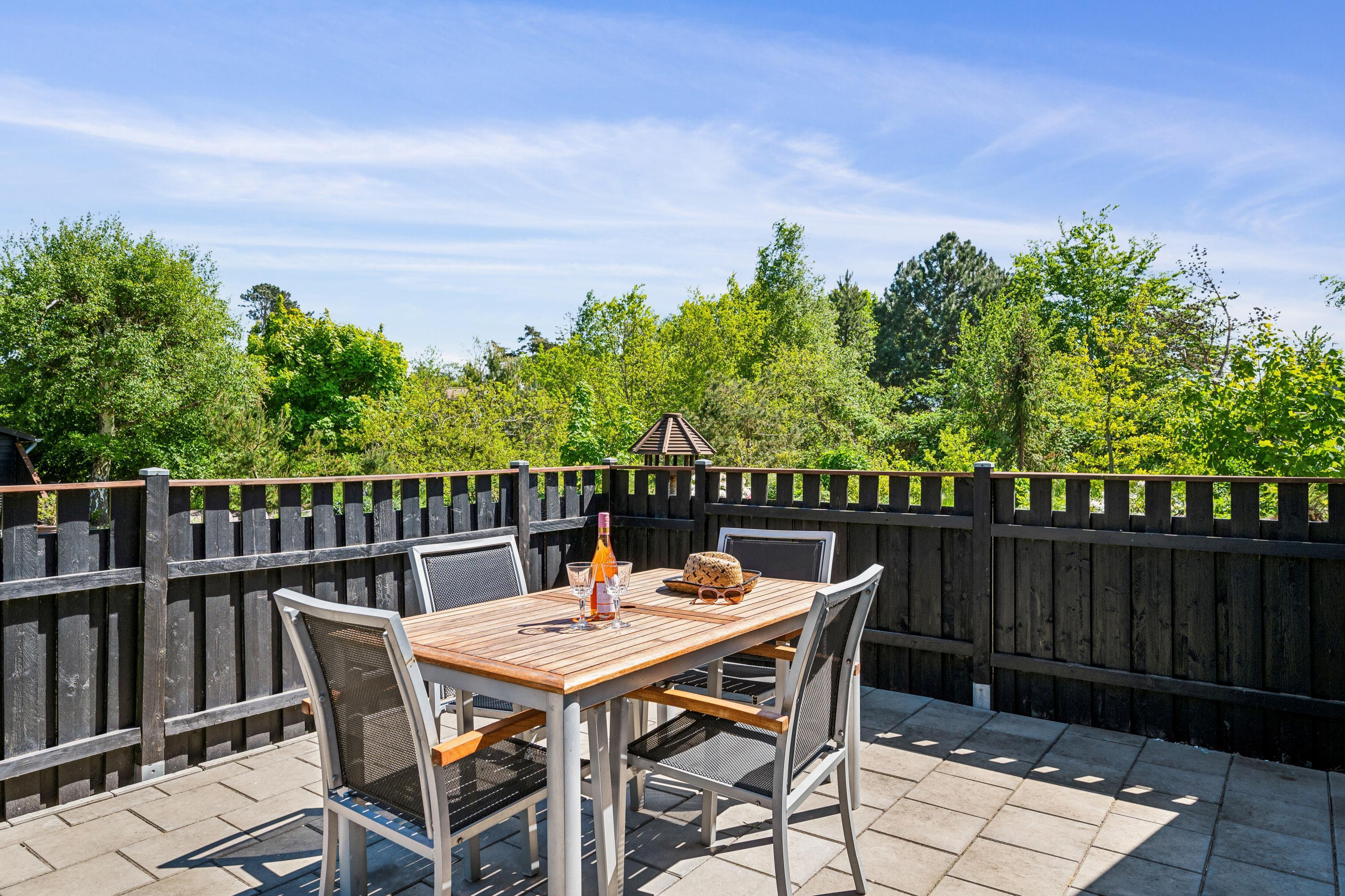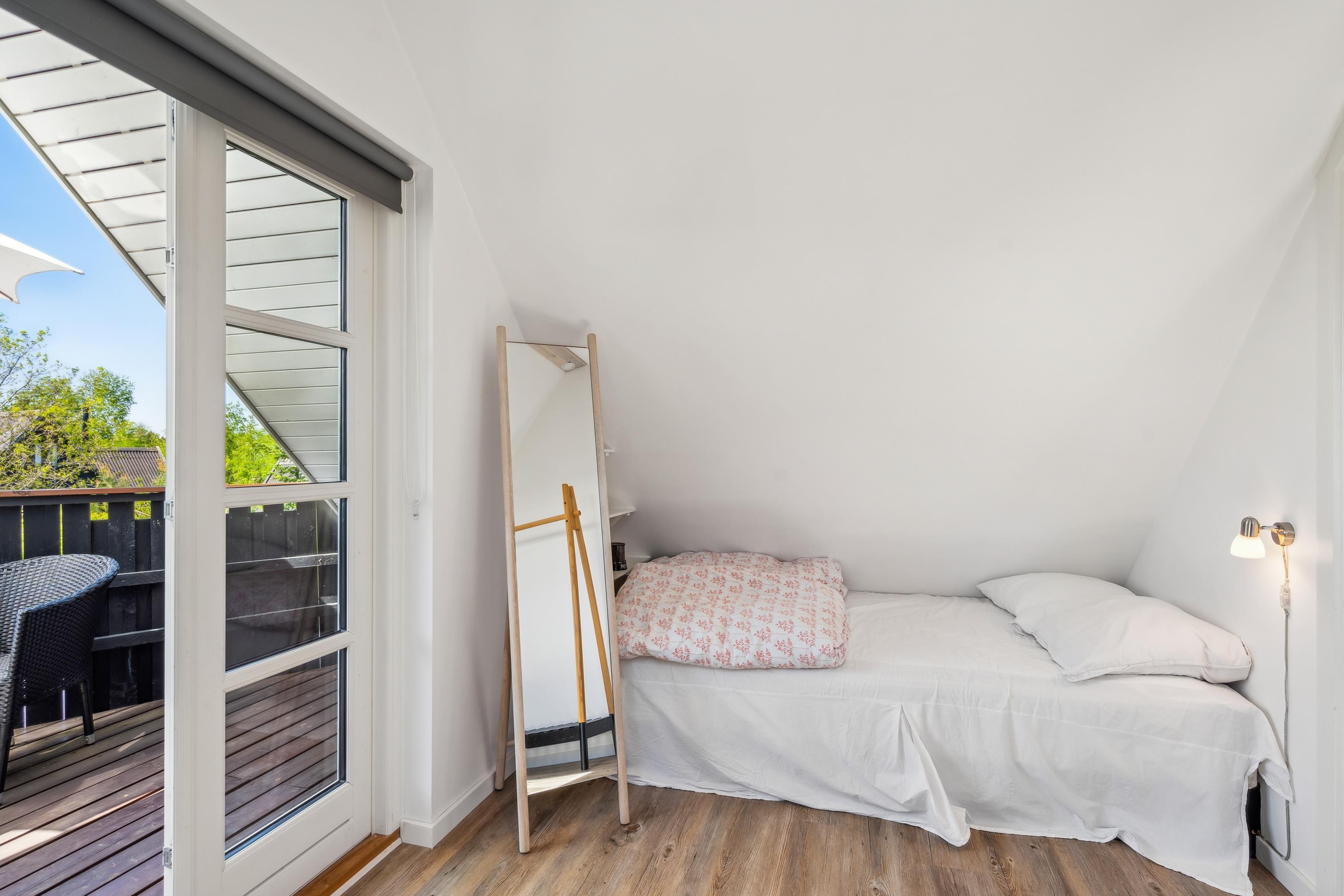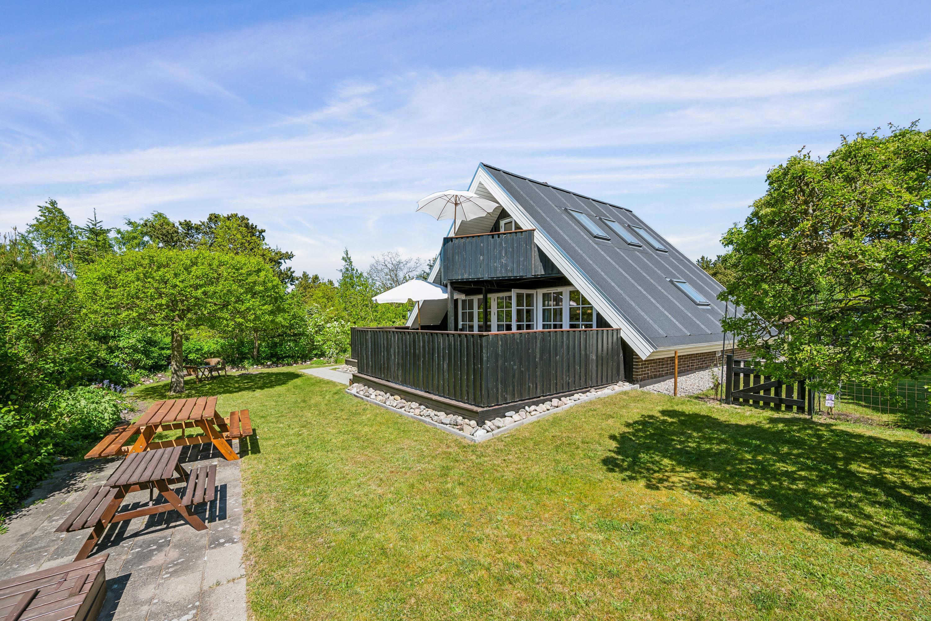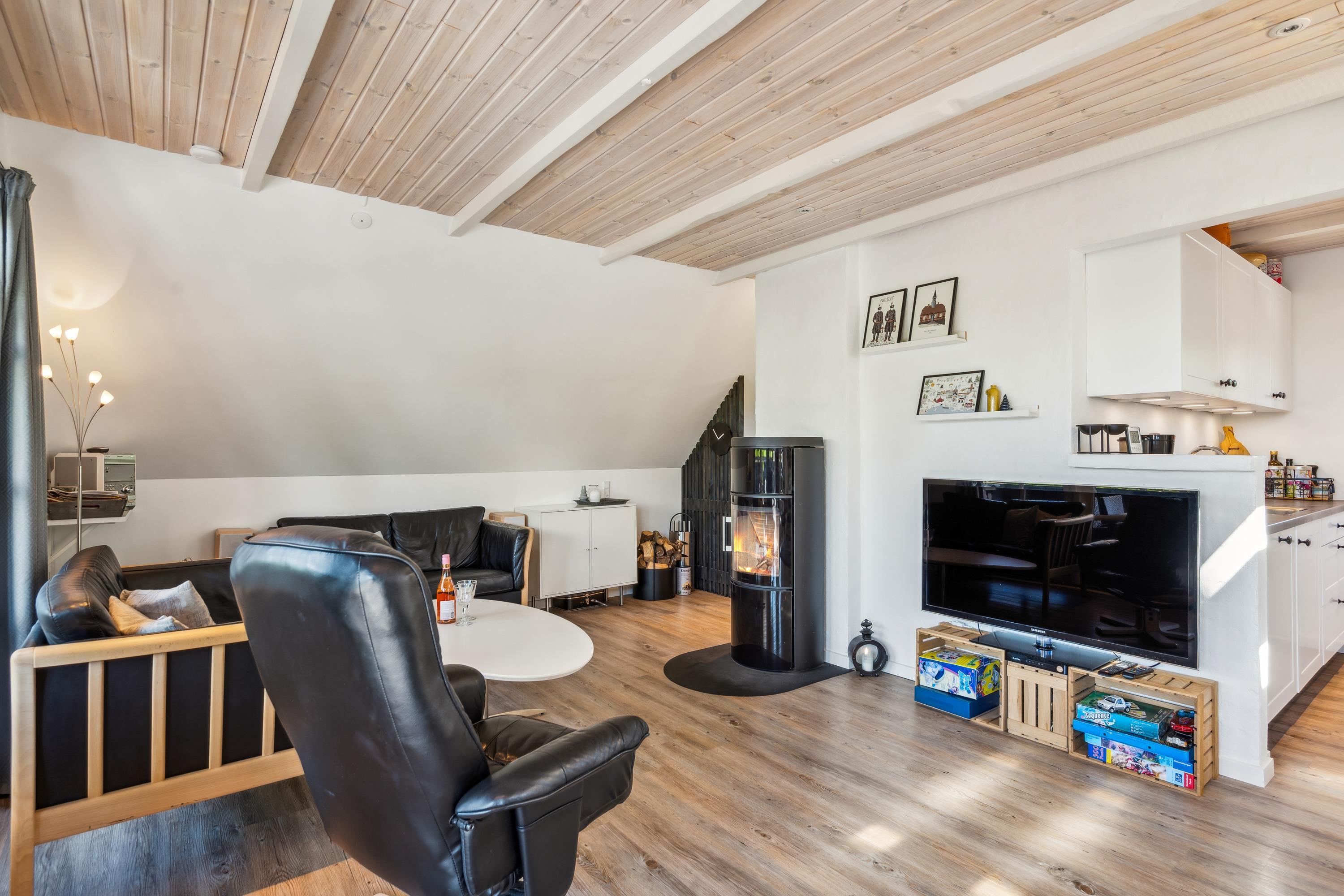 Nur zehn Autominuten von Ebeltoft entfernt finden Sie dieses sehr gemütliche und gepflegte Ferienhaus. Das Ferienhaus erstreckt sich über zwei Ebenen und in der unteren Etage finden Sie ein wirklich gemütliches Wohnzimmer, ausgestattet mit guten Möbeln, Holzofen und Wärmepumpe. Vom Wohnzimmer aus haben Sie direkten Zugang zu einer der Terrassen des Hauses mit guten Gartenmöbeln. In Verbindung mit dem Wohnzimmer finden Sie die kleinere, aber gut funktionierende Küche, unter anderem mit einer Spülmaschine. Gemütliches Zimmer mit zwei Einzelbetten und einem schönen Badezimmer mit Dusche. Vom Wohnzimmer führt eine Treppe in den ersten Stock. Dort finden Sie ein Schlafzimmer mit Doppelbett und ein Zimmer mit Einzelbett. Von hier aus gibt es Zugang zu einer kleinen Terrasse, von der Sie den schönsten Blick auf die Landschaft haben. Im Außenbereich finden Sie mehrere schöne Terrassen mit Gartenmöbeln, Liegestühlen und Sonnenschirmen. Das Ferienhaus liegt auf einem wirklich schönen und gepflegten Grundstück, wo es für die kleinen Urlauber einen Sandkasten und eine Schaukel gibt. Hier gibt es auch ein schönes Lagerfeuer, sodass Sie sich an einem warmen Sommerabend um das Feuer versammeln und Drehbrot zubereiten können.