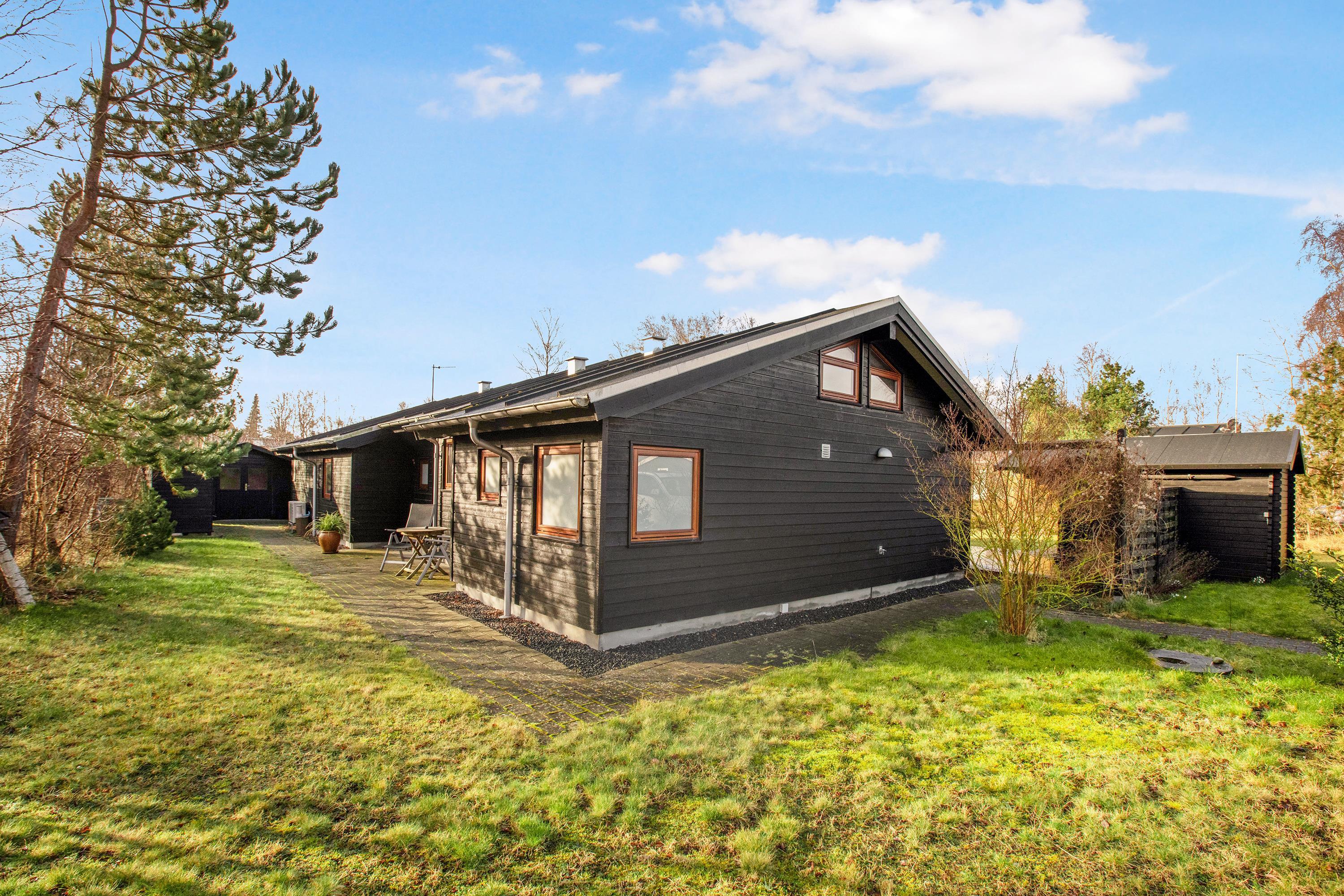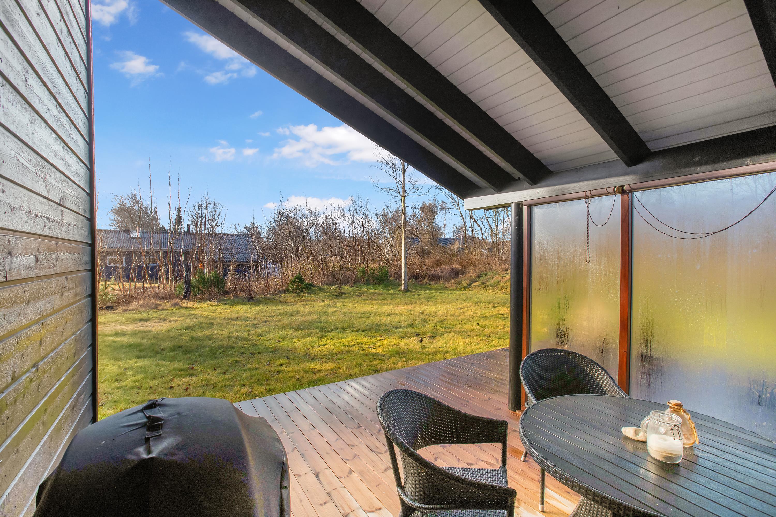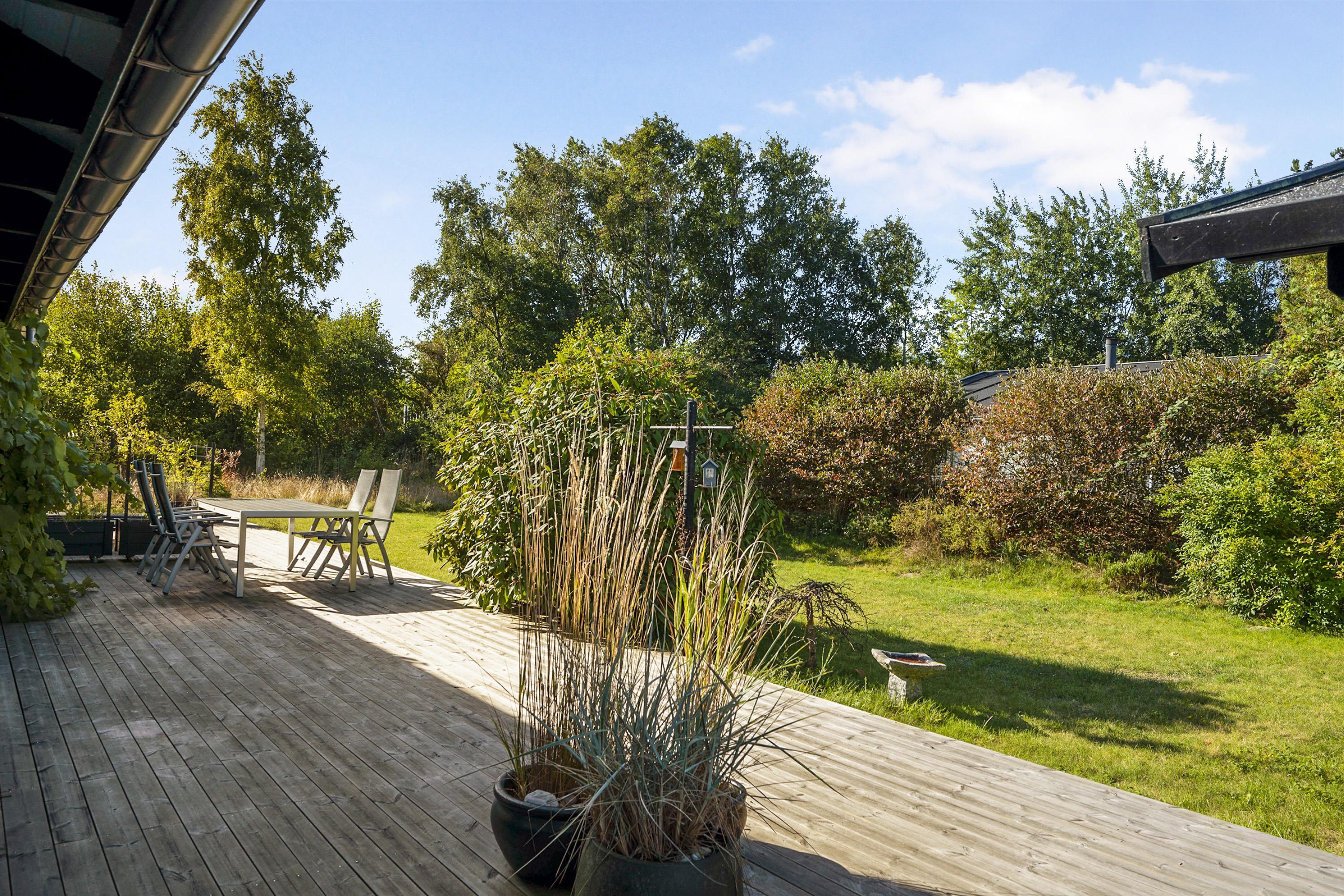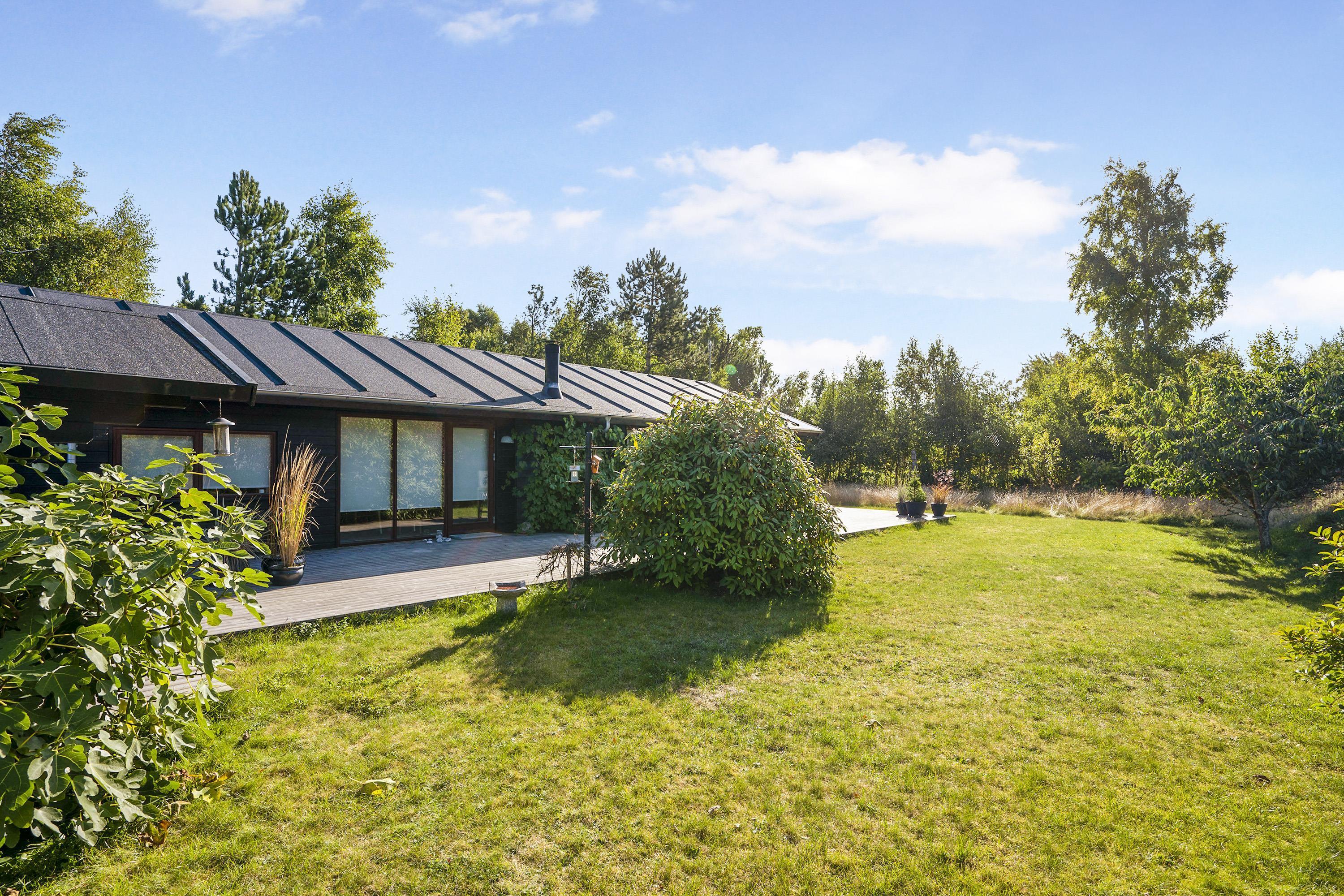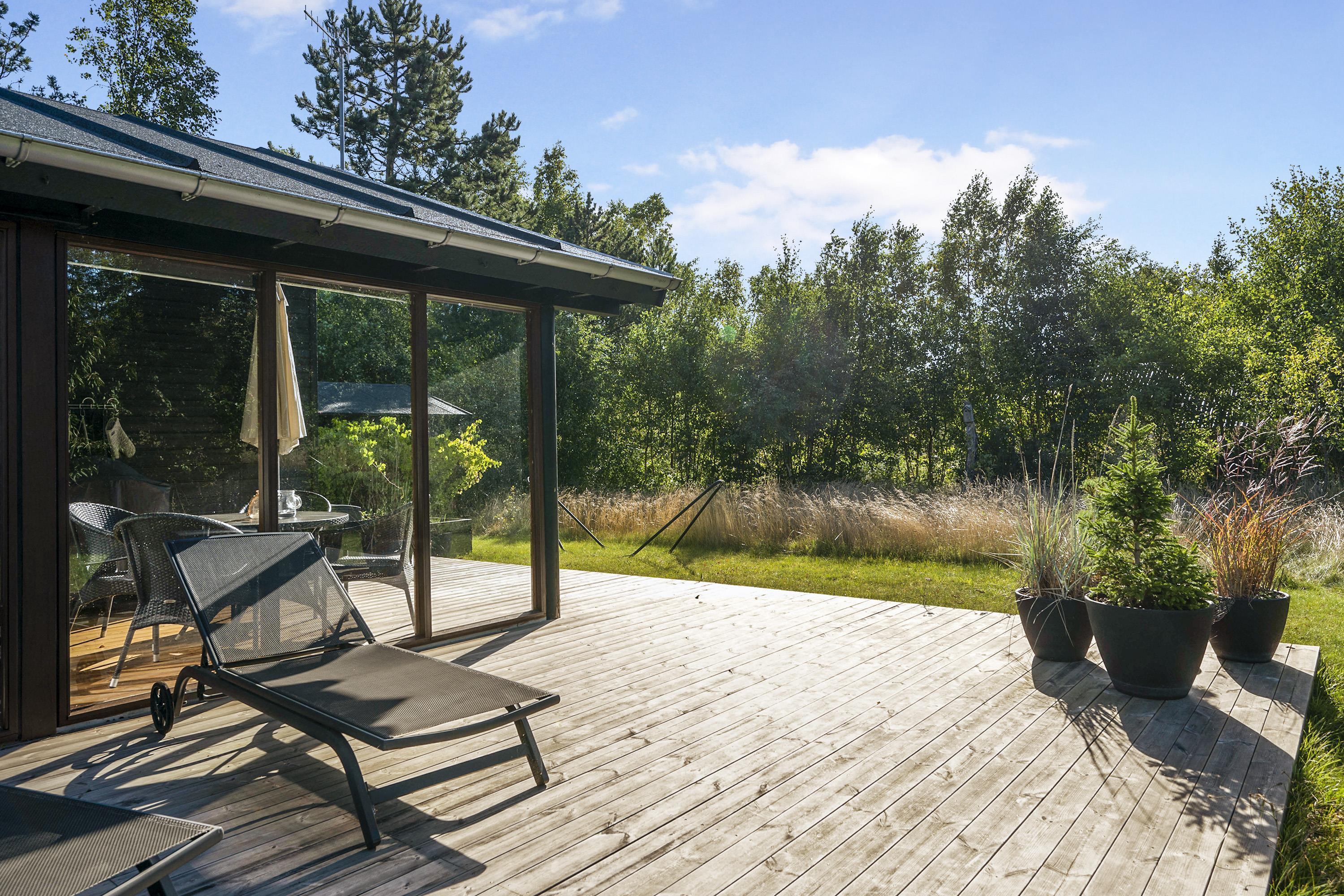 Modernes, gepflegtes Ferienhaus nahe Øer Strand mit Sauna, Terrasse und Naturgrundstück für entspannte Urlaubstage.