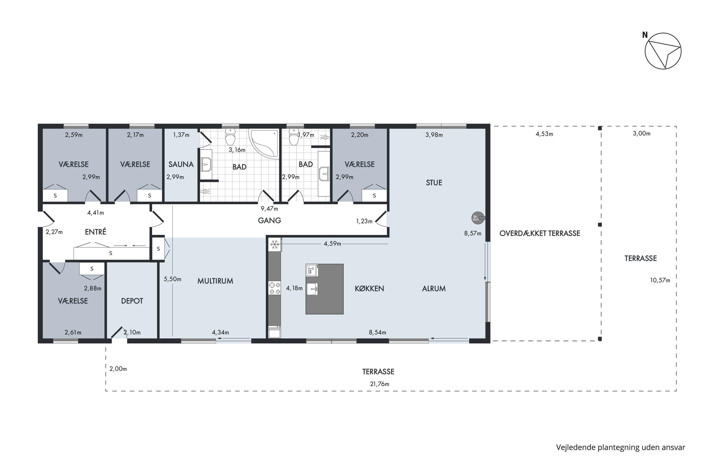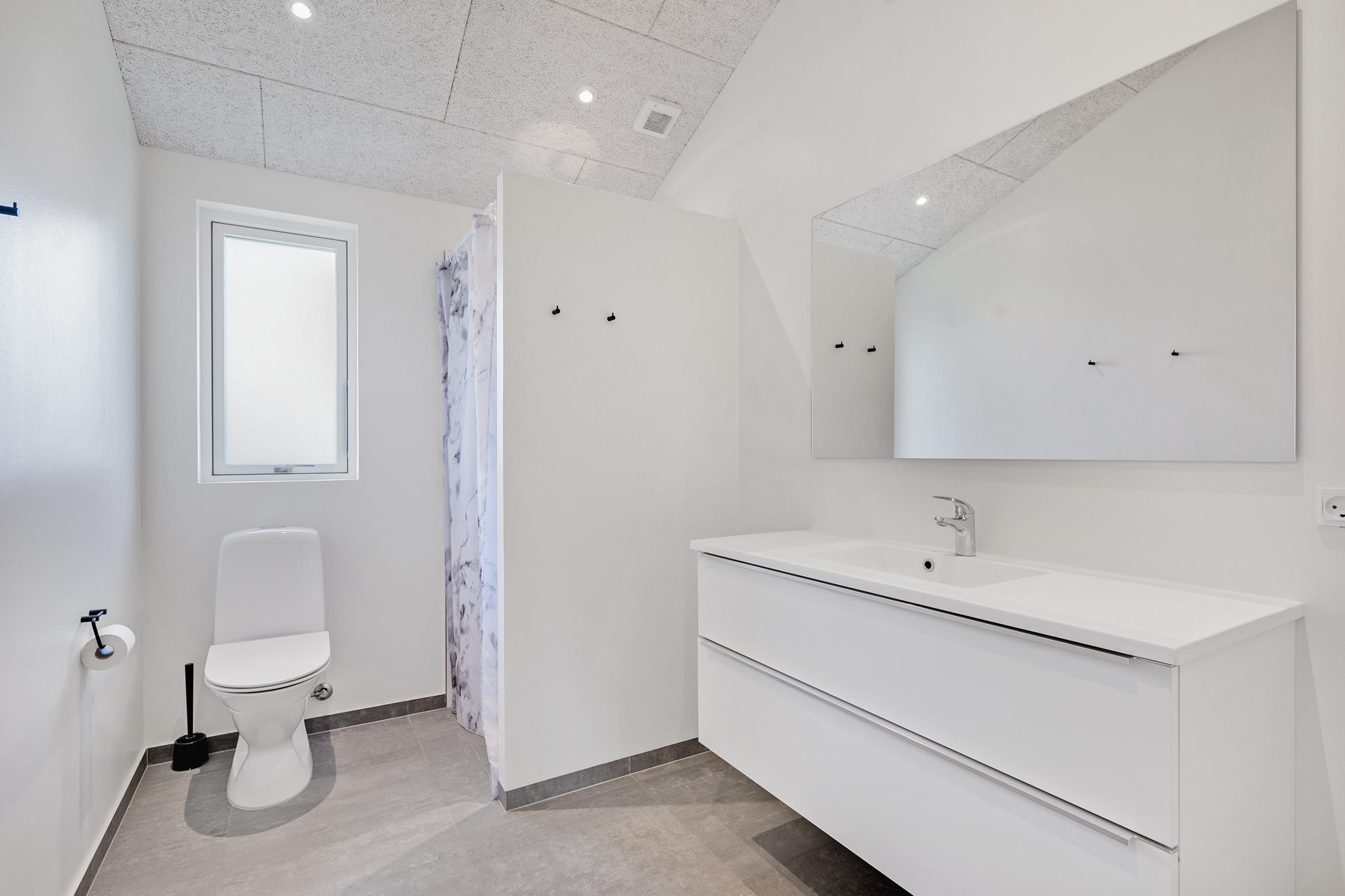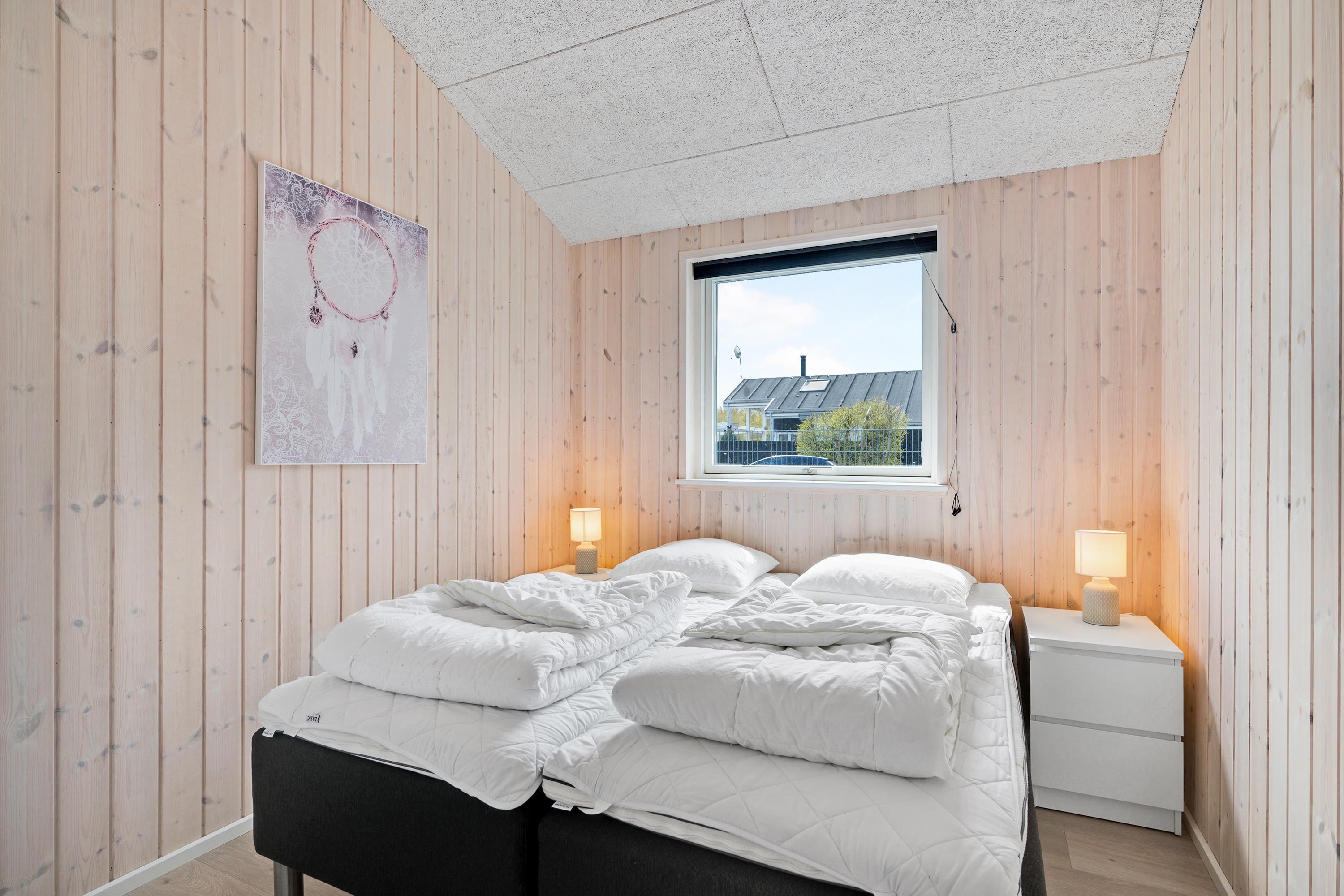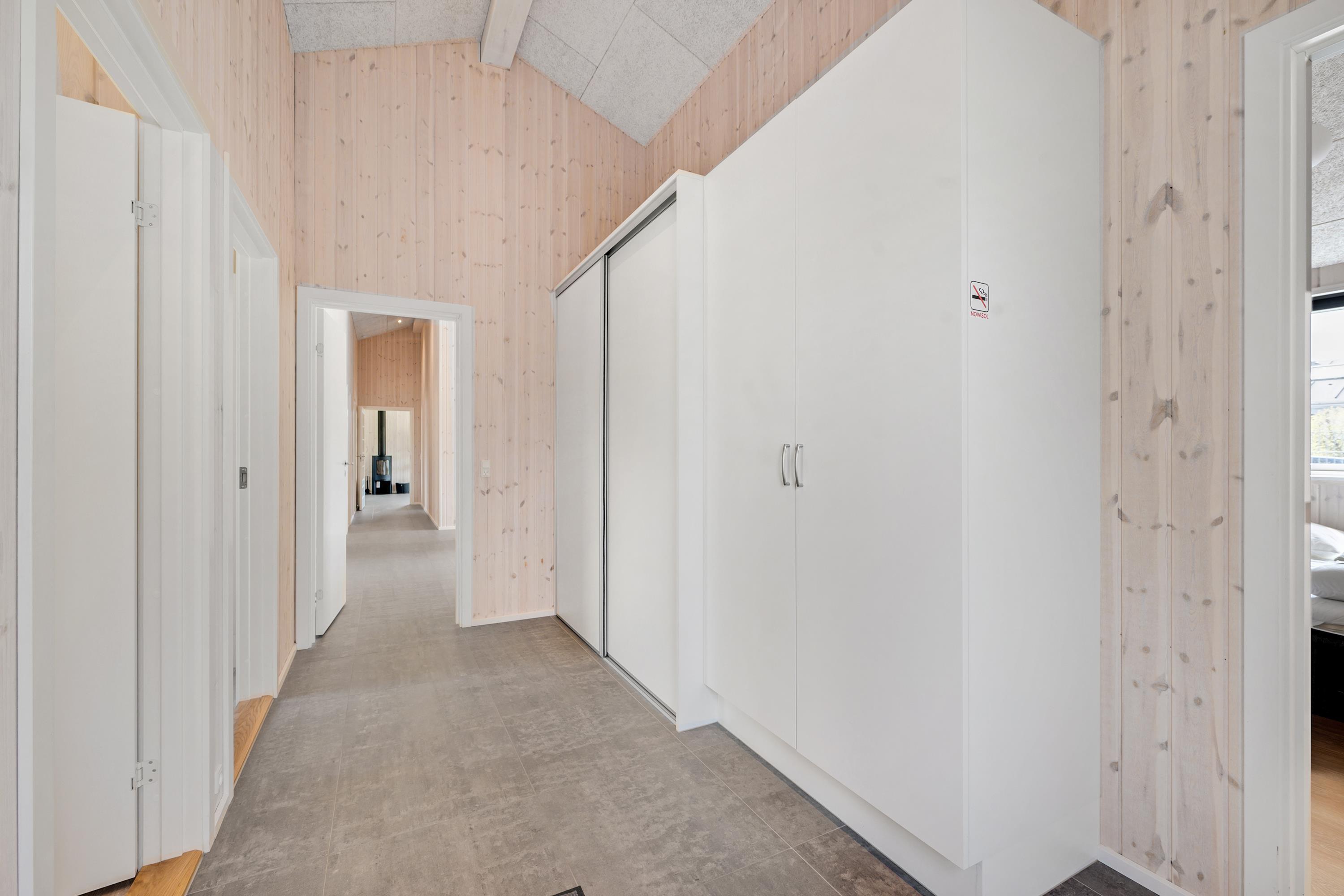 Die bis zum Dachfirst hin offene Bauweise sorgt für ein großzügiges und helles Raumgefühl. Das große Wohnzimmer mit Panoramafenstern und Zugang zur Terrasse liegt in offener Verbindung zur Küche. Es ist mit Essplatz für acht Personen, Kaminofen, schönem Sofabereich und TV mit dänischen (inkl. TV2) und deutschen Programmen ausgestattet. Schicke und gut eingerichtete Küche mit Induktionskochfeld, Backofen, Kühl-/Gefrierkombination, Geschirrspüler und Mikrowelle. Großer Aktivitäts-/Mehrzweckraum mit Billardtisch und Tischfußballspiel. Die acht Schlafplätze verteilen sich auf vier schöne, helle Schlafzimmer– zwei mit Doppelbett und zwei mit jeweils zwei Einzelbetten. Schickes, großes Badezimmer mit Dusche, Whirlpool und Sauna sowie ein etwas kleineres Badezimmer mit Dusche. Beide sind mit Fußbodenheizung ausgestattet. Im großen Eingangsbereich stehen eine Waschmaschine und ein Trockner. Internetzugang.