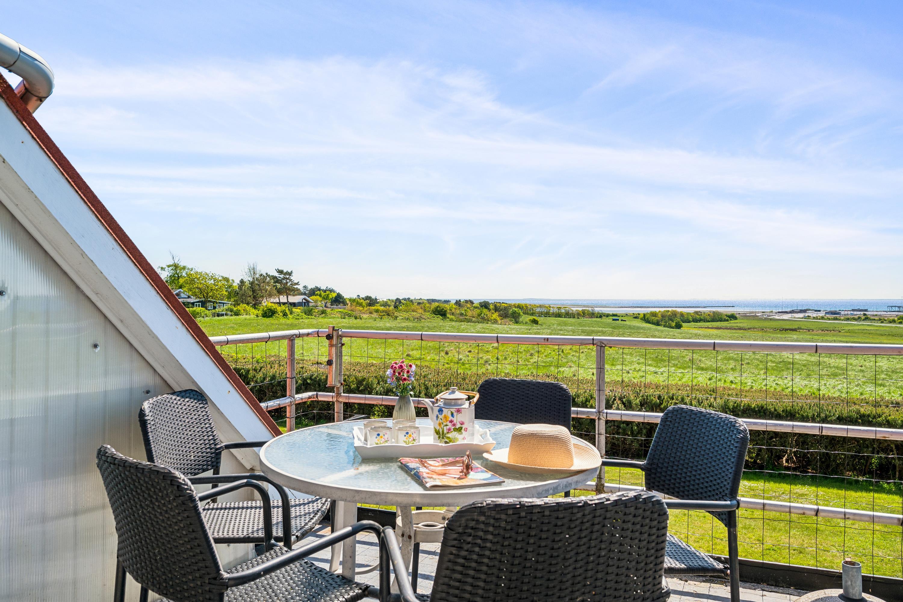 Helle Ferienwohnung mit Balkon und Panoramablick auf das Kattegat in Ebeltoft.