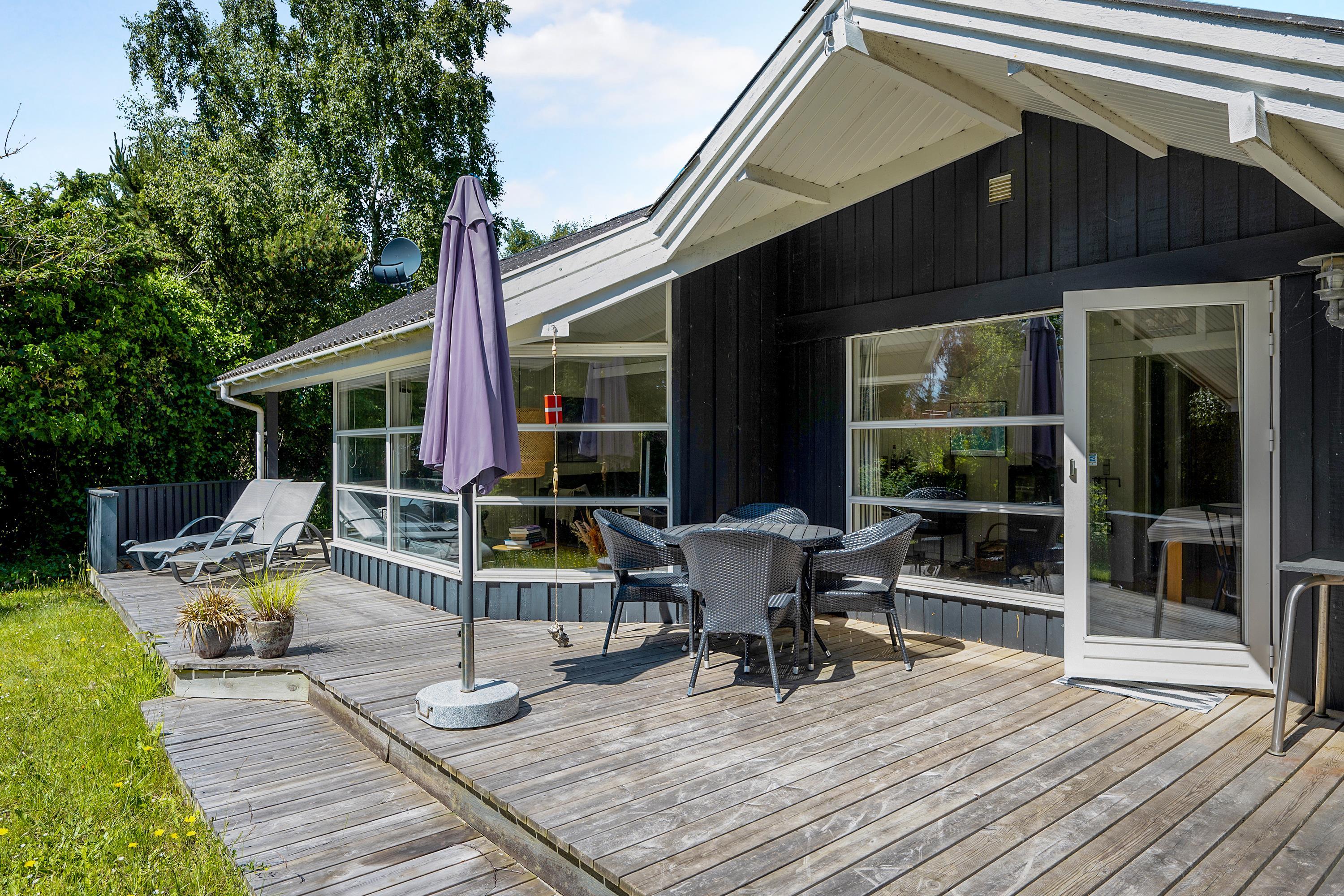 Dieses einladende und gemütliche Ferienhaus hat eine Wohnfläche von 77 m². Das geräumige Wohnzimmer mit Glaserker wurde 1995 angebaut. Die schönen, nach Süden und Westen gewandten und teilweise überdachten Holzterrassen sind mit Gartenmöbeln, Liegestühlen und Grill ausgestattet. Hier kann man die Sonne den ganzen Tag über genießen. Das bewachsene Grundstück bietet Schutz vor neugierigen Blicken, und für die Kleinsten ist eine Schaukel vorhanden.