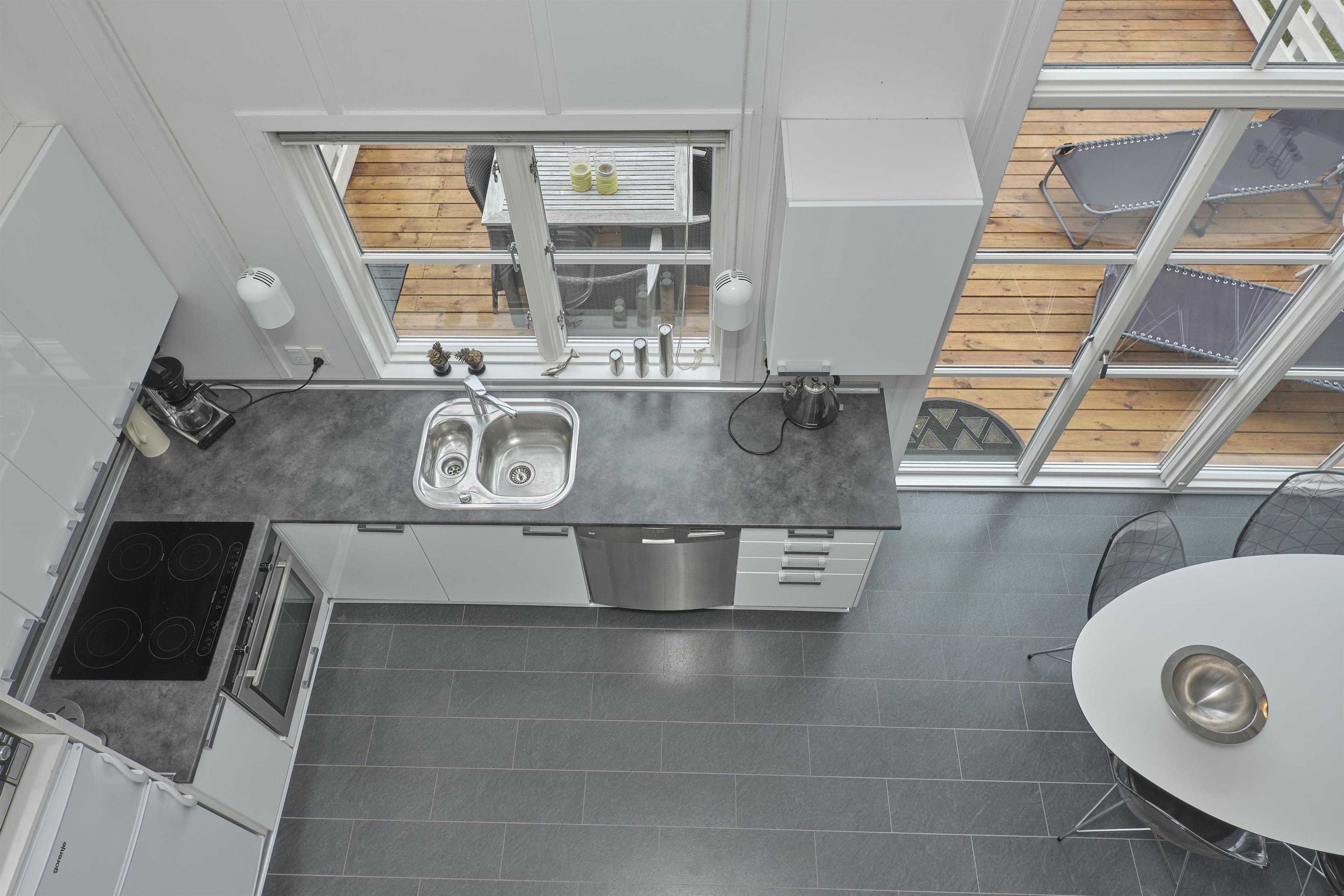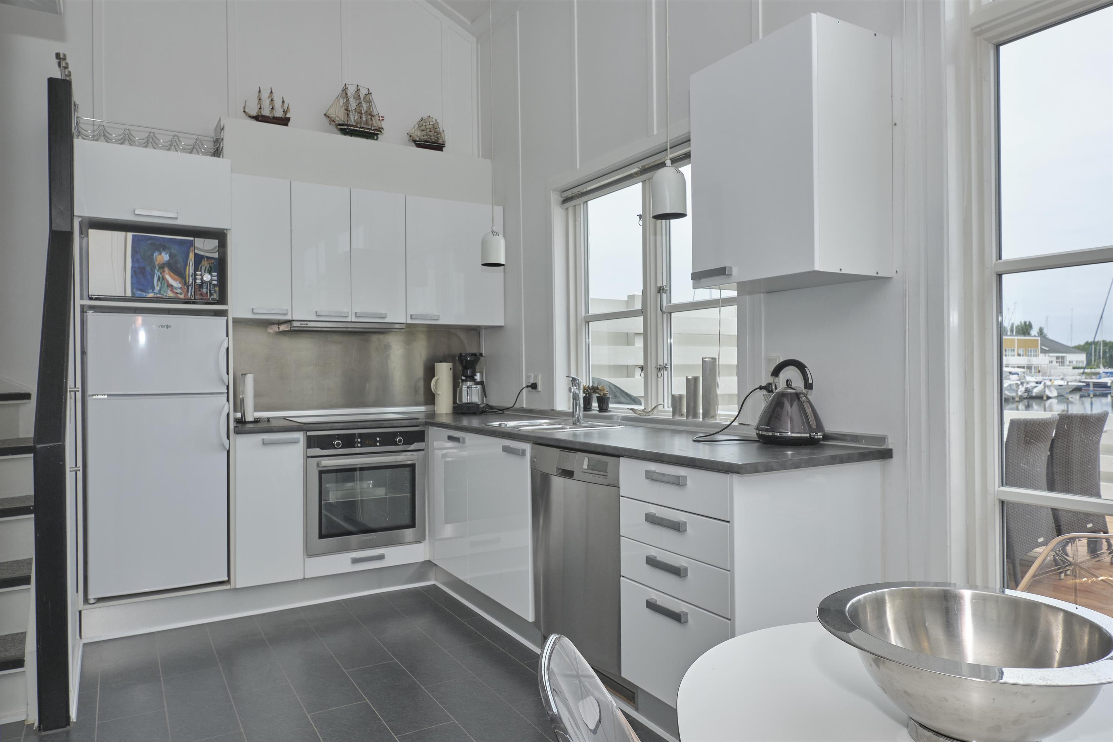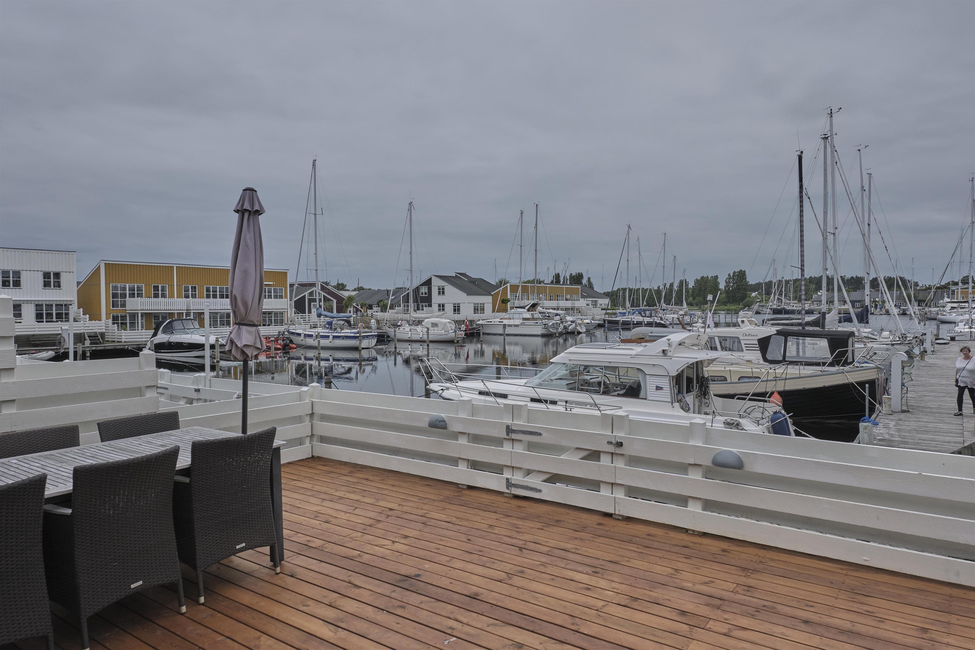 Geschmackvoll eingerichtete Ferienwohnung auf 2 Ebenen im malerischen Øer Maritime Ferieby. Von der Terrasse mit Gartenmöbeln und Grill sowie Küche und Badezimmer haben Sie einen Panoramablick über die Bootsplätze und die Umgebung. Schöne Holzterrasse mit Gartenmöbeln, Sonnenliegen, Sonnenschirm und Grill, sowie gemütlicher, gefliester Freisitz mit gutem Windschutz.