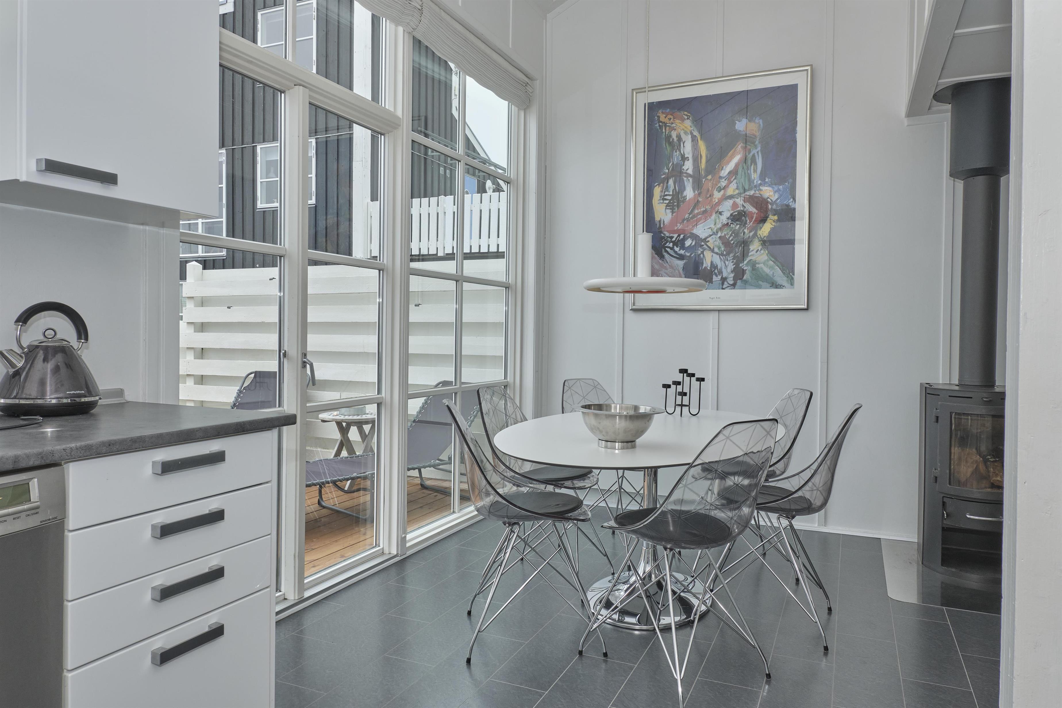 Helles und schönes Wohnzimmer mit Zugang zur Terrasse und in offener Verbindung mit Küche. Essecke für 5 Personen, großzügige Sofagarnitur, Holzofen, Fernseher mit dänischen (inkl. TV2) und deutschen Sendern, DVD-Player, CD-Player und Radio. Gut ausgestattete Küche mit Cerankochfeldern, Backofen, Kühl-/Gefrierschrank, Mikrowelle und Spülmaschine. Die Schlafplätze verteilen sich auf 2 Schlafzimmer im 1. Stock: 1 mit Doppelbett und 1 mit Etagenbett mit Doppelbett in der unteren Koje. Badezimmer mit Dusche, Fußbodenheizung und Waschmaschine. Internet (HINWEIS! Das Signal kann schwanken). Es gibt Zugang zum Schwimmbad, aber es ist kostenpflichtig und zur Sporthalle sowie die Möglichkeit, einen Liegeplatz direkt im Bootshafen zu mieten. Internetzugang (ACHTUNG! Signal kann schwanken).