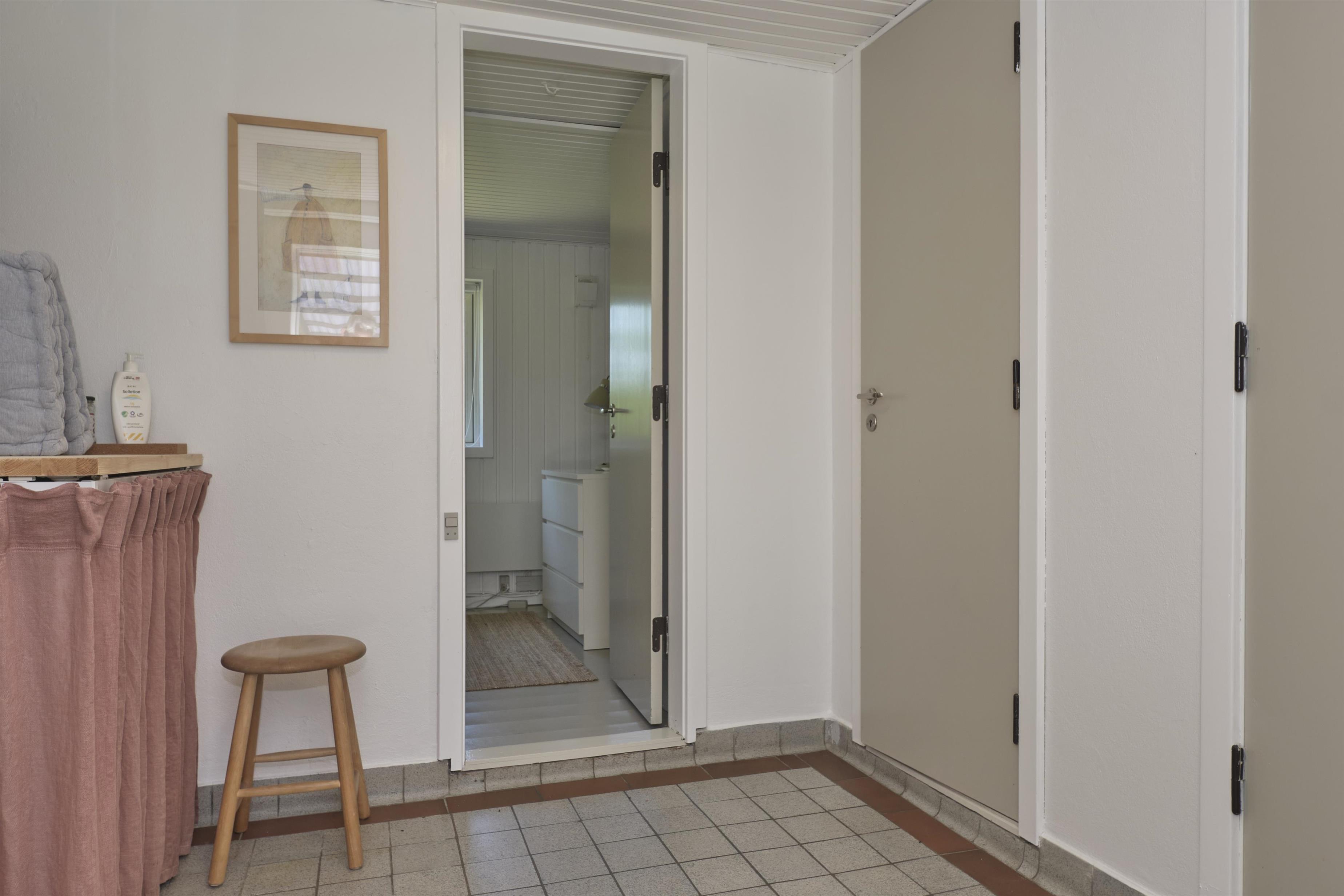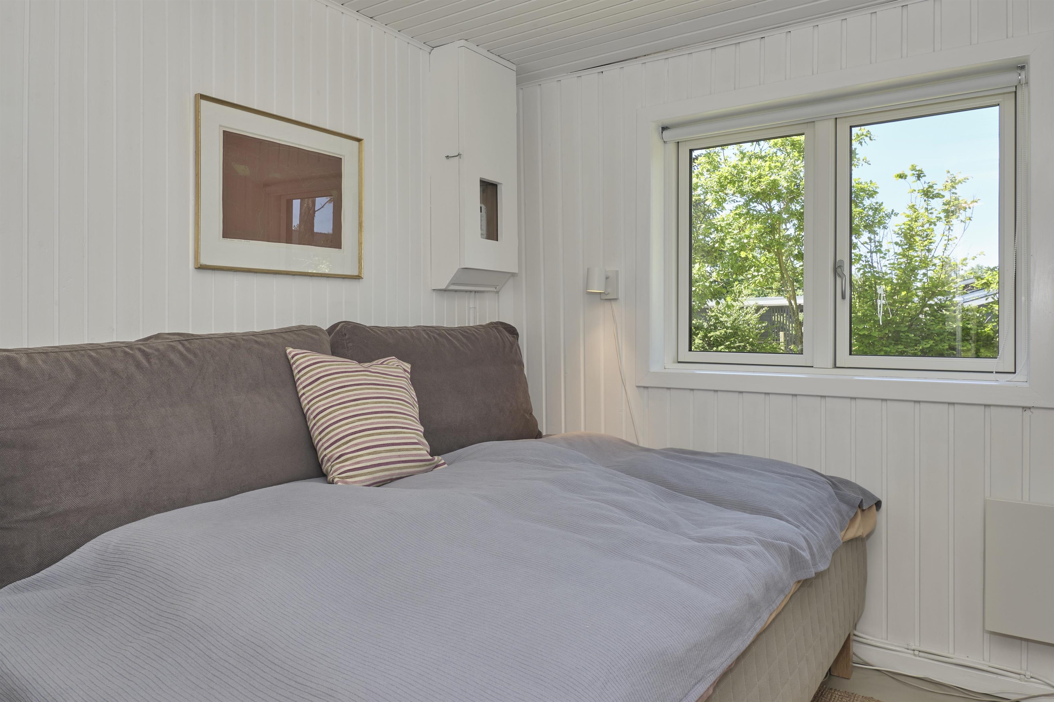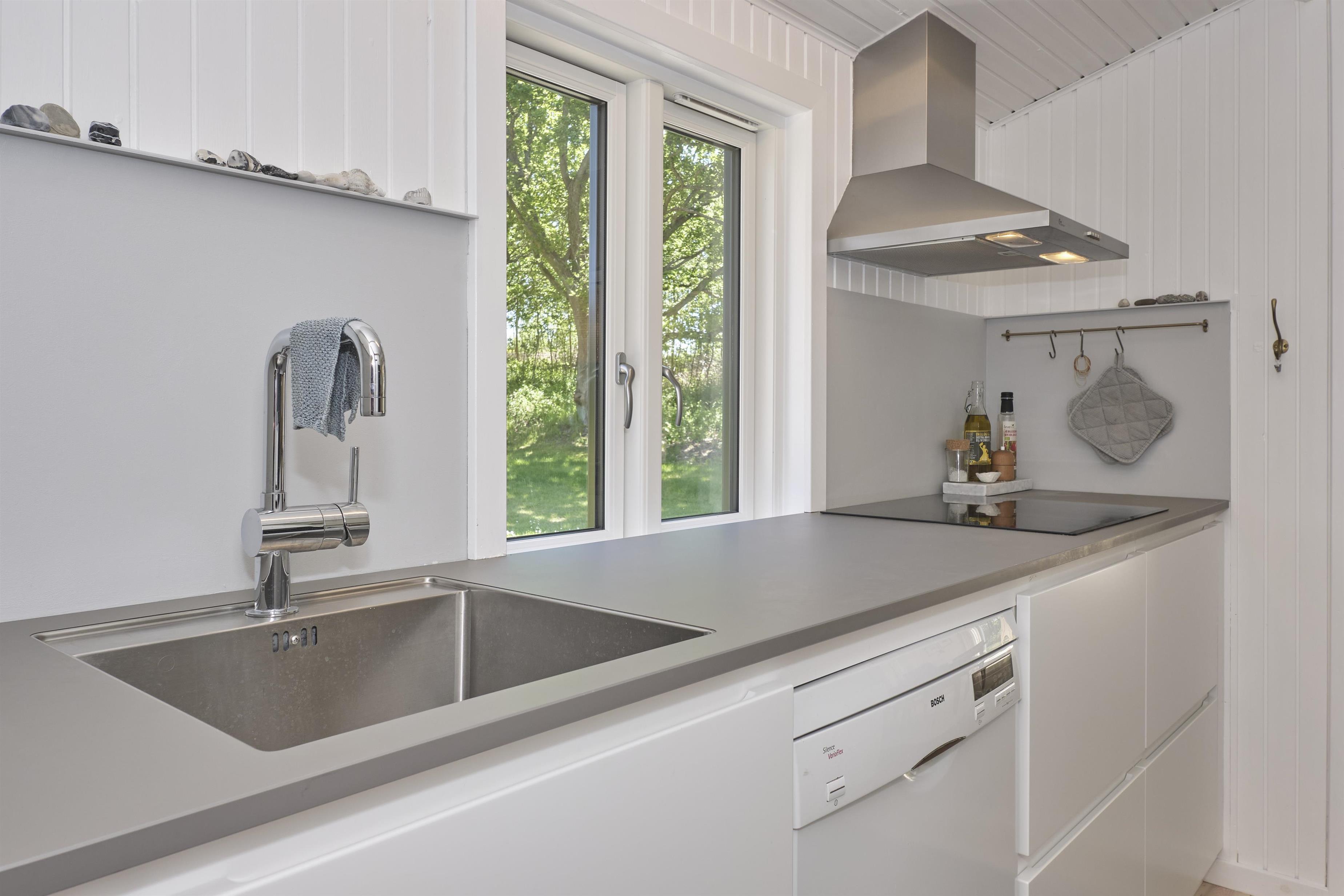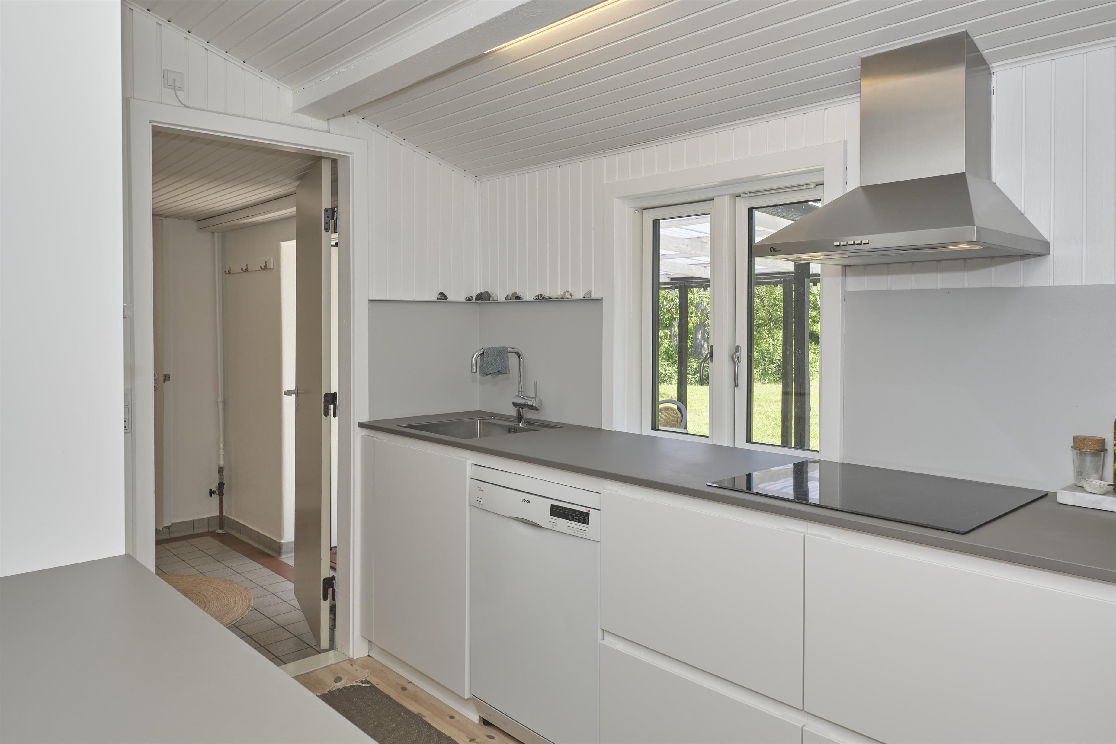Dieses traditionelle, ältere und renovierte Ferienhaus liegt auf einem großen, bewachsenen Naturgrundstück unweit von Wald und Strand in der hügelige Landschaft südlich von Ebeltoft. Es hat eine große, nach Südosten gewandte und teilweise überdachte Fliesenterrasse und eine nach Süden gewandte Holzterrasse – beide mit Zugang vom Wohnzimmer. Sie sind mit Gartenmöbeln, Liegestühlen, Sonnenschirm und Grill ausgestattet. Auf dem Grundstück befindet sich auch eine gemütliche Feuerstelle.