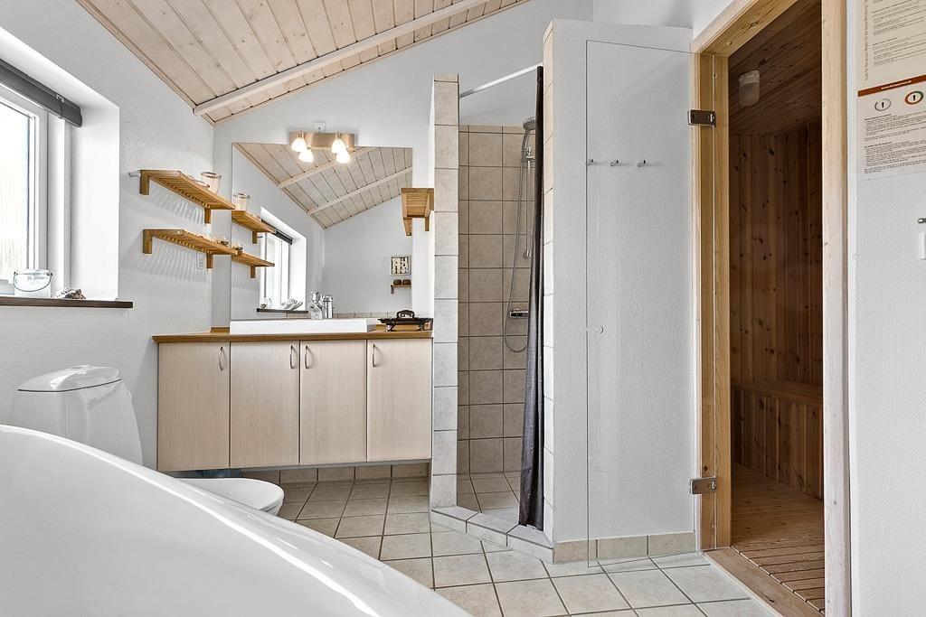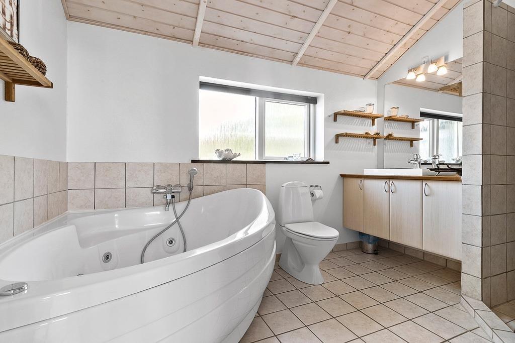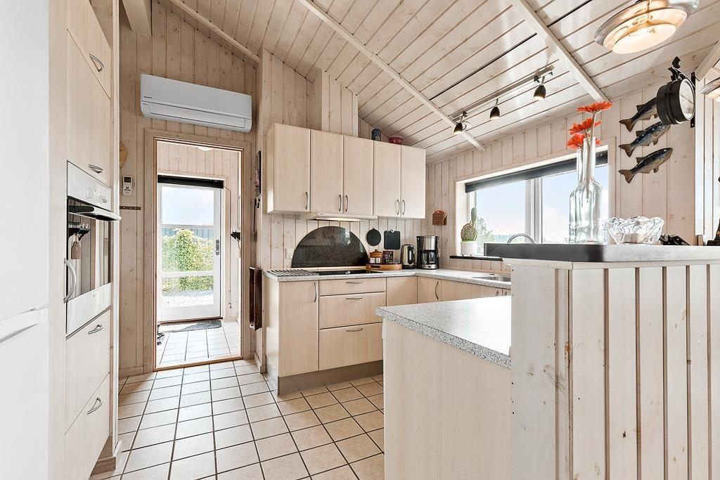 Dieses attraktive, gepflegte Ferienhaus verwöhnt dich mit einer gelungenen Mischung aus Gemütlichkeit und Komfort. Nach einem Tag voller Erlebnisse erholst du dich sicherlich gerne im hellen, einladenden Wohnraum, in dem ein Kaminofen und eine Wärmepumpe für behagliche Temperaturen sorgen. Vom Wohnraum aus gelangst du hinaus auf eine schöne Terrasse, auf der du bereits früh am Morgen das Frühstück im Kreise deiner Lieben in der Sonne genießen kannst. Die Küche ist offen mit dem Wohnraum verbunden. Sie ist voll ausgestattet und erleichtert dir unter anderem mit einem Geschirrspüler die Erledigung der alltäglichen Aufgaben. Mit vier Schlafräumen bietet dein Haus Platz für deine gesamte Familie. Zwei Schlafräume beinhalten jeweils ein Doppelbett. In den anderen beiden stehen Etagenbetten bereit. Besonderer Erwähnung bedürfen die beiden schönen Badezimmer, von denen das größere mit einem Whirlpool und einer Sauna zu glänzen weiß - perfekt für erholsame Momente mit einem Hauch von Wellnessflair.