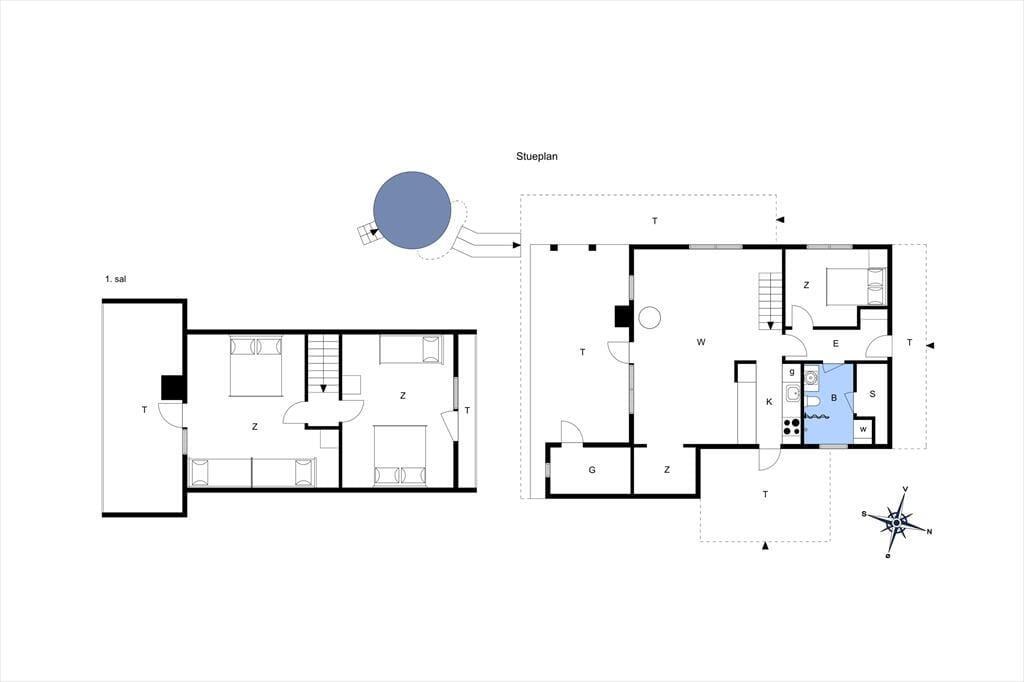 Dein Ferienhaus empfängt dich mit einem hellen, offenen Aufenthaltsraum, in dem ein gemütlicher Essplatz und ein komfortables, vor dem Kaminofen platziertes Sofa zu erholsamen Momenten im Kreise deiner Lieben einladen. Neben dem Essplatz befindet sich eine gemütliche Nische, in der du dich in aller Ruhe mit einem guten Buch niederlassen kannst. Unterhaltung und Abwechslung verspricht der mit Chromecast ausgerüstete Fernseher. In der offenen, gut ausgestatteten Küche erleichtert dir unter anderem ein Geschirrspüler die täglichen Aufgaben. Durch eine Tür gelangst du von der Küche hinaus auf eine Terrasse mit Liegestühlen - perfekt für eine Pause in der Sonne, während das Essen auf dem Herd gart. Die Schlafplätze verteilen sich auf drei Schlafräume. Einer der Schlafräume befindet sich im Erdgeschoss und verfügt über ein Doppelbett. Die anderen beiden Schlafräume sind im Obergeschoss untergebracht. Einer dieser Räume beinhaltet ein Doppelbett und ein Einzelbett und besticht darüber hinaus mit einem Zugang zum Balkon. Der zweite Raum des Obergeschosses ist mit einem Doppelbett und zwei Einzelbetten ausgestattet und begeistert mit einem Ausgang auf einen überdachten Balkon, von dem du über den Garten blickst. Das im Erdgeschoss platzierte Badezimmer verwöhnt mit einer Sauna. Eine Waschmaschine und eine Mikrowelle stehen im Nebengebäude zur Verfügung.