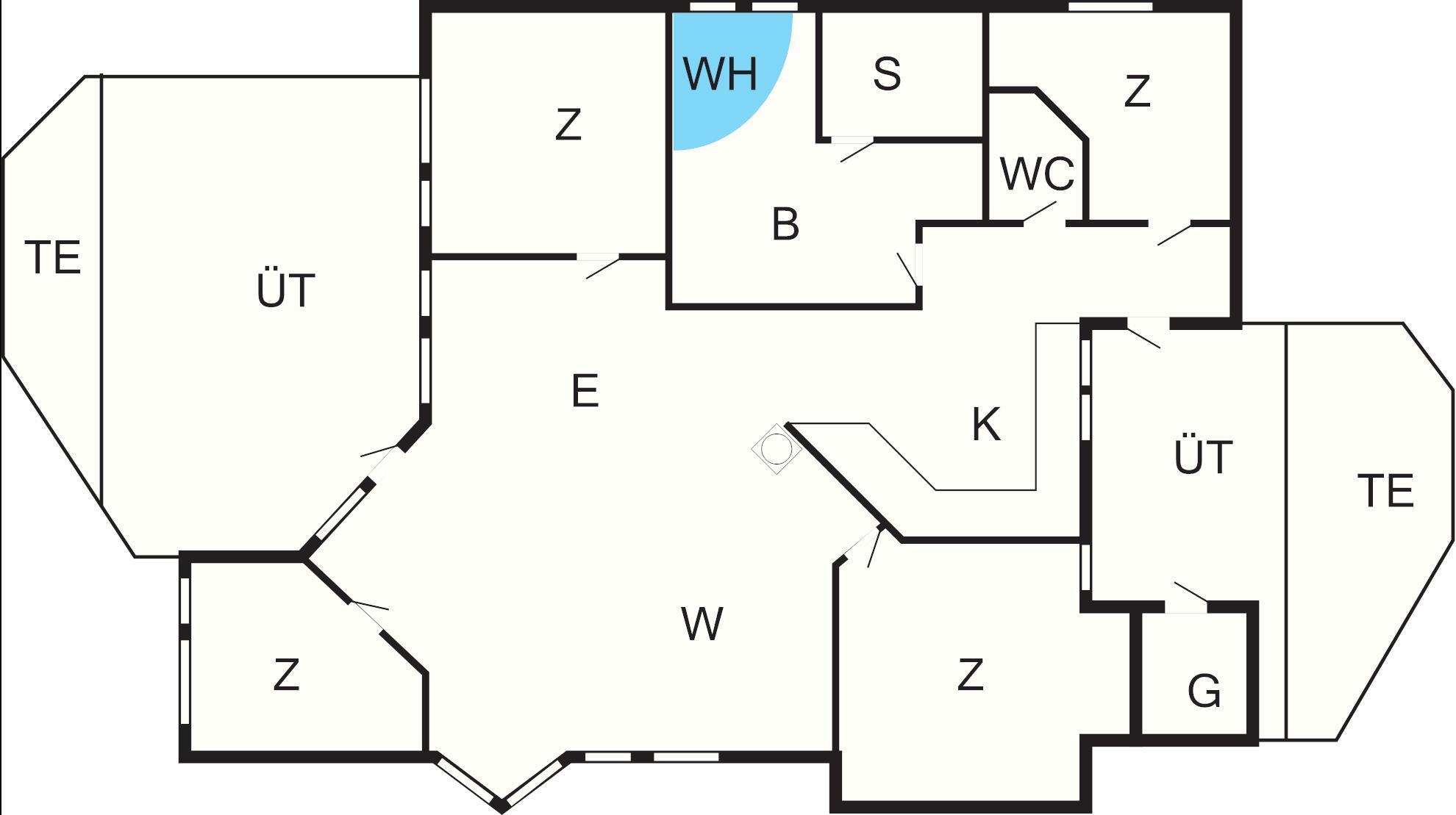 Bad: Waschm., WC, Waschb., Dusche, Fußbodenheiz.