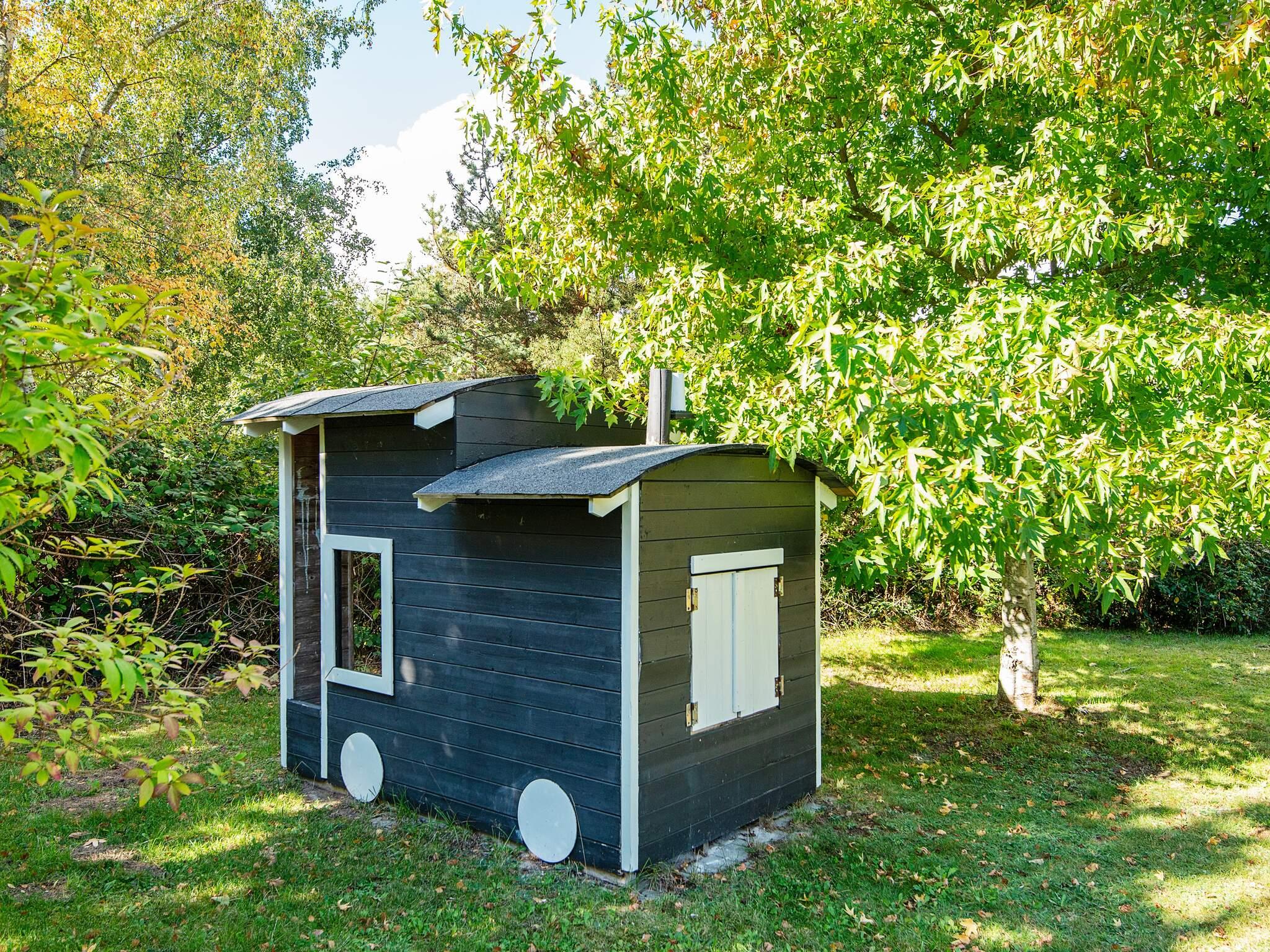 Draußen lädt eine großzügige Terrasse zum Essen, Lesen oder Genießen der frischen Luft ein, während die umliegende Rasenfläche viel Platz zum Spielen für Kinder bietet. Auf dem Grundstück befindet sich sogar ein kleines Spielhaus, in dem die kleinen Gäste Spaß haben, während die Erwachsenen im Whirlpool entspannen. Die Lage ist ruhig und malerisch, umgeben von der natürlichen Schönheit von Øer und seiner sanften Hügellandschaft.