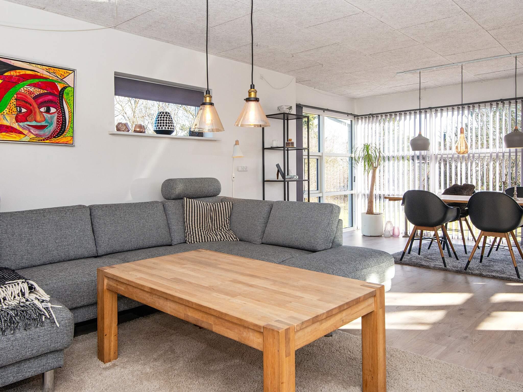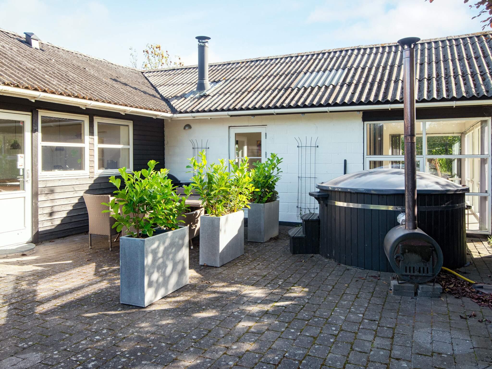 Ferienhaus bei Øer Strand, innen gut ausgestattet und dazu mit gemütlichem Badezuber im Außenbereich.