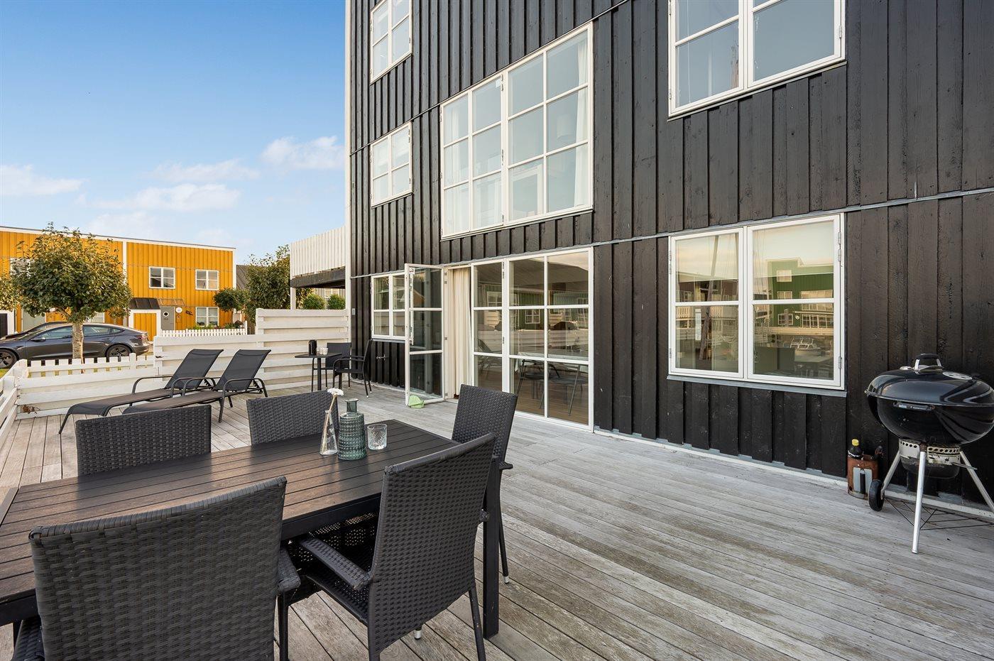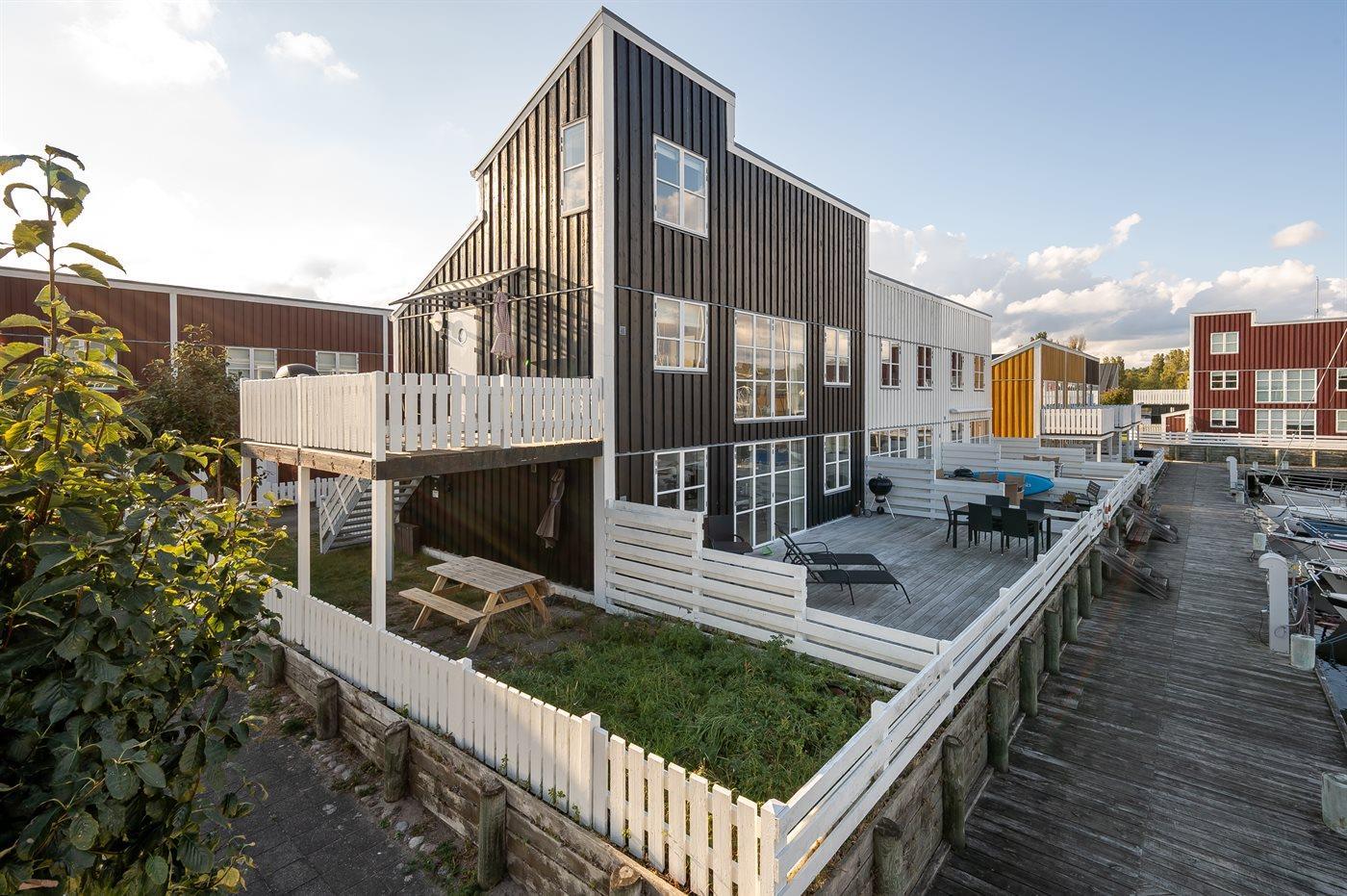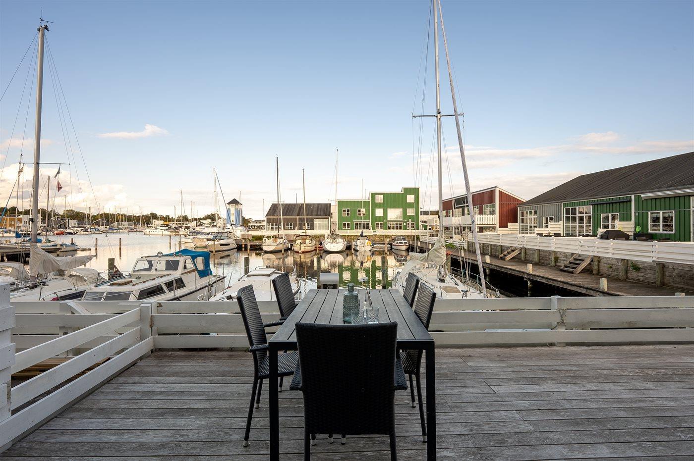 Charmante Ferienwohnung am Wasser mit eigenem Bootsliegeplatz und großer Terrasse in Øer Maritime Ferieby.