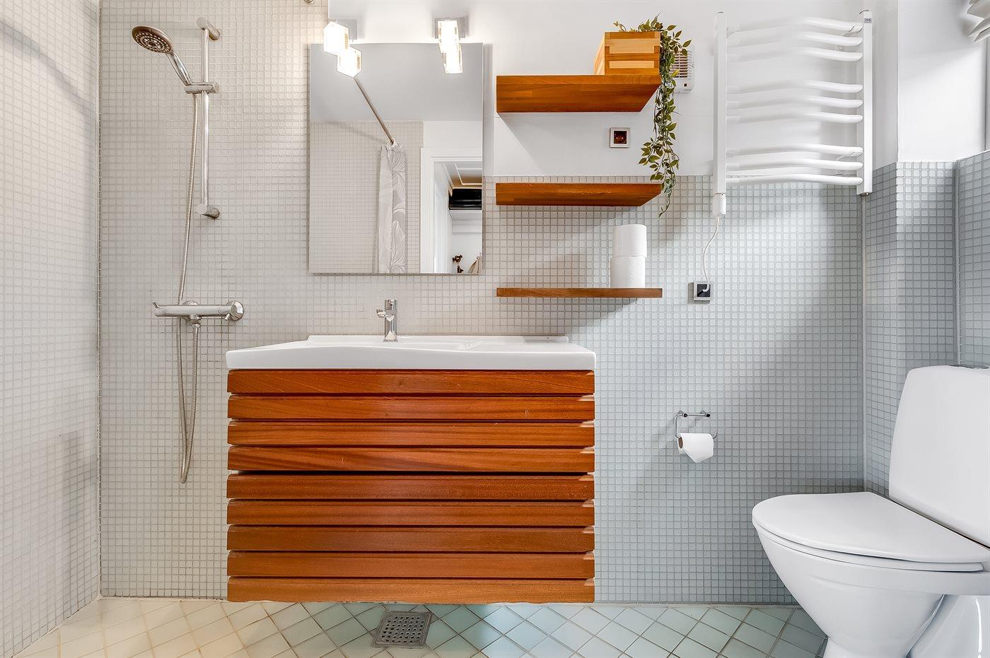Es gibt 1 Badezimmer mit Duschnische und 1 Toilette.