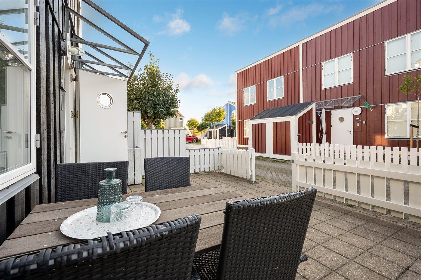 Die Ferienunterkunft liegt auf einem 110 m² großen Gartengrundstück. Die Entfernung zum Meer beträgt 10 m. Die nächste Einkaufsmöglichkeit liegt 300 m entfernt. Es steht ein offenes Terrassenareal zur Verfügung. Die Entfernung zu einem Spielplatz beträgt 300 m. Parkplatz auf dem Grundstück.