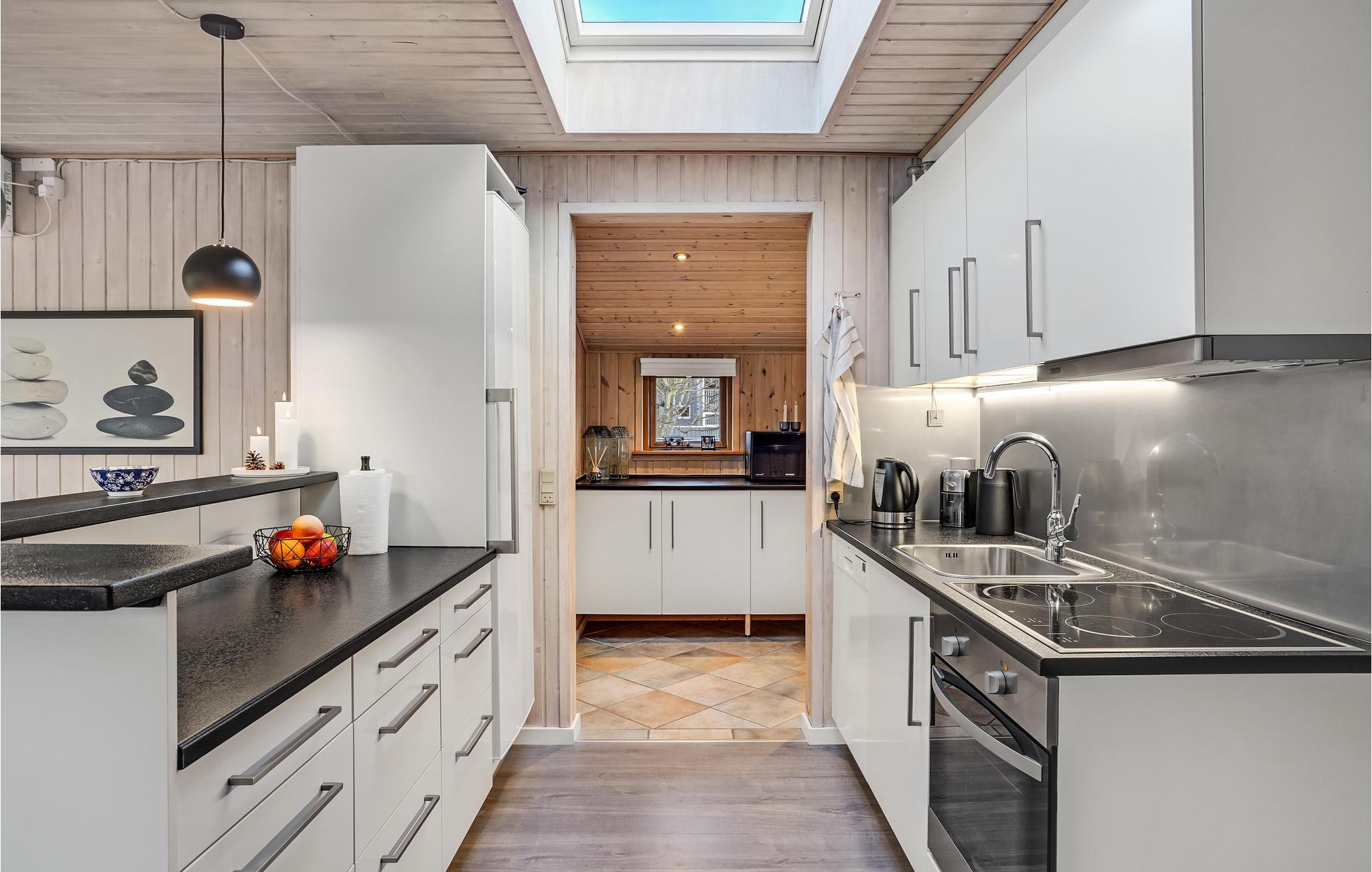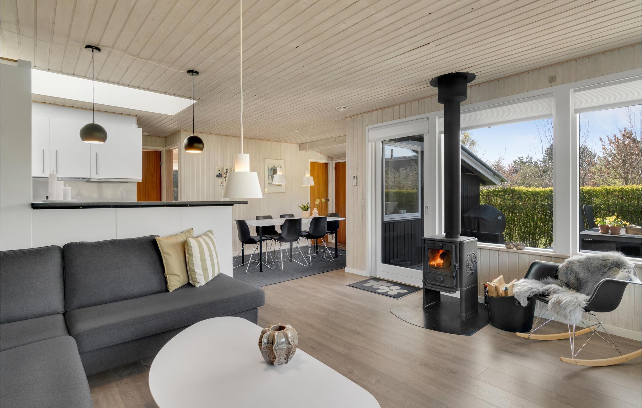 Entspannen Sie sich in diesem schönen Ferienhaus. Haben Sie Spaß mit Ihren Lieben und genießen Sie die gemeinsame Zeit im offenen Wohnzimmer, während die einen in der Küche leckere Gerichte kochen und die anderen am Esstisch Karten spielen oder auf dem Sofa entspannen. Wenn Sie zusätzliche Wärme und Gemütlichkeit brauchen, können Sie den Holzofen anheizen und die Wärme und das Knistern des Feuers genießen. Auch die Sauna trägt zur Entspannung bei.