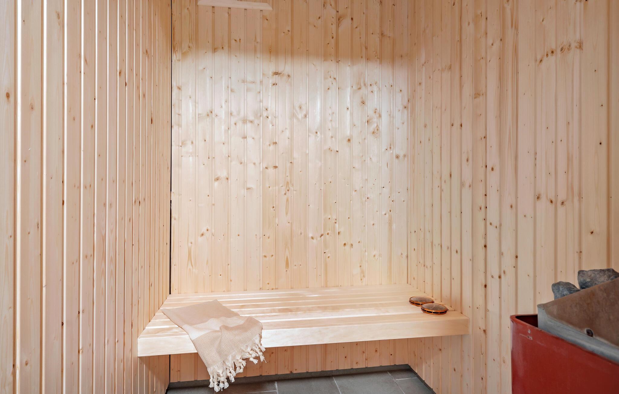 Gemütliches Ferienhaus mit Sauna und Terrasse nahe Strand in Öer Strand, Dänemark, ideal für Erholung und Familienurlaub.
