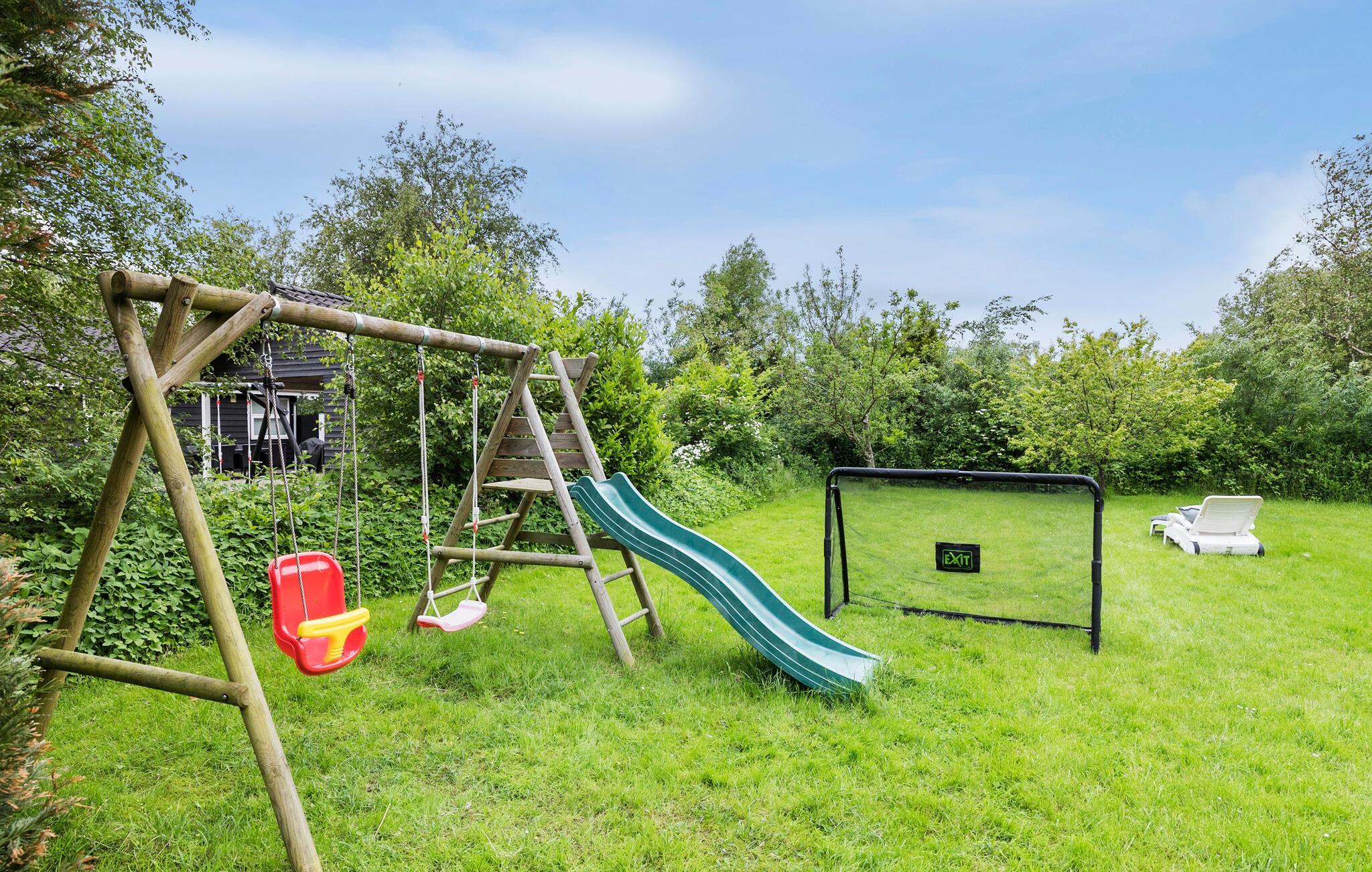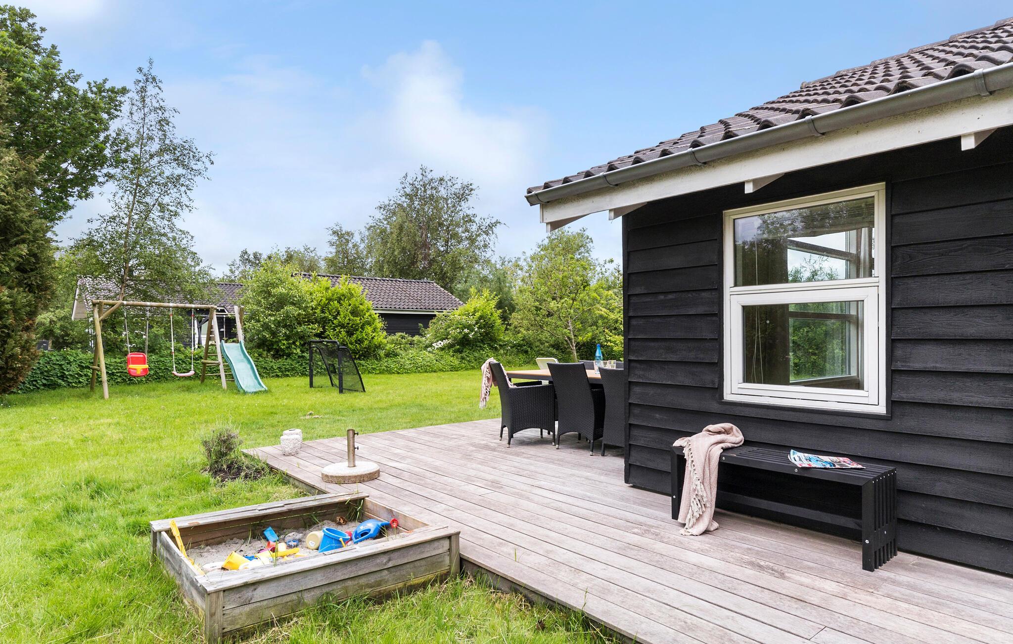Zwei Seiten des Hauses werden von einer großen Holzterrasse umgeben und laden Sie im Sommer ein, zu Ihrem zweiten Wohnzimmer zu werden. Sehen Sie Ihren Kindern beim Spielen zu, denn die Schaukeln, die Rutsche sowie der Sandkasten werden Freude bringen. Grillen Sie am Abend oder versammeln sich zum Marshmallowsrösten um die Feuerschale.