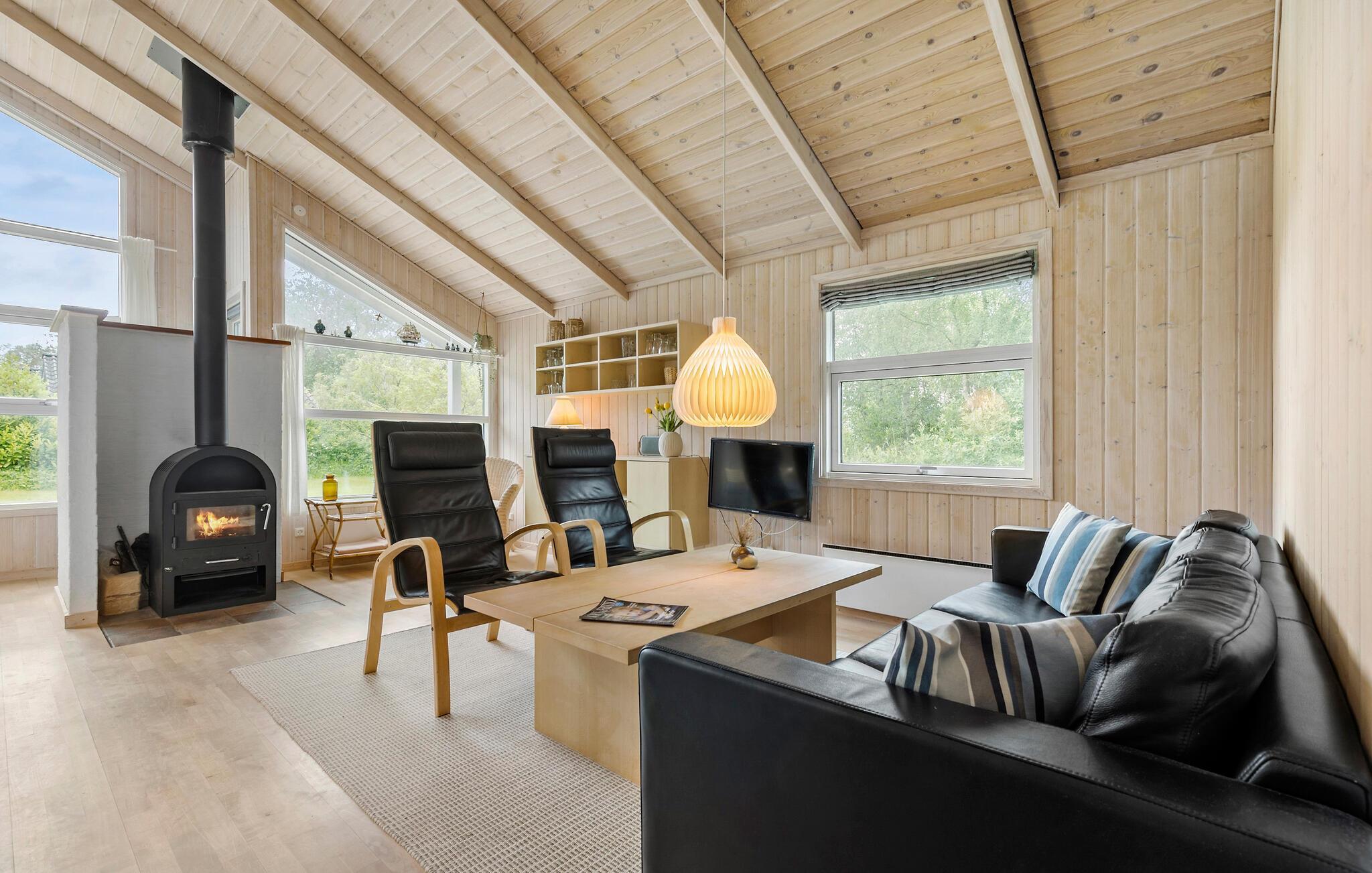 Freuen Sie sich auf Familienspaß und Erholung in diesem ansprechenden Ferienhaus. Das hellgebeizte Holz, der Kaminofen und die großen Fenster schaffen in Verbindung mit den angenehmen Möbeln. Gehen Sie Ihrem Ferienalltag in Ruhe nach, kochen für Ihre Lieben oder erleben Wellnesszeit im Badezimmer, wo eine Whirlpool-Badewanne sowie eine Sauna auf Sie warten.